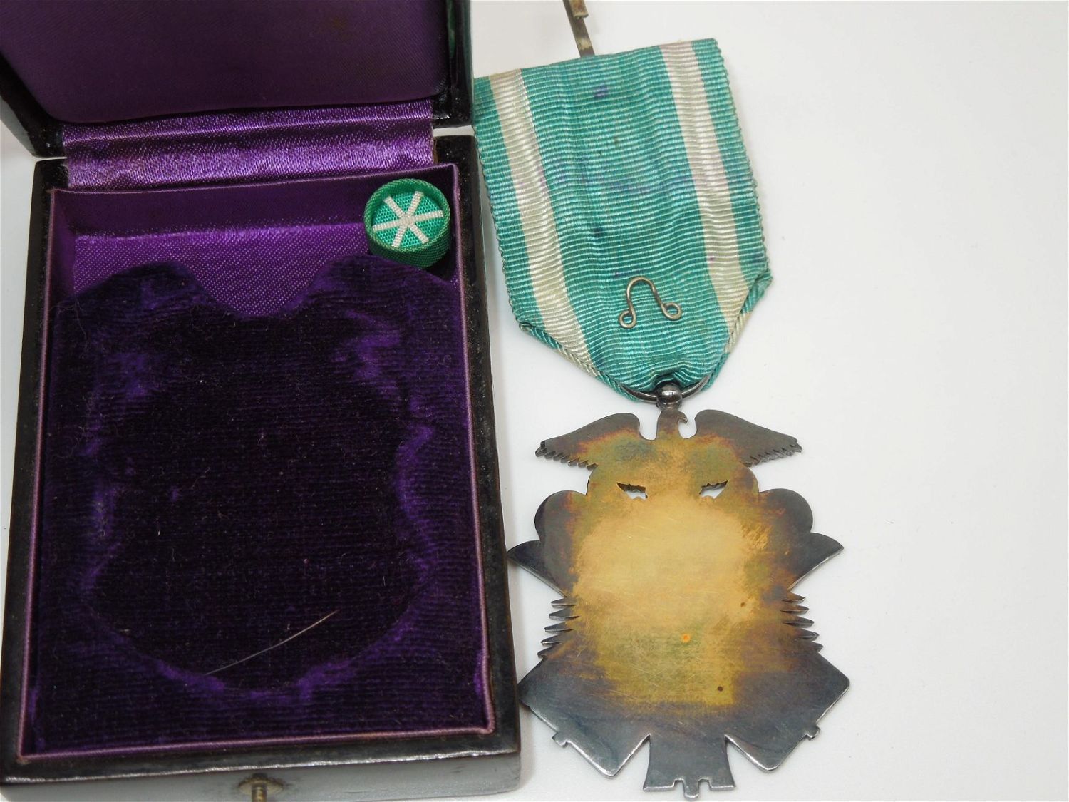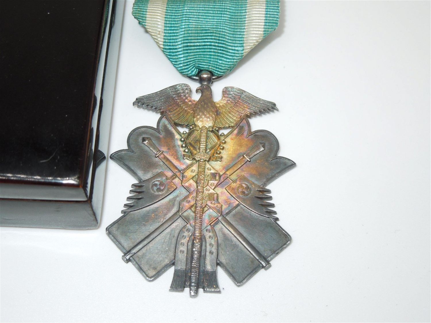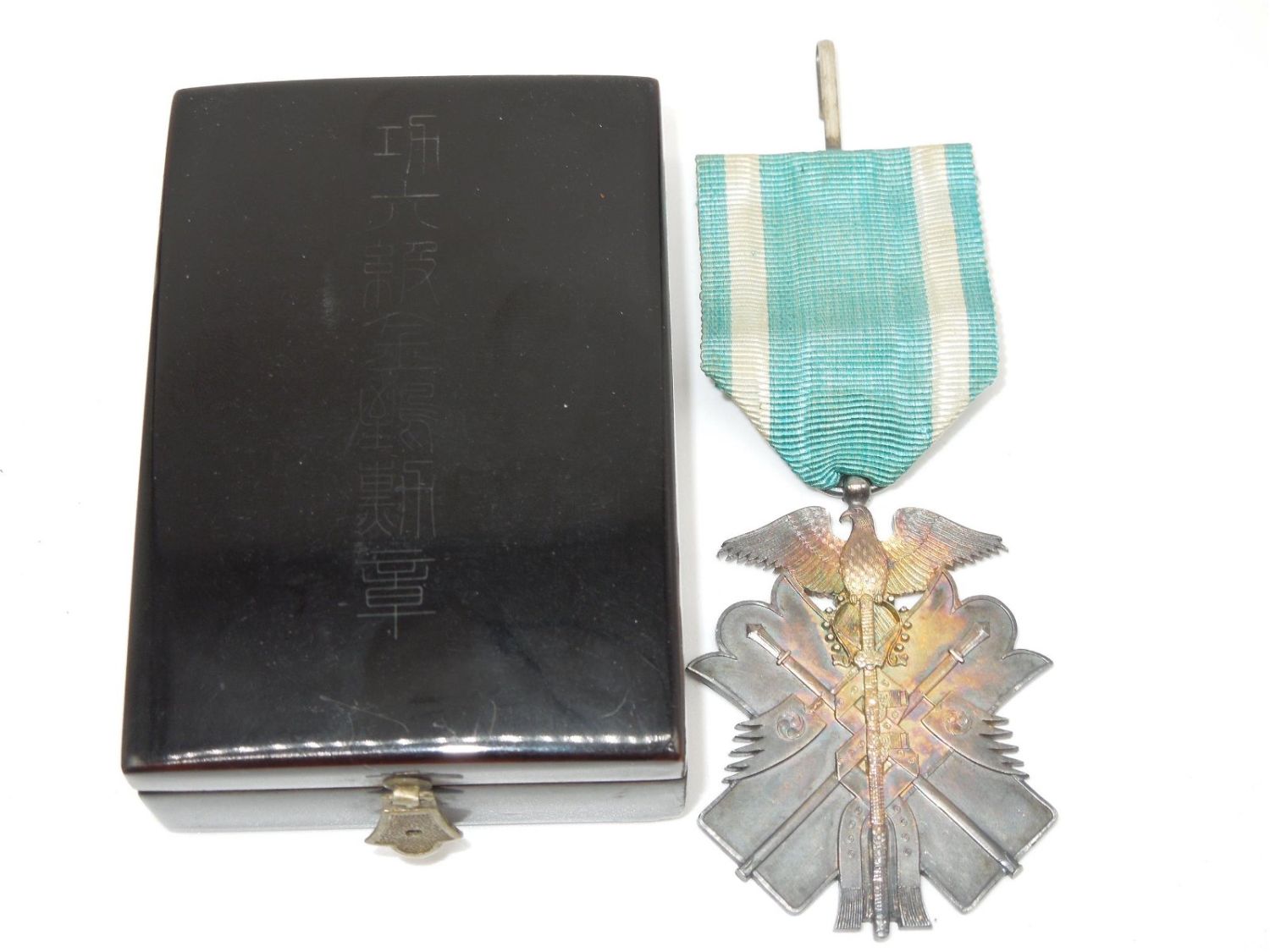 Japanese Order of the Golden Kite 7th Class Medal with Rosette & Case. The Order of the Golden Kite was an exclusively military award, conferred for bravery, leadership or command in battle. Nice condition for its age.