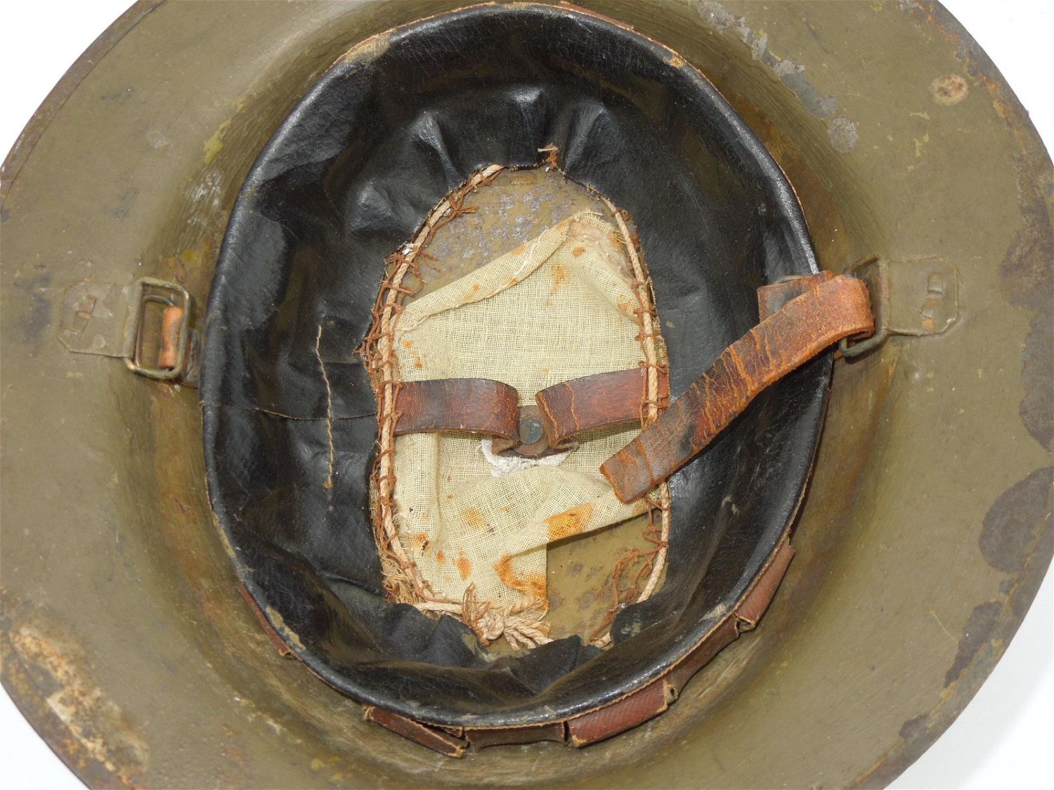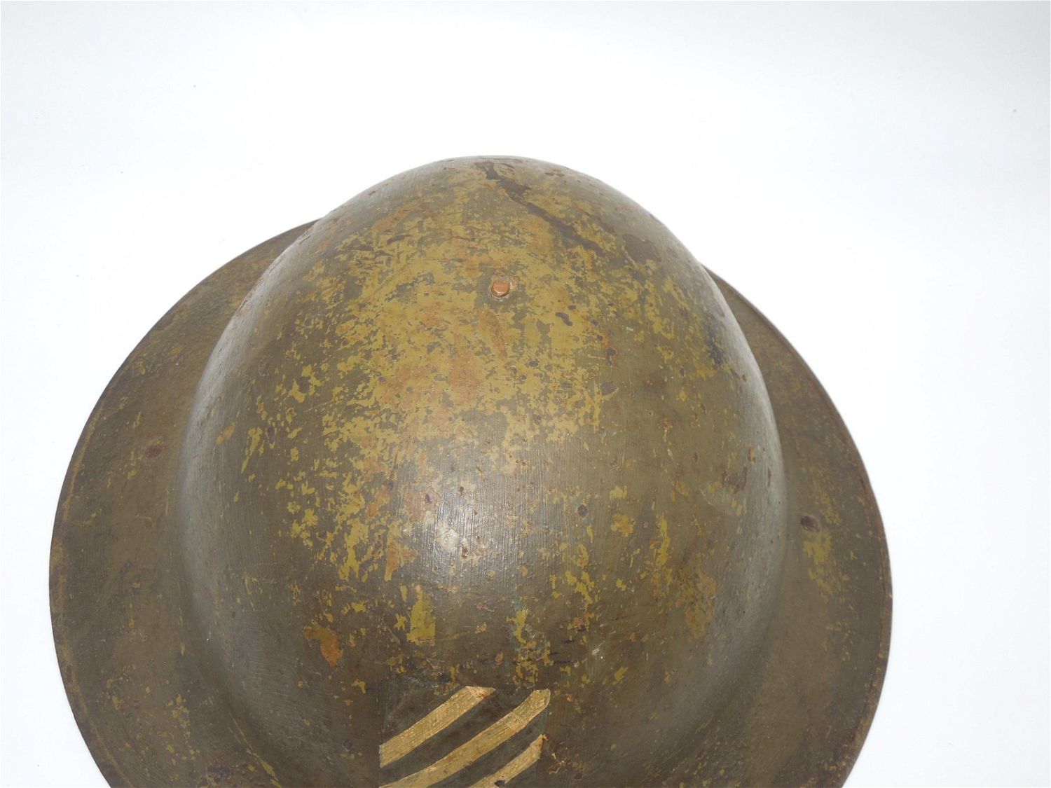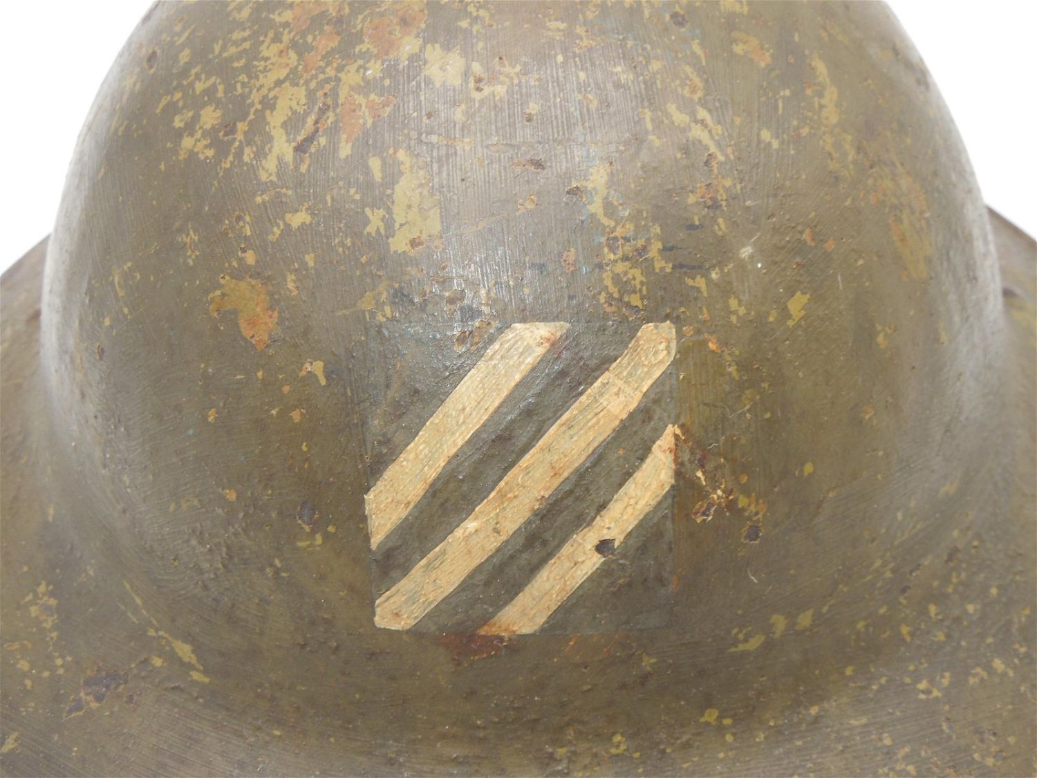 WWI US Army 3rd Infantry Division Painted British MKI Doughboy Helmet. Comes with liner and partial chinstrap. Repainted US Olive Drab over British Khaki. Good condition for its age.