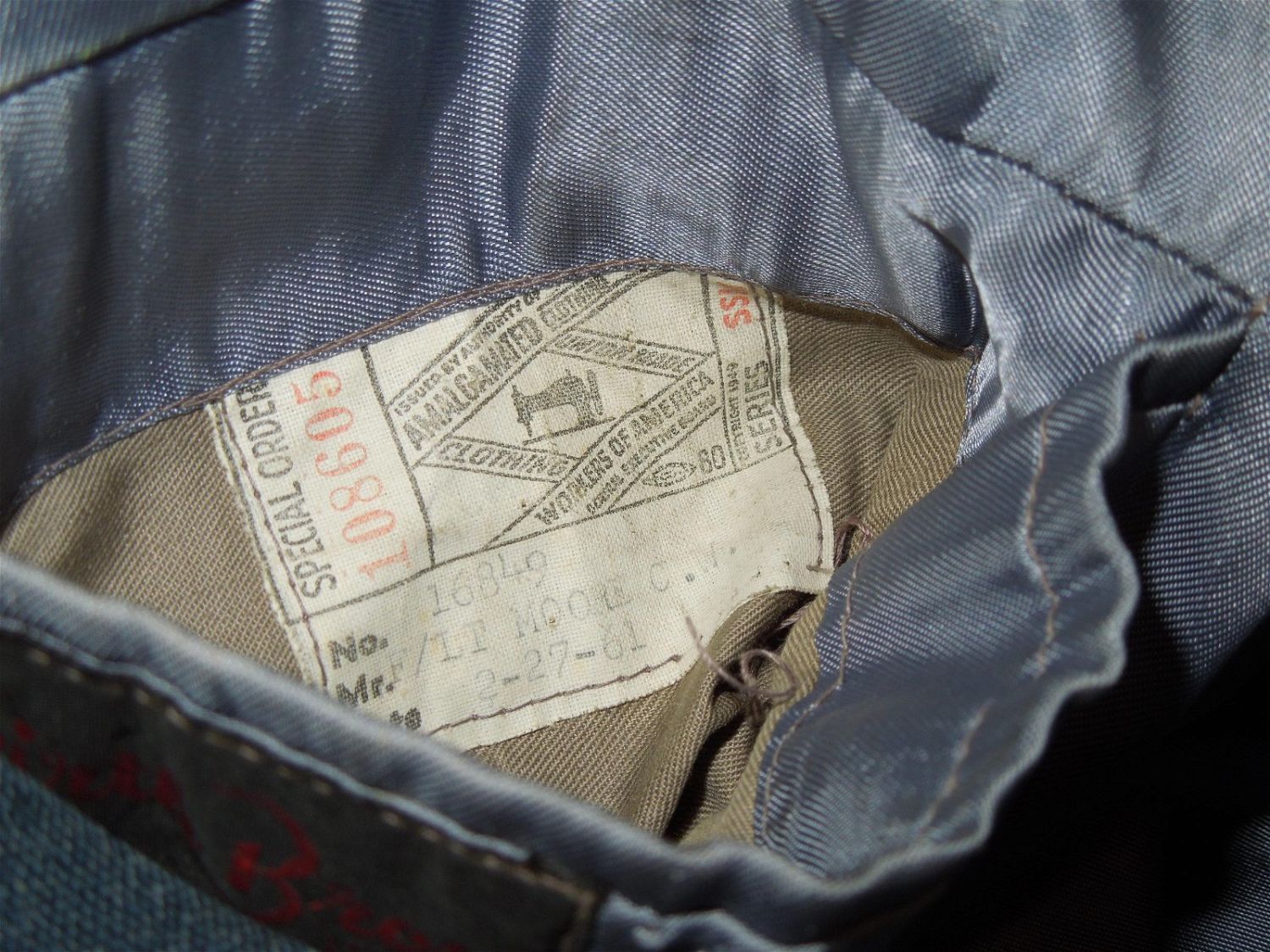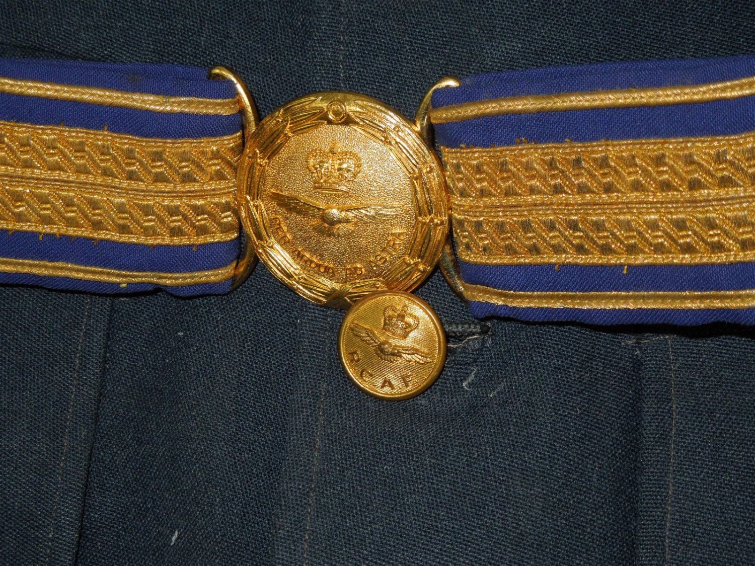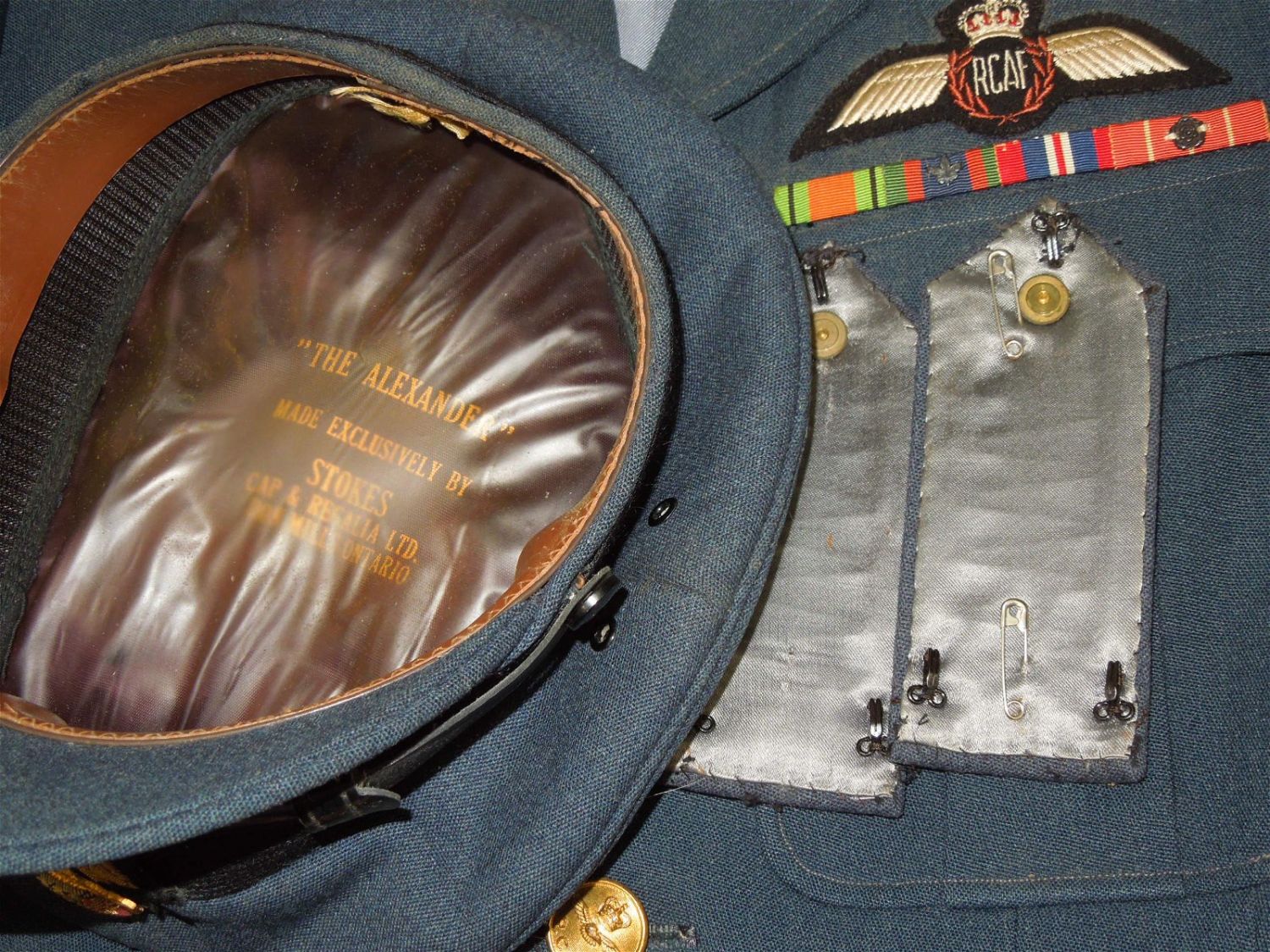 RCAF Royal Canadian Air Force Officer Jacket, Visor Cap, shoulder boards & belt. Combat Crew- NORAD Region. The maker of the 1961 dated jacket is Firth Bros. Named to Lt. C.W. Moore. No size seen. The maker of the visor is “The Alexander” Stokes Cap & Regalia LTD (no size). Good patina to the insignia. Nice used condition. The bullion shoulder boards are not marked. Overall condition is very good. On one shoulder is some wear from age.