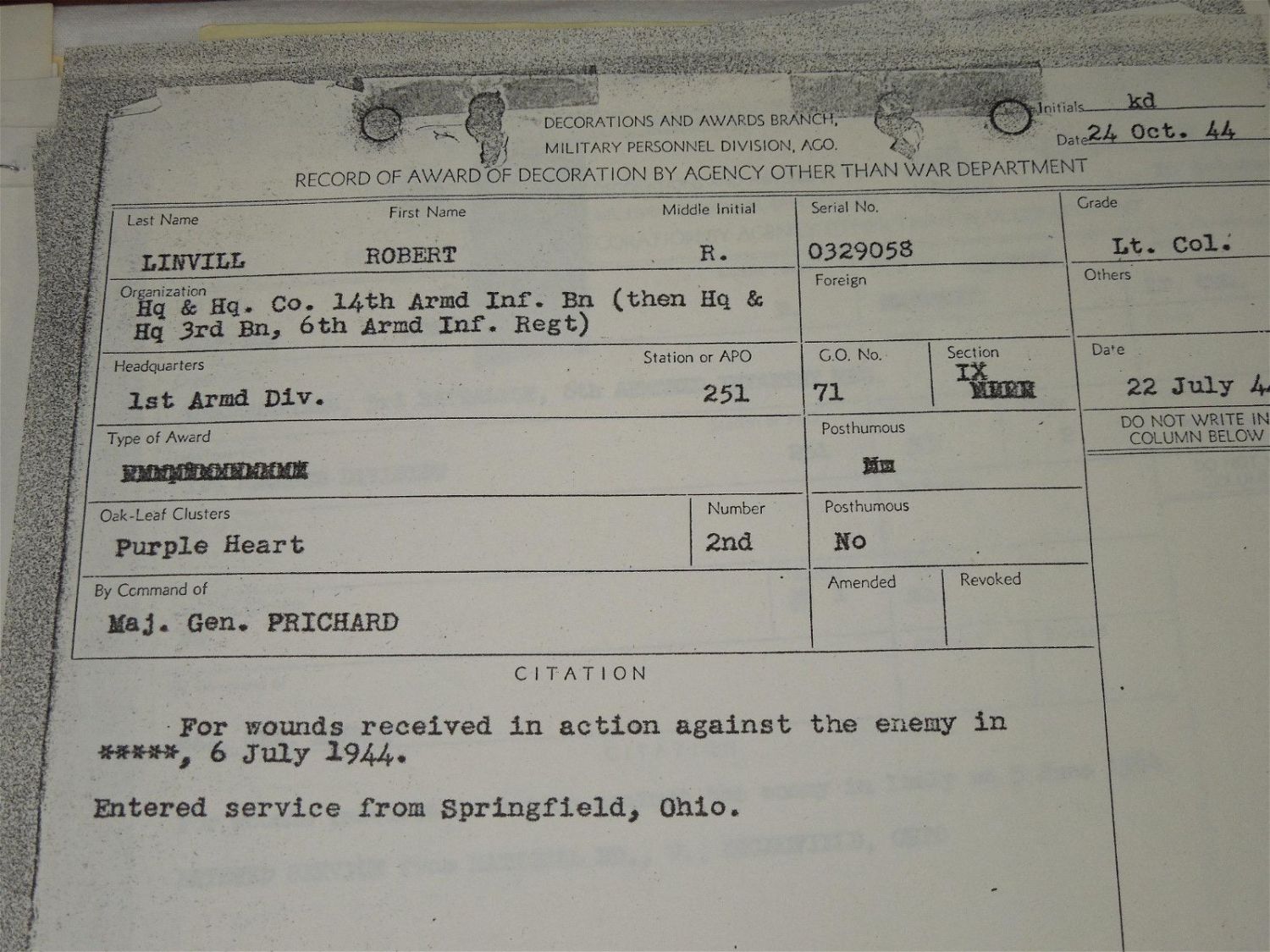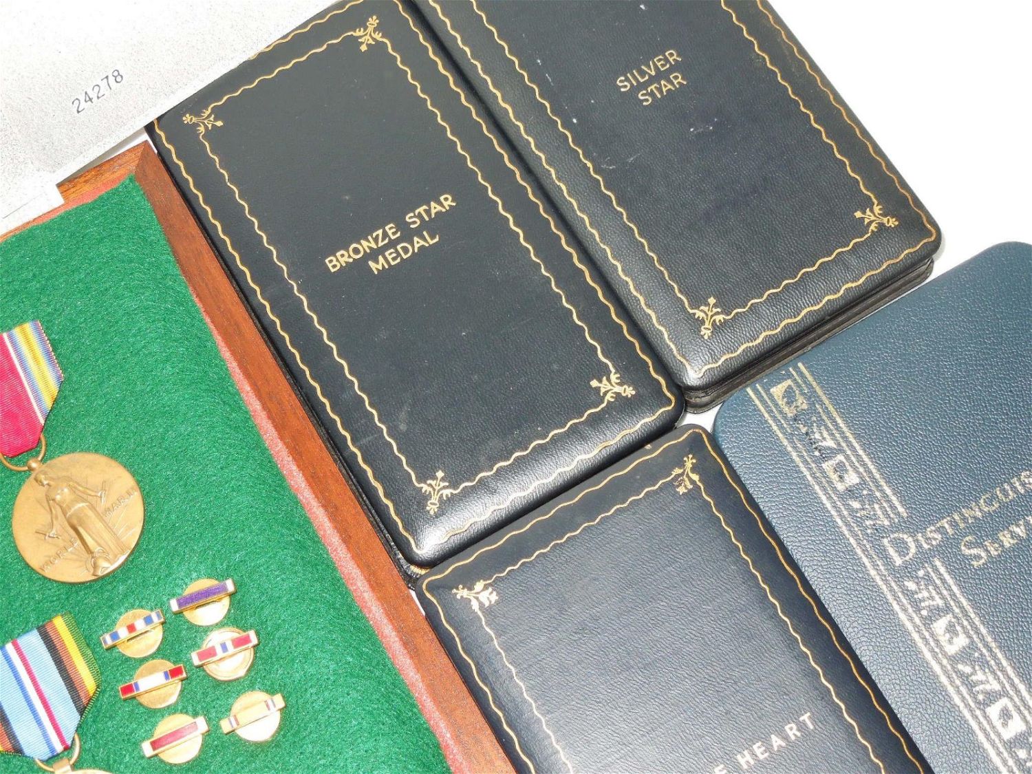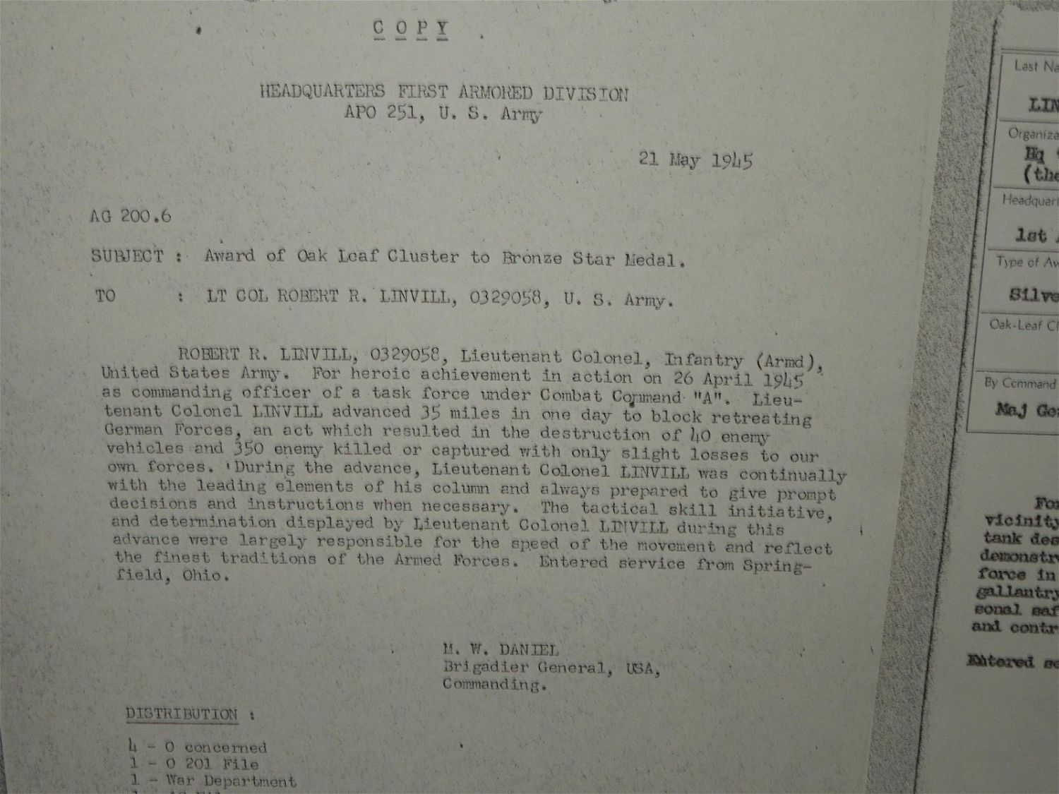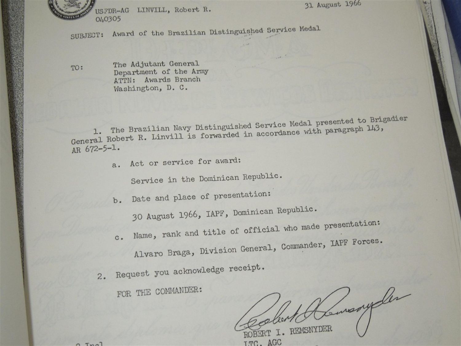 WWII – 70s Medal group of US Army Major General Robert R. Linvill. In WWII he was a Battalion Commander in the 6th Armored Infantry Regiment, 1st Armored Division to include Operation Torch in North Africa, through to Italy. Post war, he commanded US Forces Dominican Republic, was Deputy Commanding General of the XVIII Airborne Corps, CG of the 24th Infantry Division, and then Commanding General of the 1st Infantry Division from 1970-1971. Group includes his 1960’s -70’s issued WWII Silver Star with his rank on it, US and foreign medals, medal boxes as shown, and a comprehensive packet of research to include many copies of his award citations. Good condition overall. The photo portrait of him is digital only; No hard copy included.