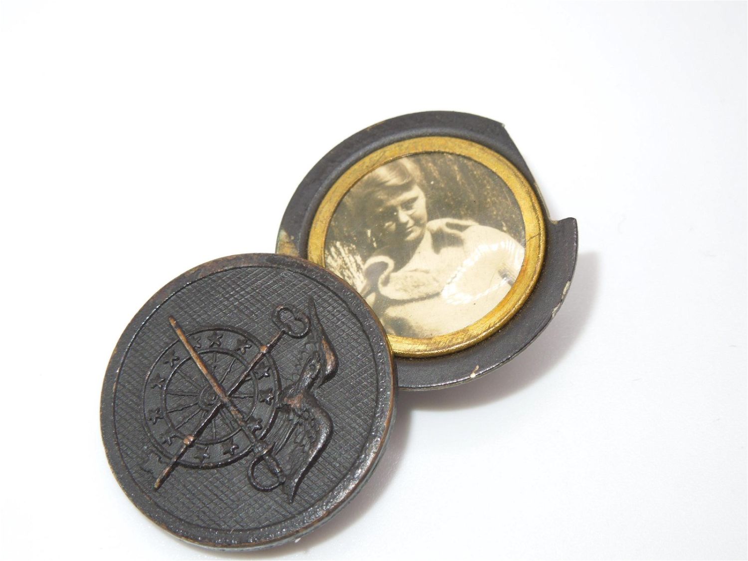 WWI US Army Quartermaster Secret Photo Locket Collar Disc & Picture. The picture is not a stock photo, but an original to the time period. Good condition for its age.