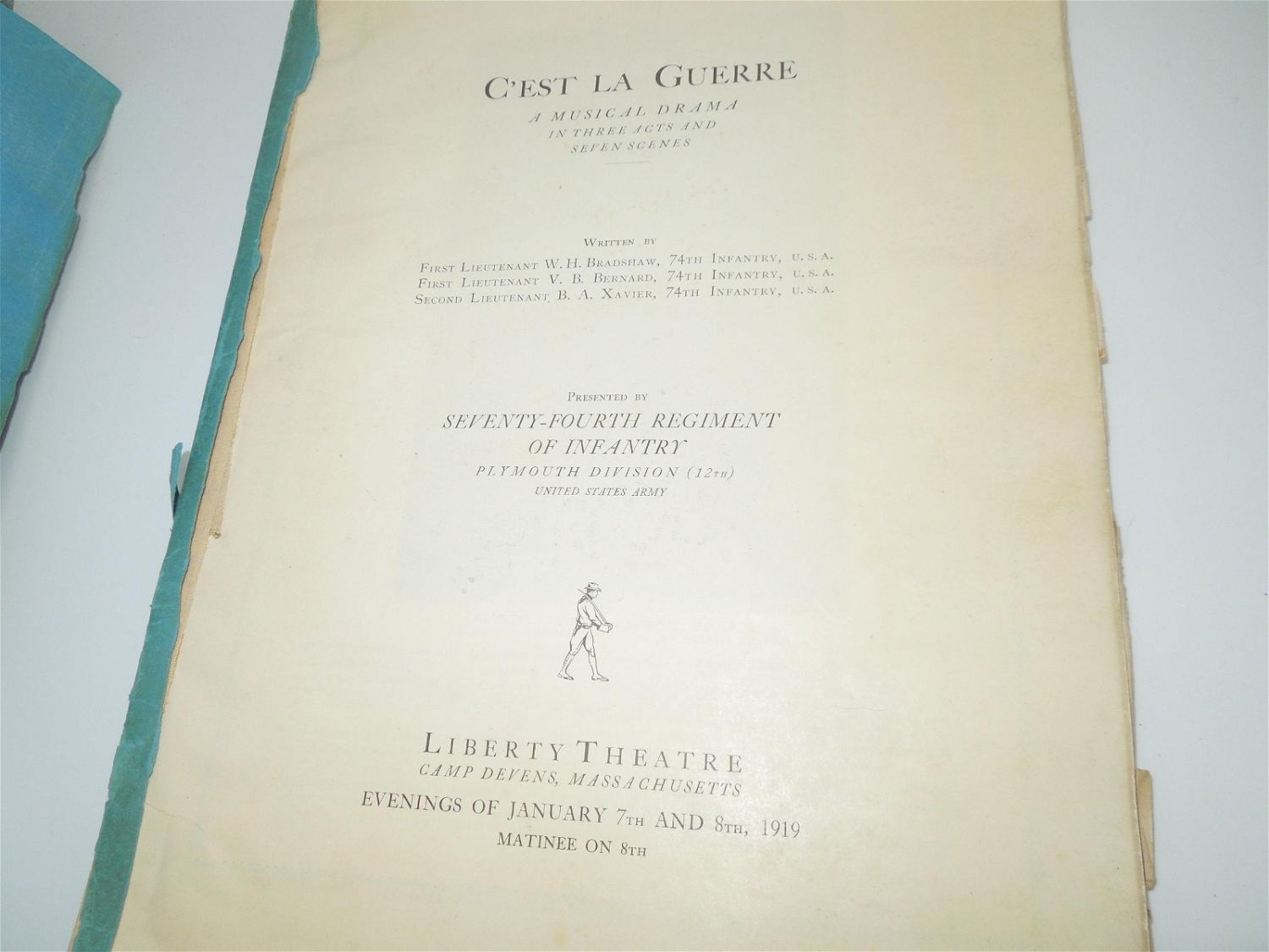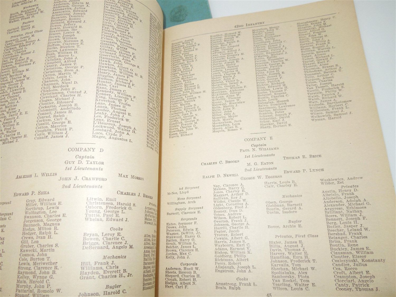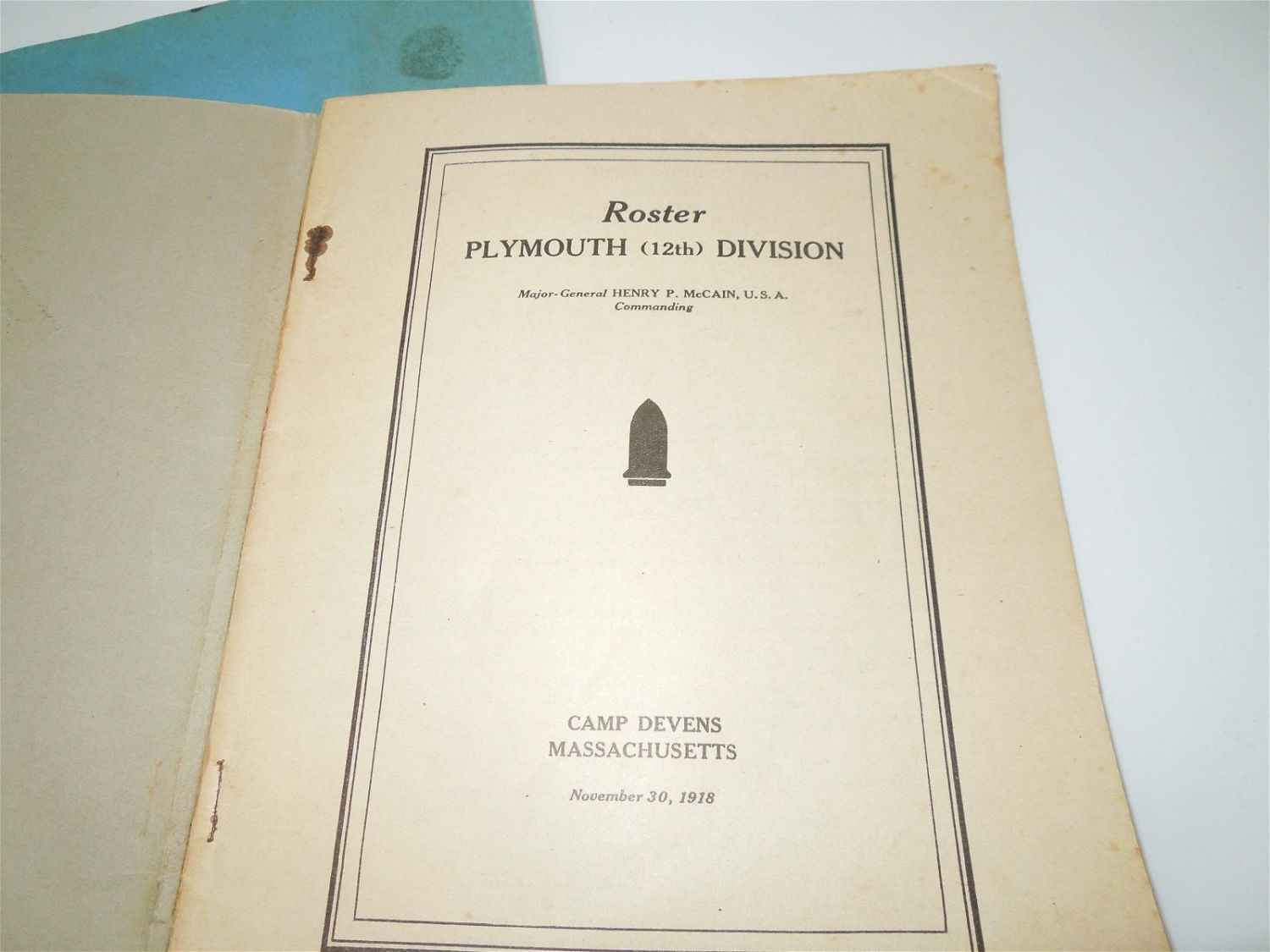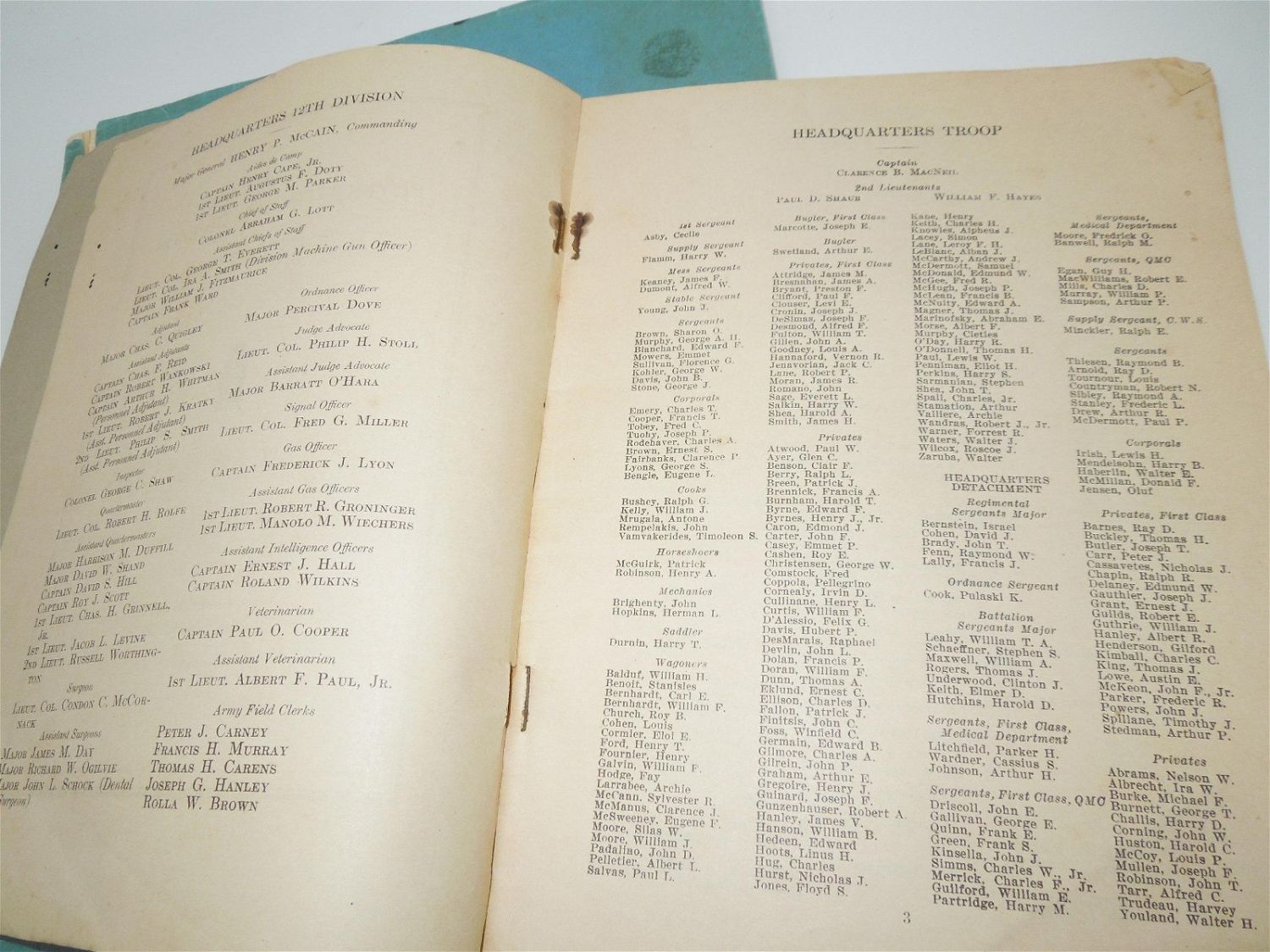 Lot of two 12th Infantry Division WWI era books with photos, advertisements, and unit rosters. Both are in worn condition, with the larger one having the cover detached and tears on the edges.