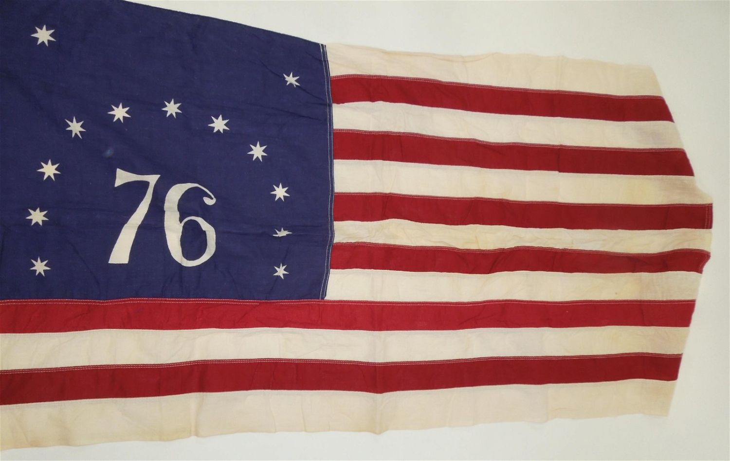 Vintage flag measuring approximately 54 inches by 28 inches. Probably 50 years or less old.