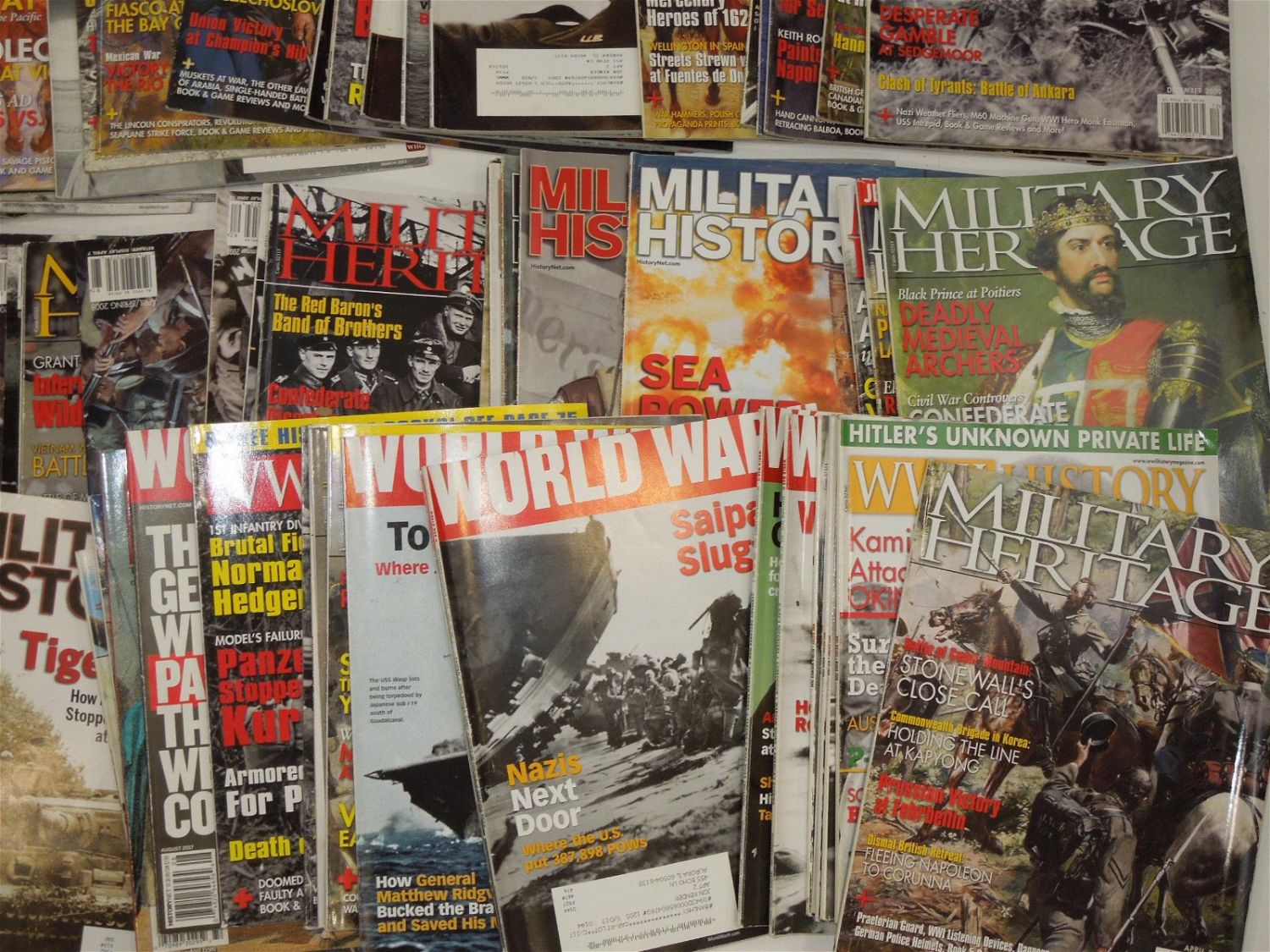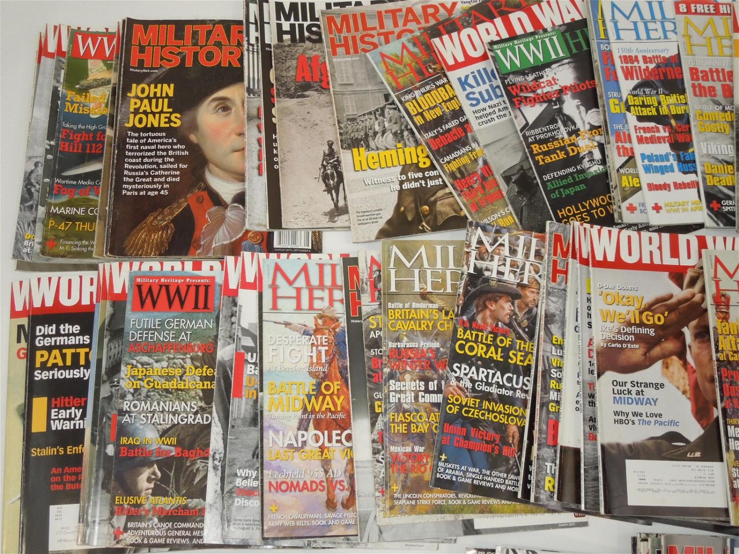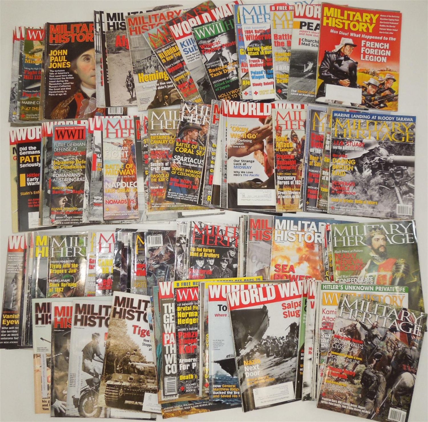 Magazines Reference Book Lot of 100 plus magazines. The 4 different magazines include the following: 2008, 2009, 2010, 2011, 2012, 2013, 2017 World War II (31 issues), 2008, 2009, 2010, 2011, 2012, 2013 World War II History (27 issues), 2008, 2009, 2010, 2011, 2012, 2013, 2014, Military Heritage (39 issues), and 2007, 2008, 2009, 2011, 2017 Military History (5 issues). Good used, readable condition.