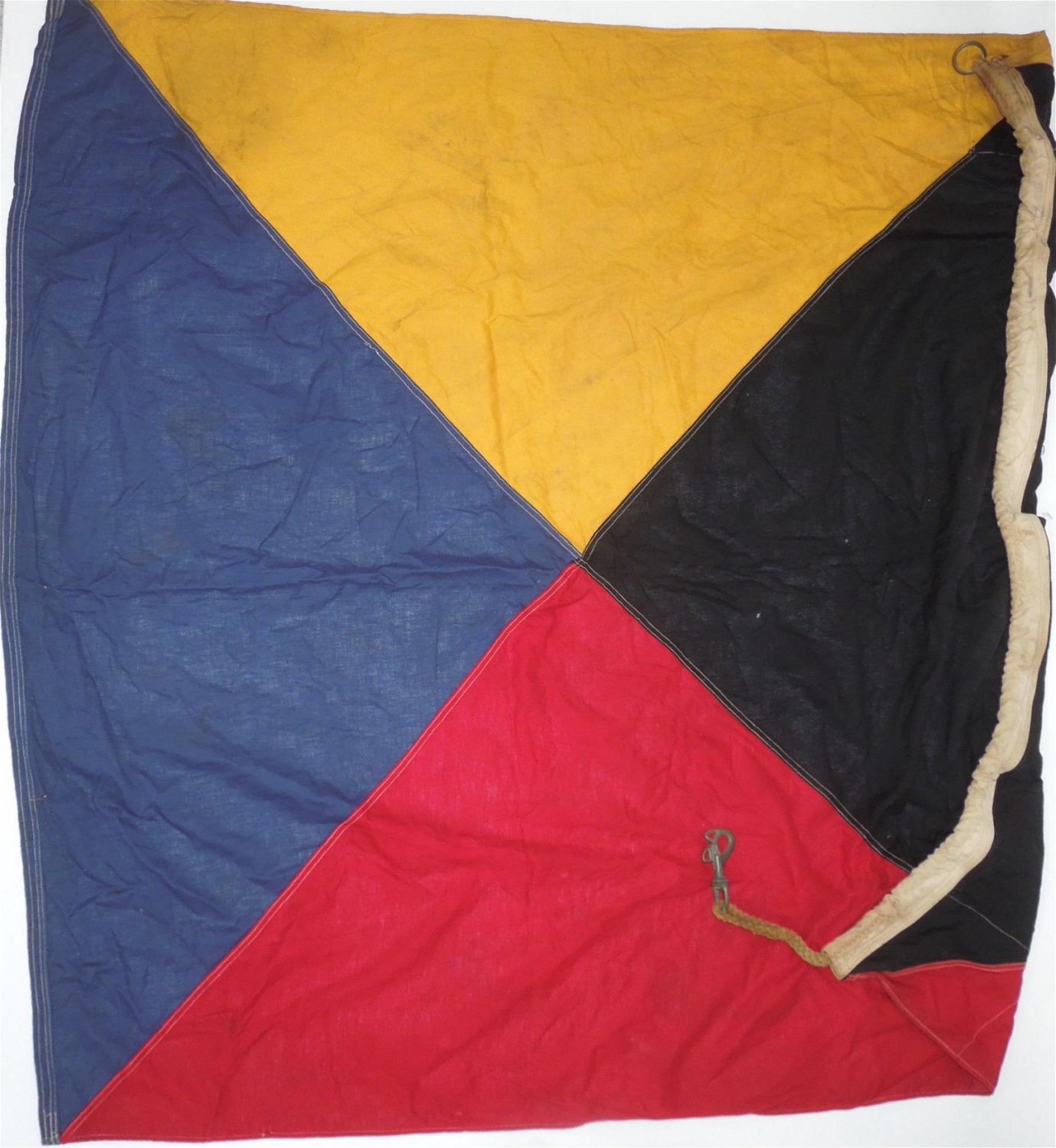 Original Letter Z flag measuring approximately 50.5 inches x 48.5 inches. Fair condition with soiling.
