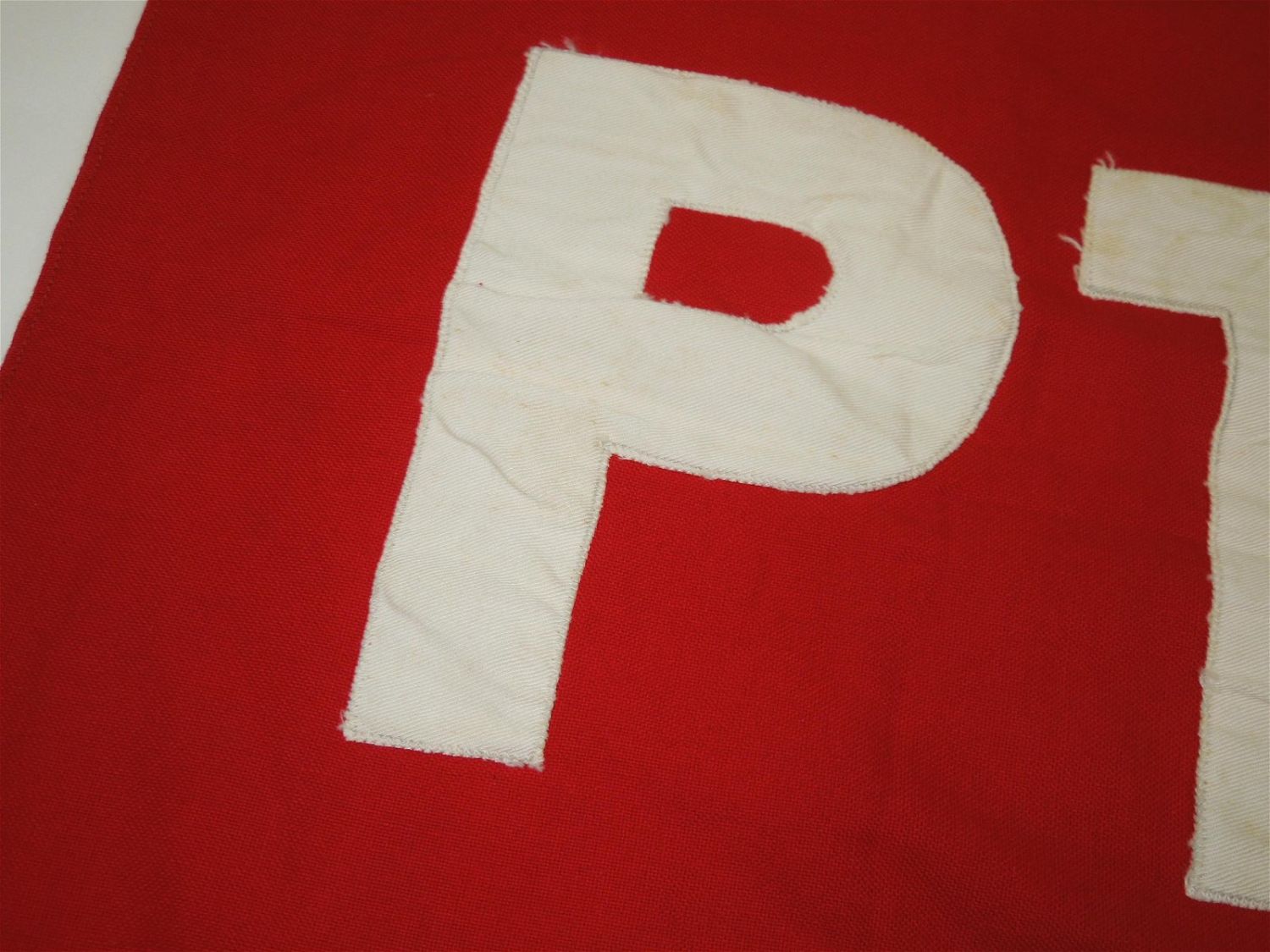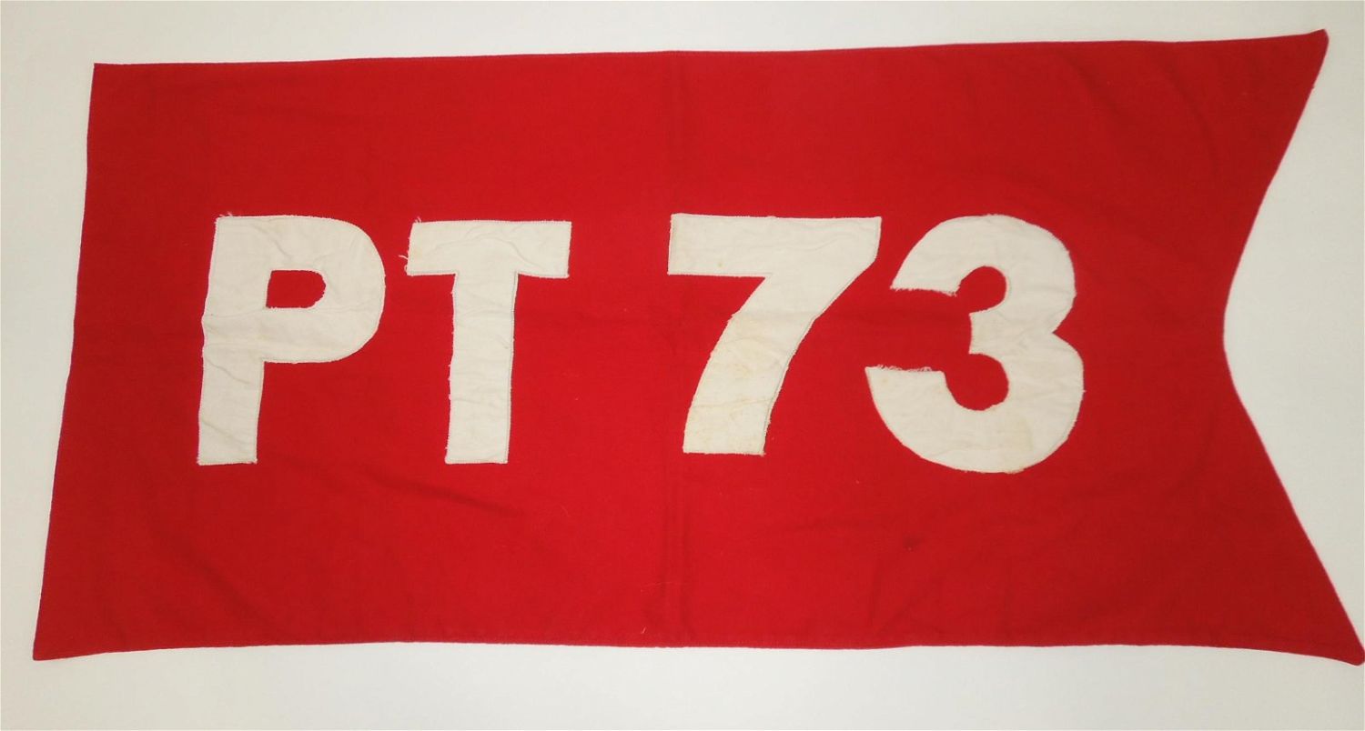Military type red one sided flag for PT-73, the US Navy Patrol Boat that inspired the popular TV show McHales Navy. Good vintage piece.
