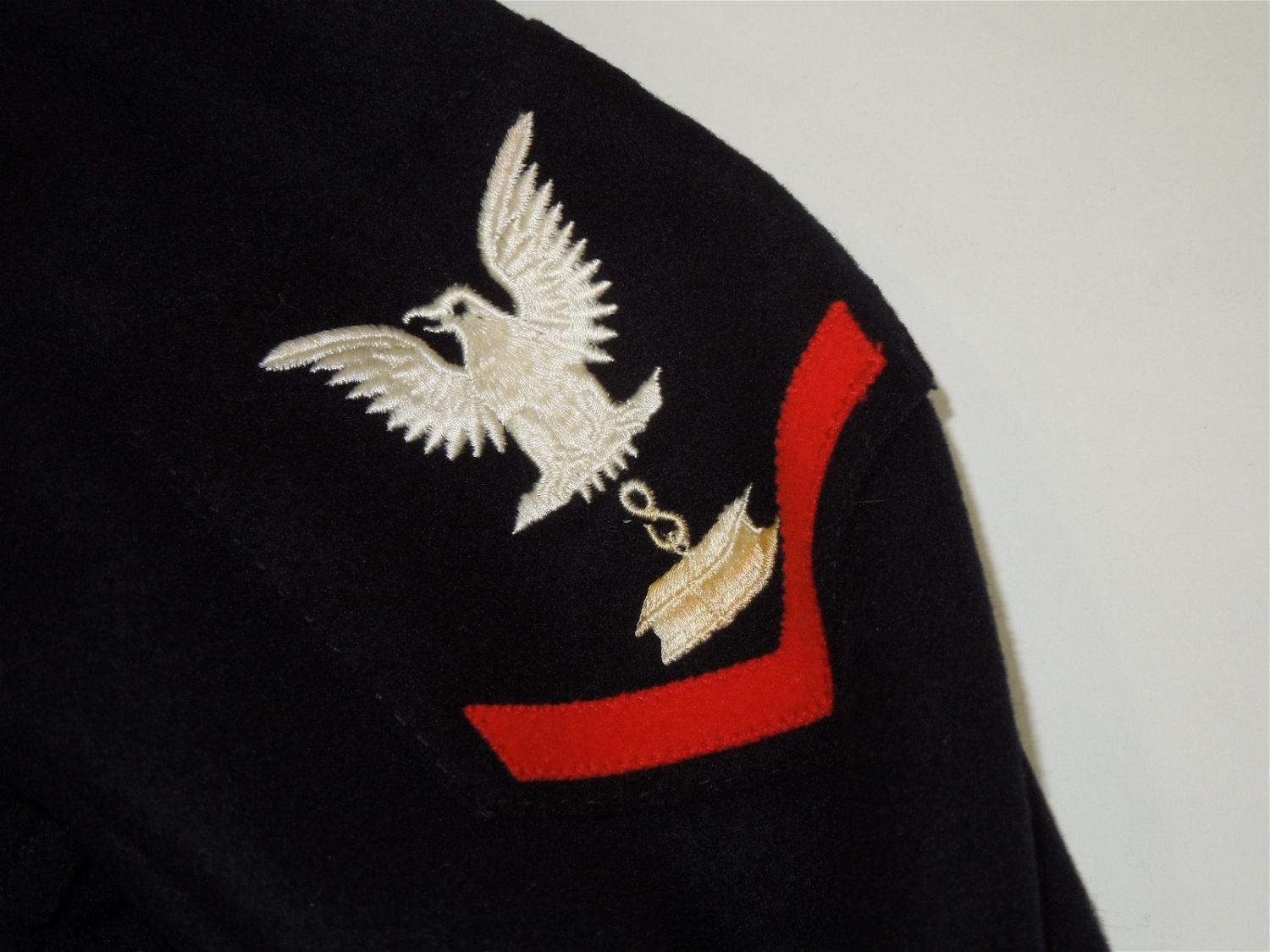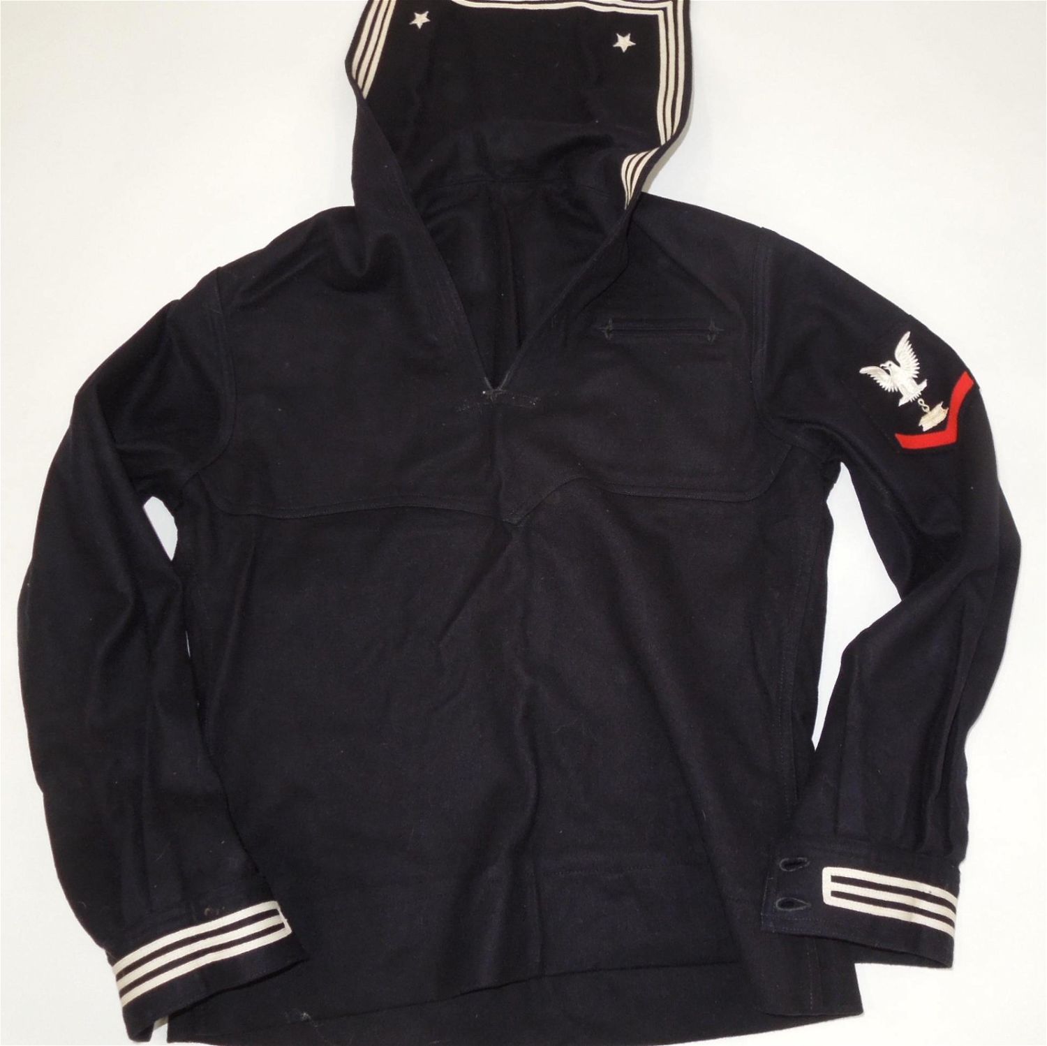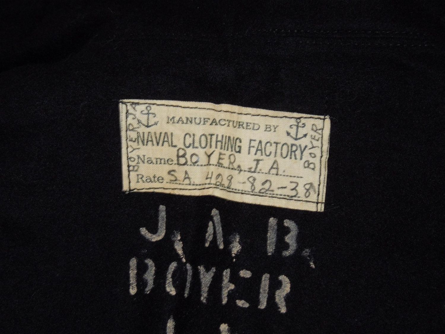 WWII uniform named to J.A. Boyer with his service number, and rate patch. Good condition with wear consistent with age.