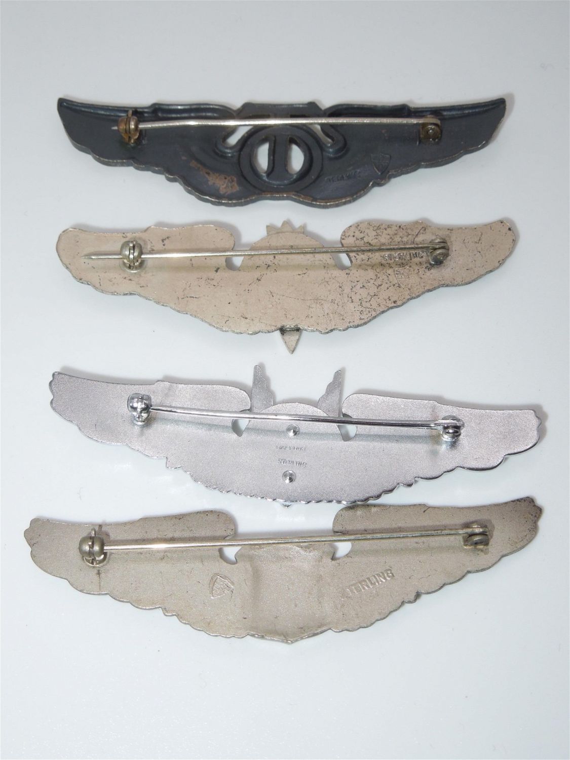 Lot of 4 reproduction (we believe) / Post war sterling marked wings- Technical Observer, Bombardier, Aerial Gunner, and Pilot.