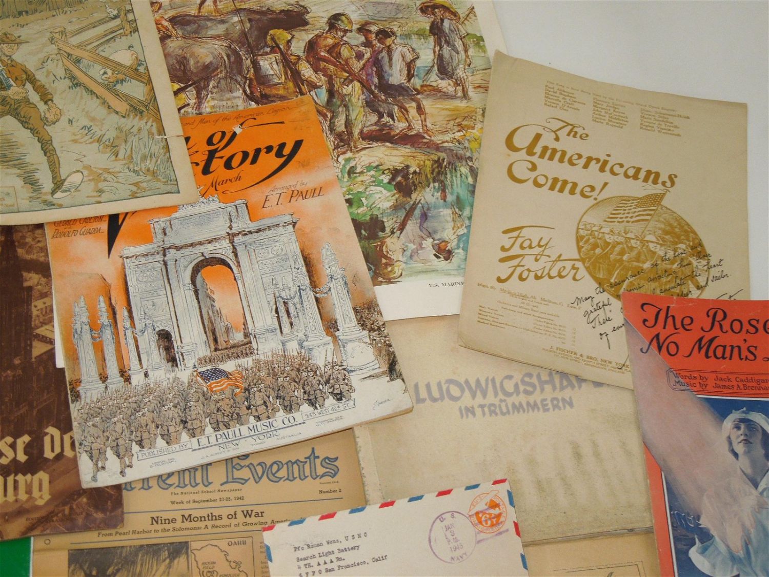 Large Military Ephemera Paper Books Named Documents Sheet Music Pictures Lot #2