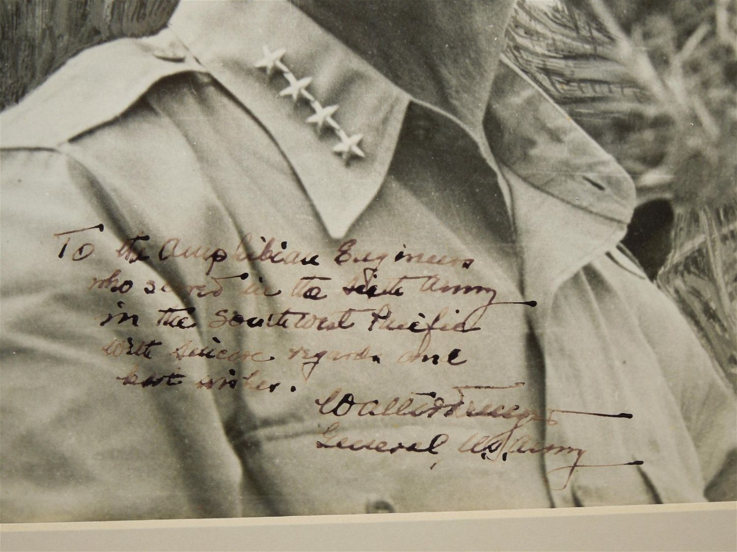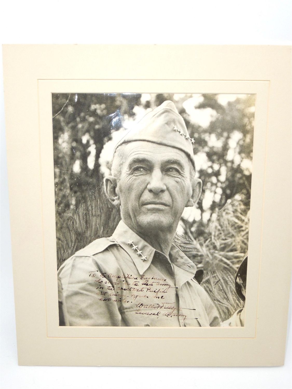 Walter Krueger (26 January 1881 – 20 August 1967) was an American soldier and general officer. He commanded the Sixth United States Army in the South West Pacific Area during World War II. He rose from the rank of private to general in the United States Army. In 1943 he was sent to General Douglas MacArthur’s Southwest Pacific Area as commander of the Sixth Army and Alamo Force, which he led in a series of successful campaigns against the Japanese. In 1945 at the Battle of Luzon, Krueger faced the Japanese army under Tomoyuki Yamashita and Krueger outmaneuvered his enemies like he had in the 1941 exercises. This was Krueger’s largest, longest, and final battle. The approximate size is 10.75 x 12.5 inches. Nicely matted.