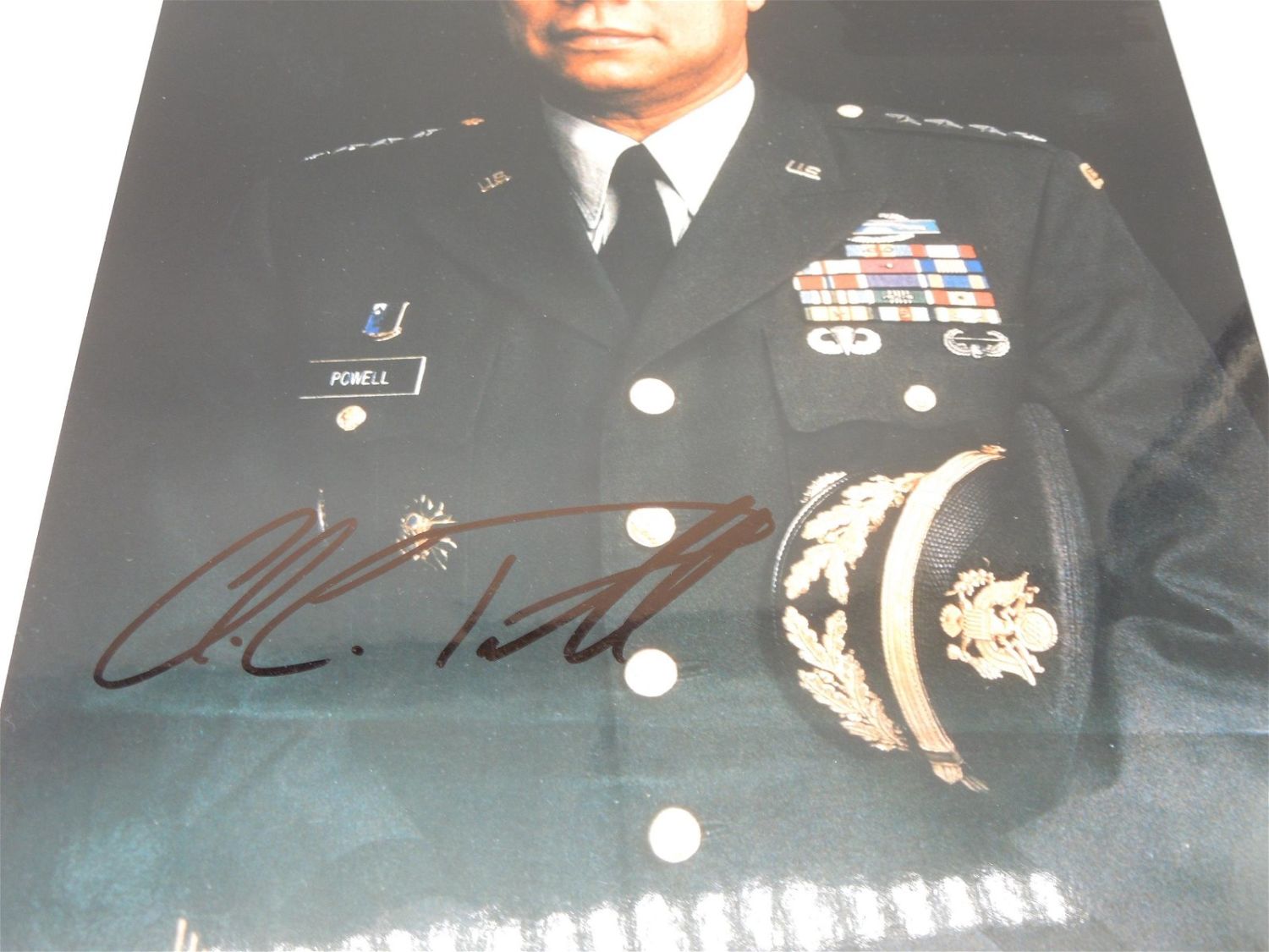 Army General Colin L. Powell Signed Photo. Colin Luther Powell (April 5, 1937 – October 18, 2021) was an American politician, statesman, diplomat, and US Army General who served as the 65th US Secretary of State from 2001 to 2005. He was the first African-American Secretary of State. He served as the 15th US National Security Advisor from 1987 to 1989 and as the 12th Chairman of the Joint Chiefs of Staff from 1989 to 1993. Approximate size is 8 x 10 inches. Nice condition.