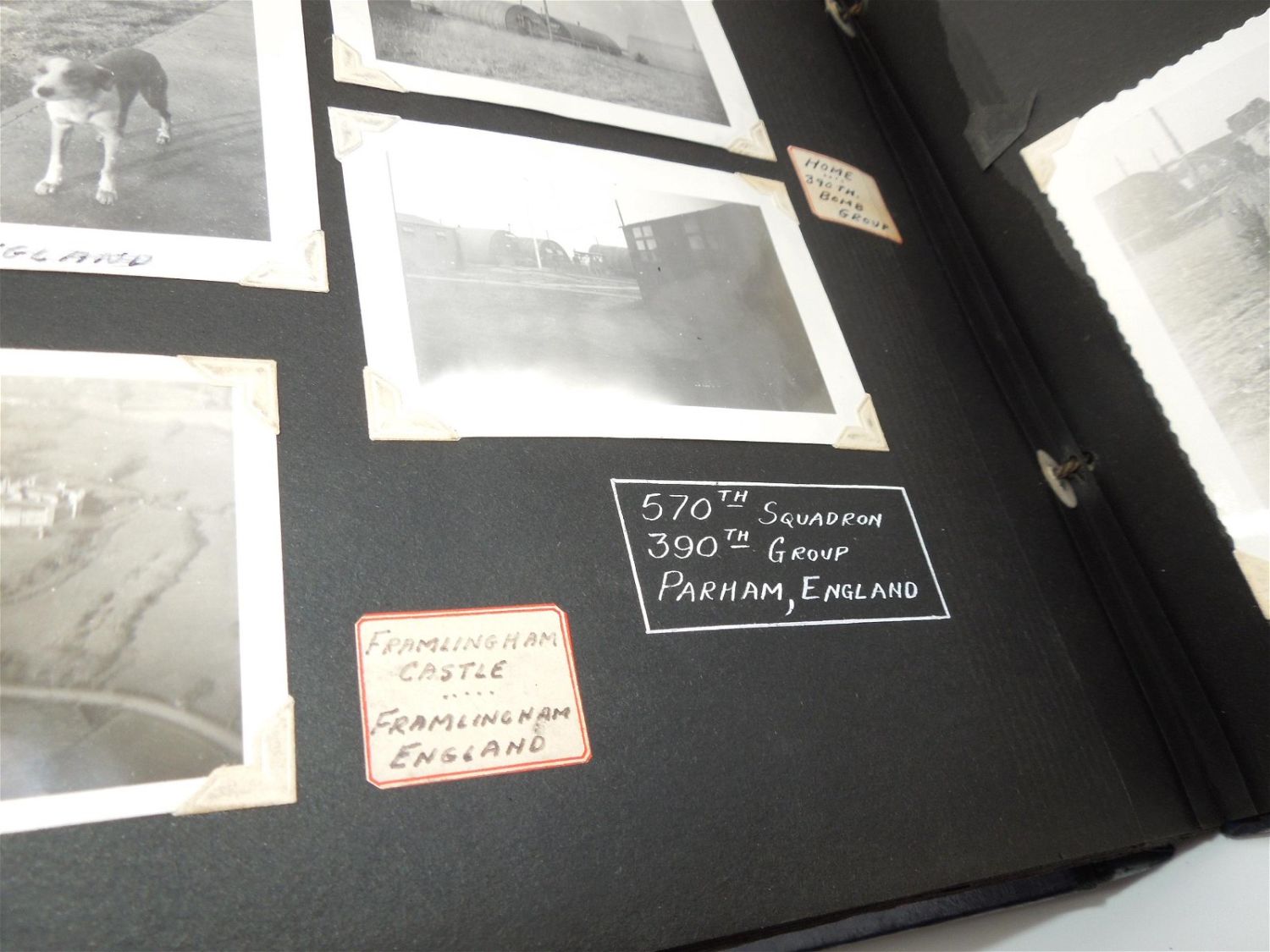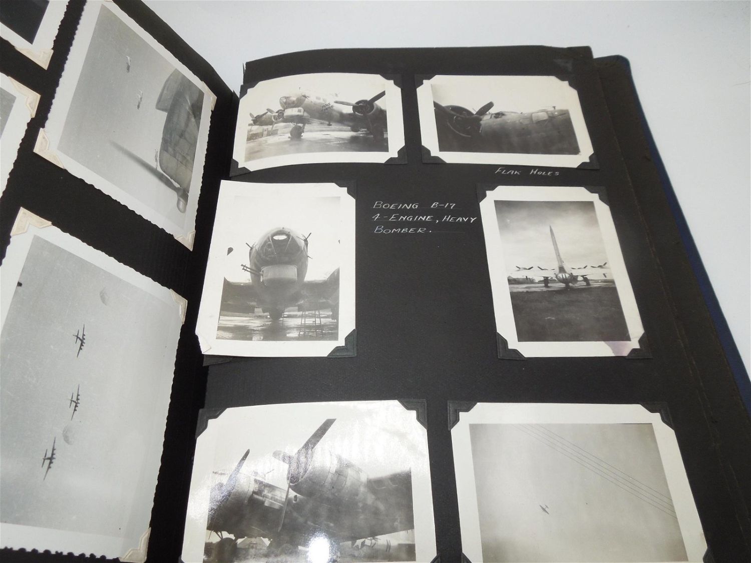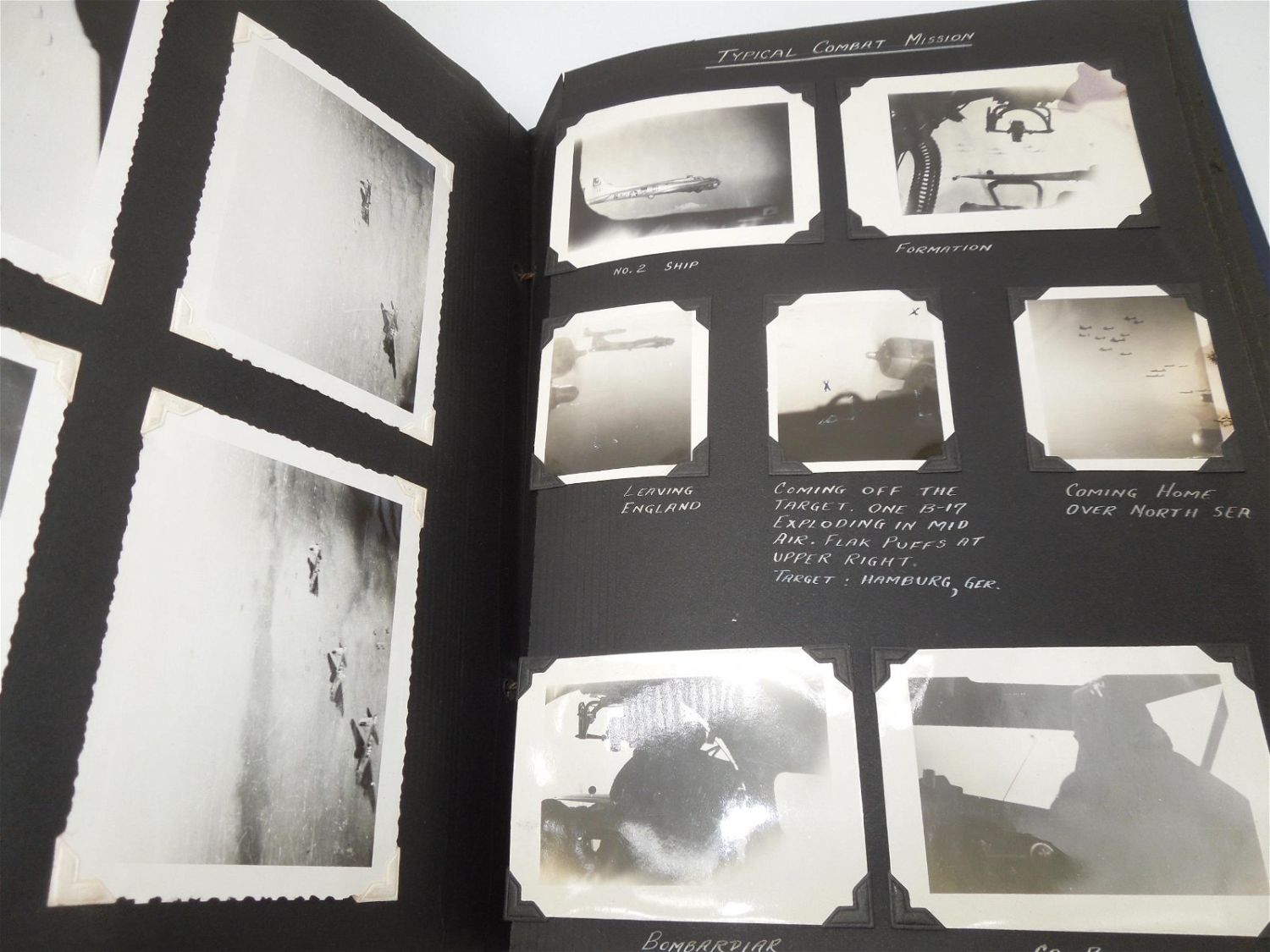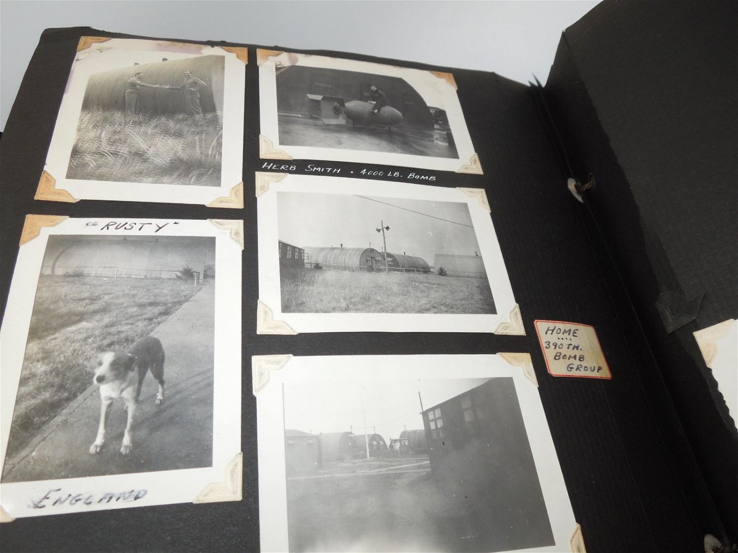 Beautiful 8th AAF, 390th Bomb Group photo album from WWII detailing training to England, to actual combat mission photos from over Europe in B-17s. Good condition with great captions.