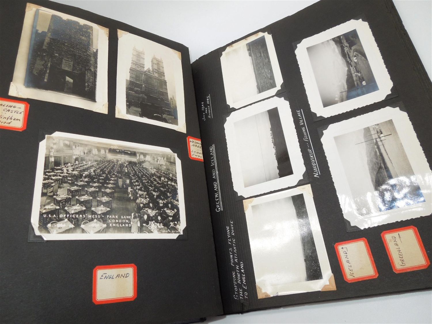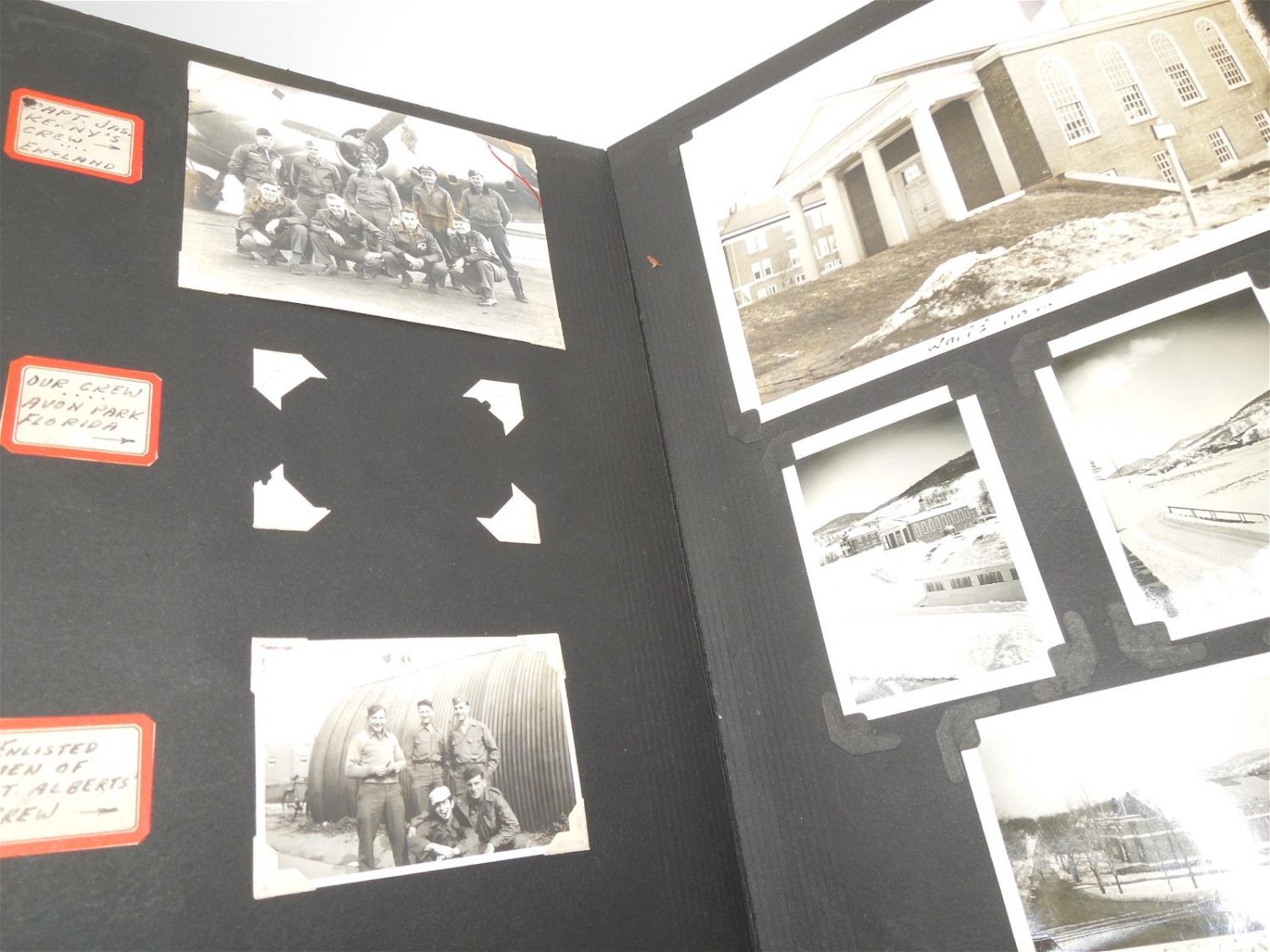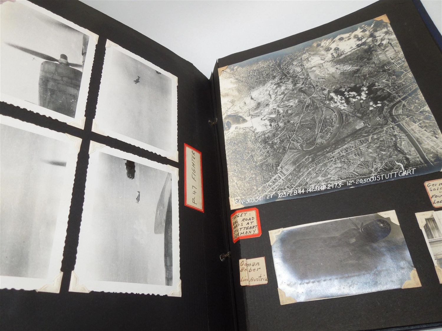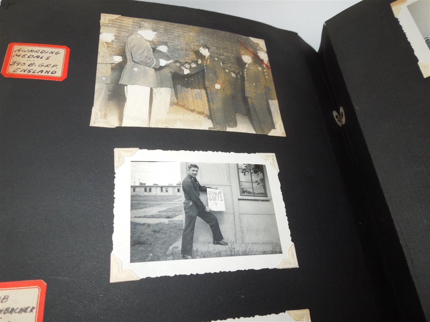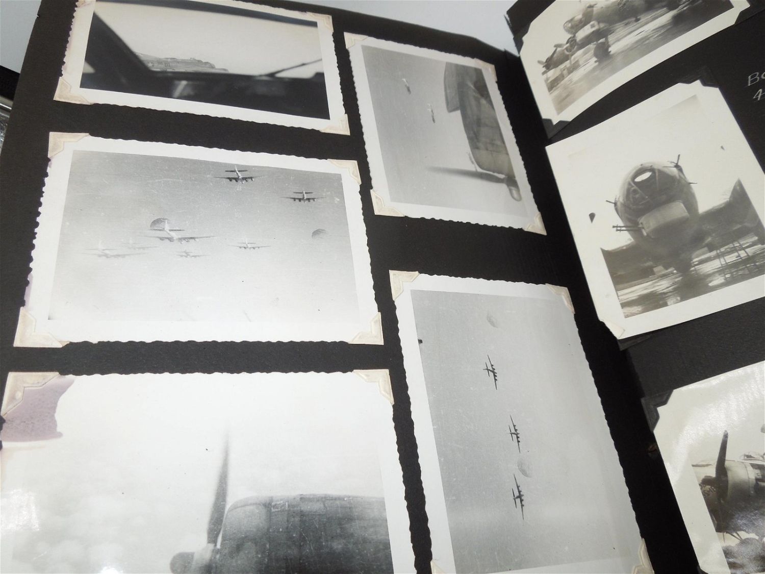 Beautiful 8th AAF, 390th Bomb Group photo album from WWII detailing training to England, to actual combat mission photos from over Europe in B-17s. Good condition with great captions.