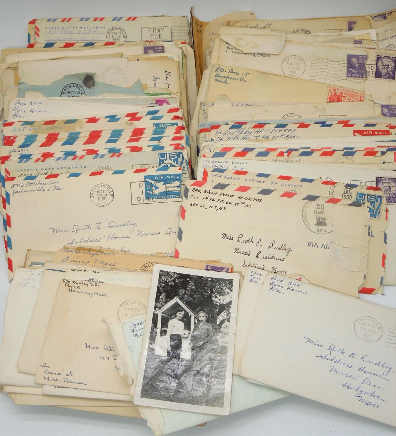 1950s – 60s Nurse Large Letter Archive. Letters mainly to Miss Ruth E. Dudley who was a nurse and worked at Holyoke Soldiers Home. There are approximately 230 plus letters. Some letters are from soldiers and from Dudley herself. Good readable condition for its age.