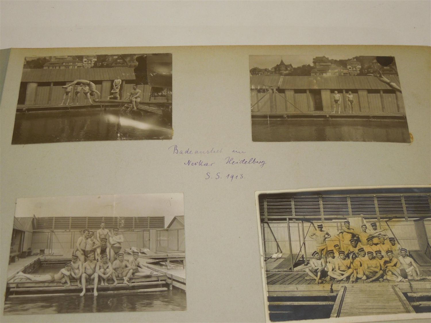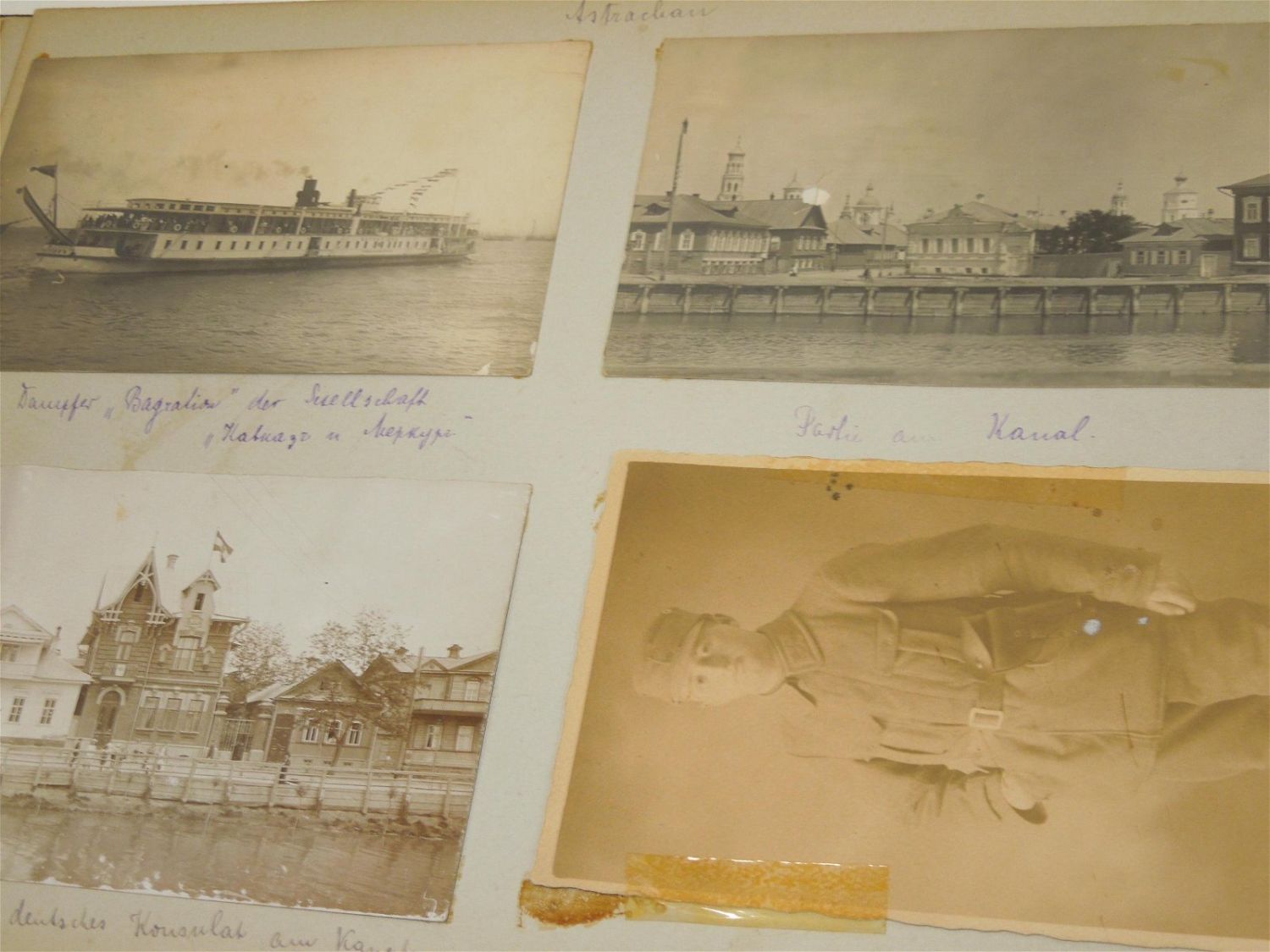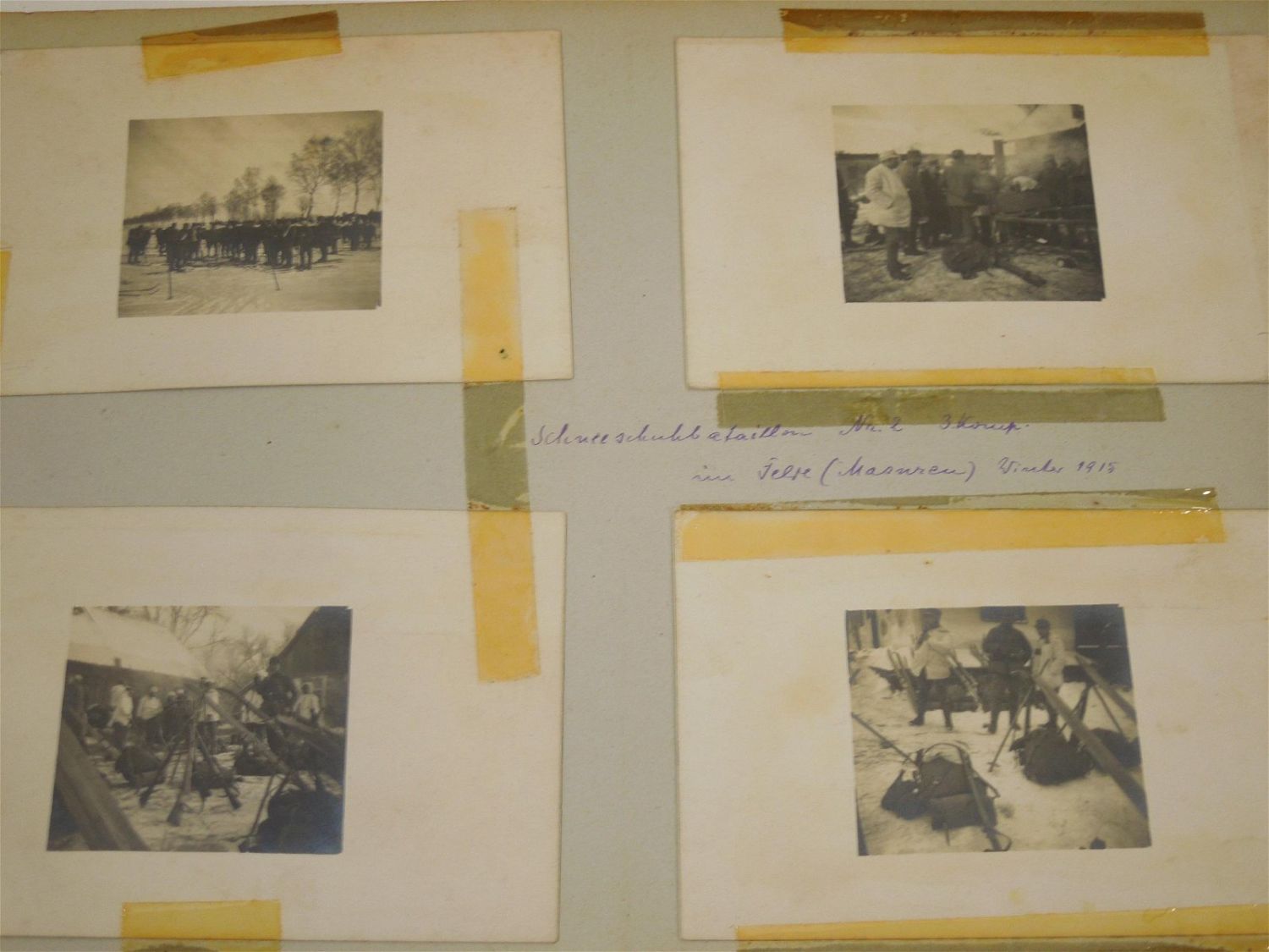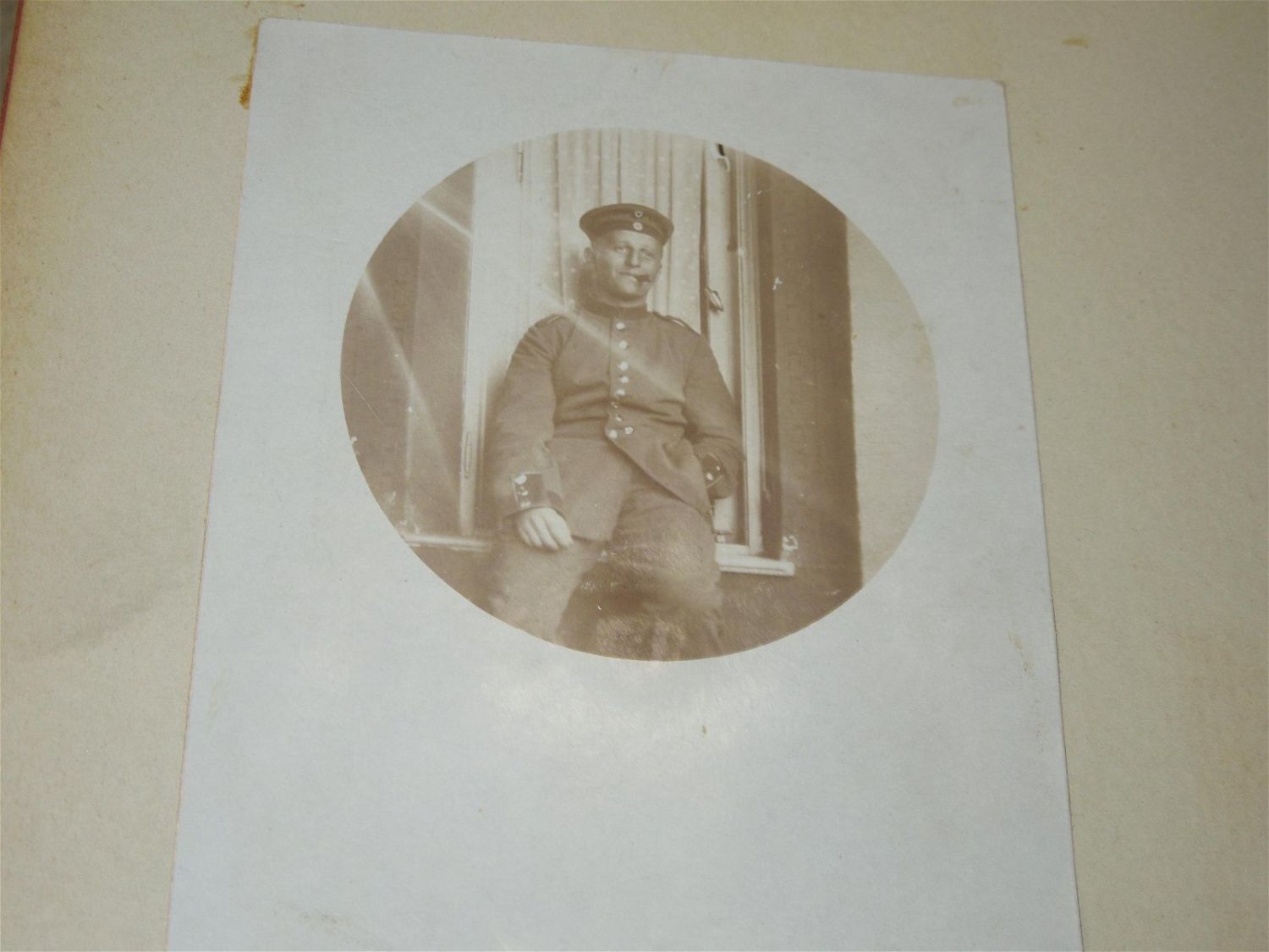 WWI Imperial German Photo Album Scrapbook. Named to Dr. Julius Voehl who was born in Giessen, Germany on 1895 and died in Syracuse, New York in 1986. Included are 45 plus photos and Real Picture Post Cards (RPPC) from 1913 to 1918. Most photos are identified in German. Nice condition for its age. The front cover is partially detached.