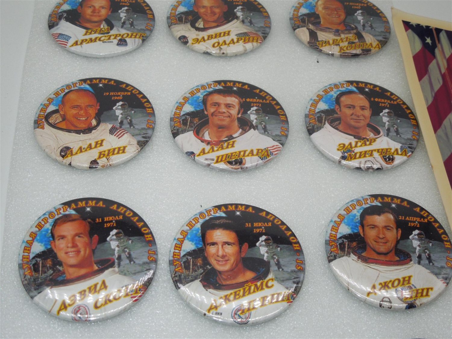 NASA Russian US Space Astronaut Buttons & Thomas Stafford Signed Photo.