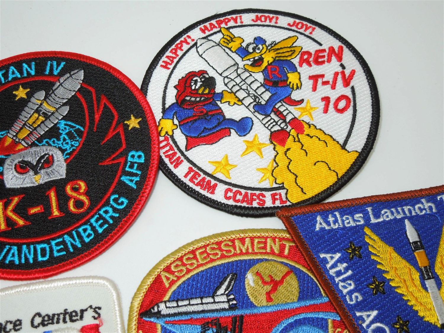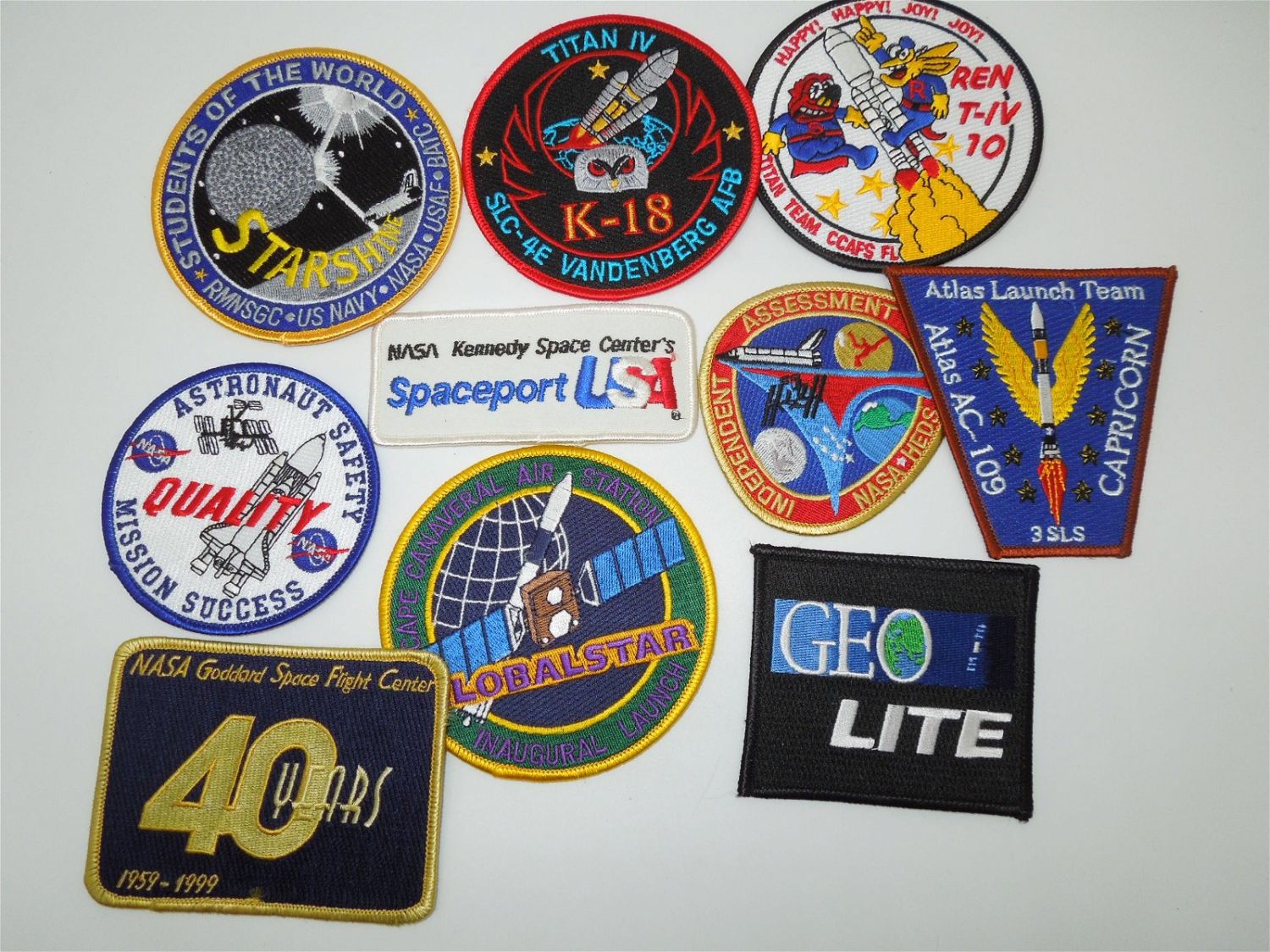 Lot of ten vintage NASA and Space mission type patches as shown. Most are in unused condition. Condition: See description for condition.