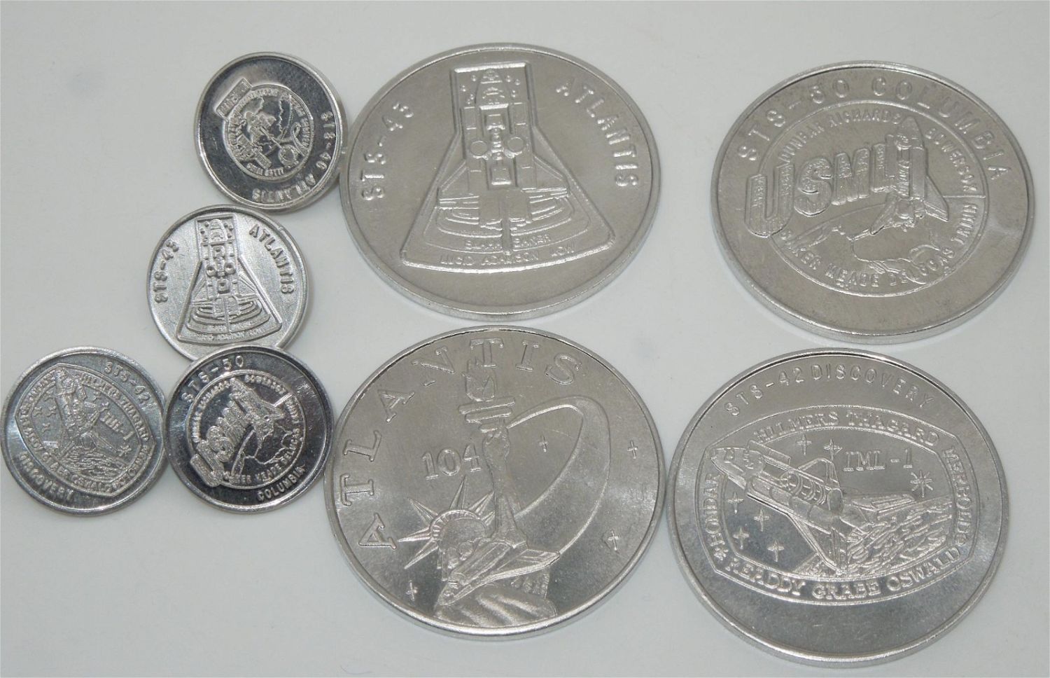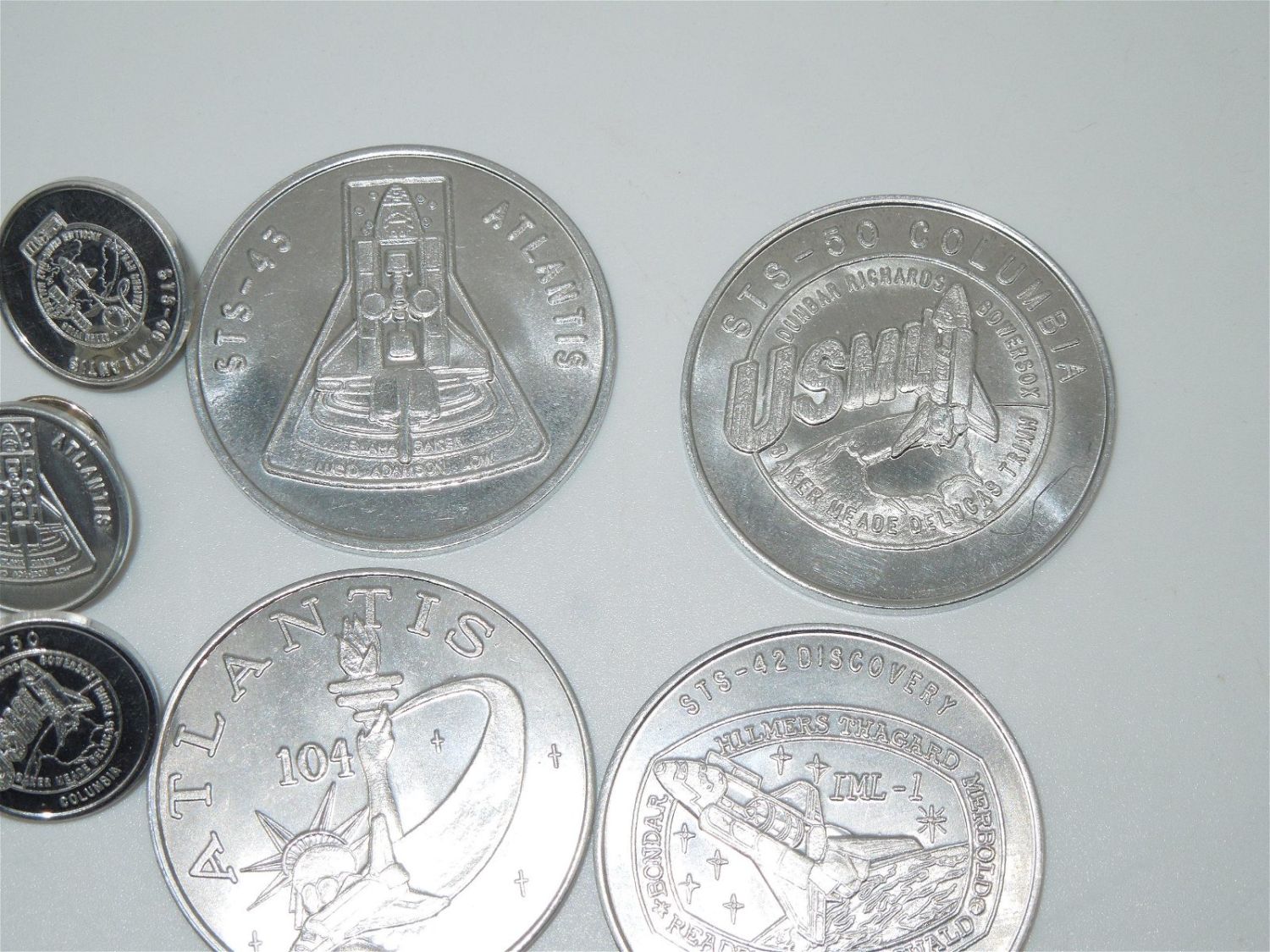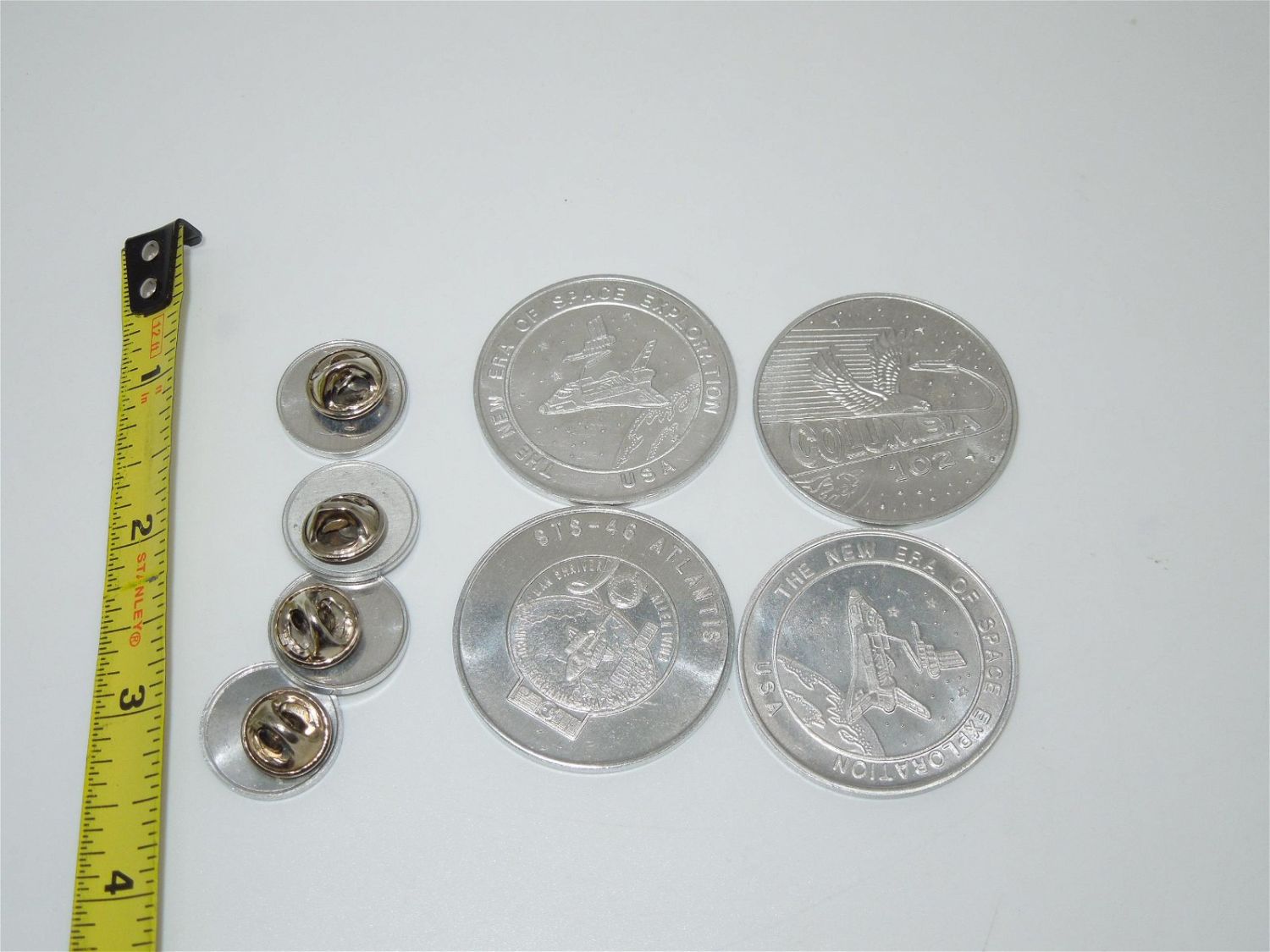 Original lot of lightweight metal coins and pins from various Space Shuttle missions. Good condition. Condition: See description for condition report.