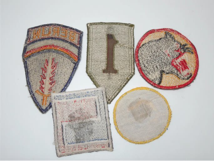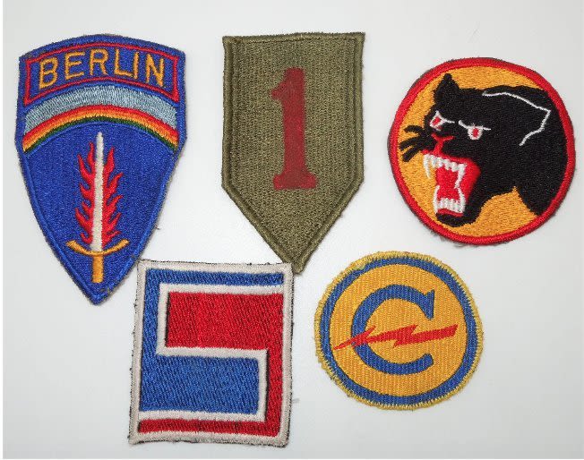 Lot of five German made occupation era patches to include US Army Europe Berlin, 66th Infantry Division, Constabulary, 69th Infantry Division, and 1st Infantry Division. These are period patches in fair to good condition.