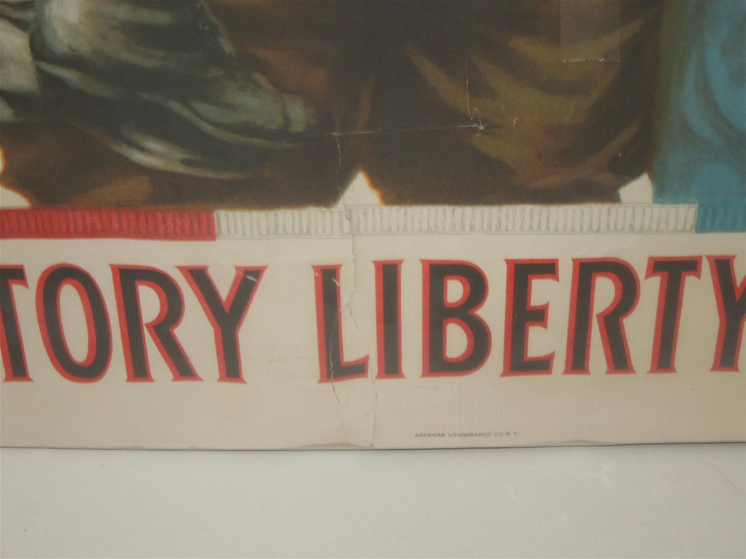 1918 WWI Victory Liberty Loan For Home and Country Poster. This colorful lithographed poster was issued to promote Victory Liberty Loans. Lithograph by Alfred Everett Orr. Produced by the American Lithographic Co. Approximate size is 20 x 30 inches. Condition is fair with tears and creases along the edges. When shipped, this poster will be delivered rolled.