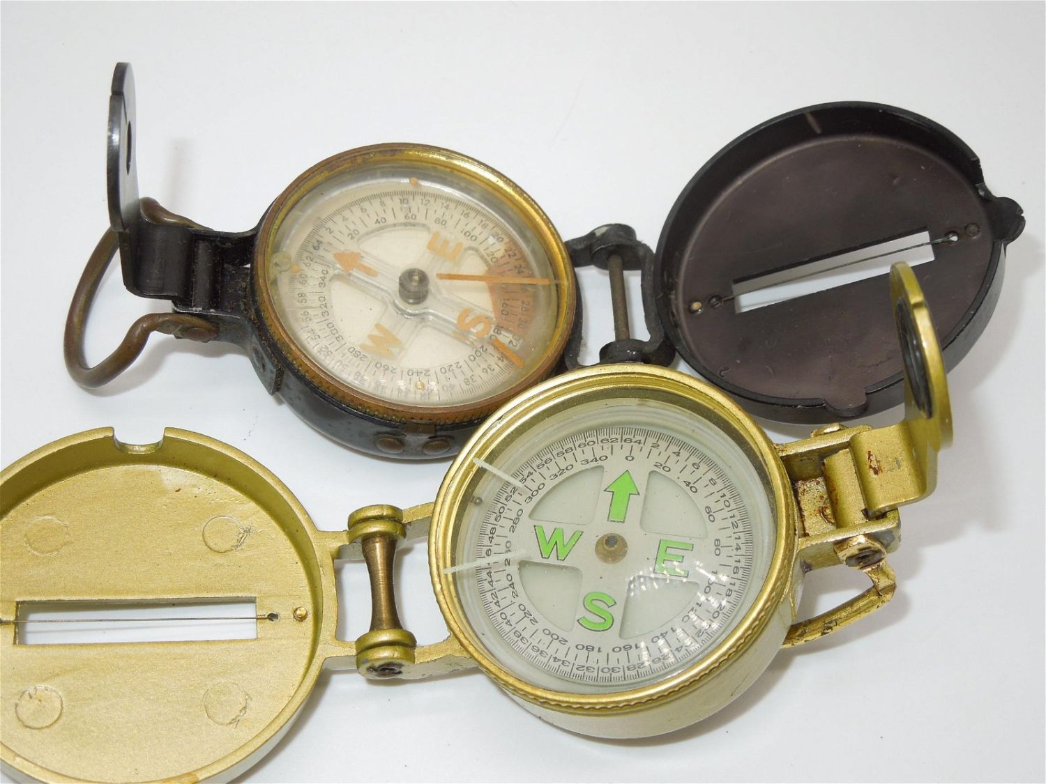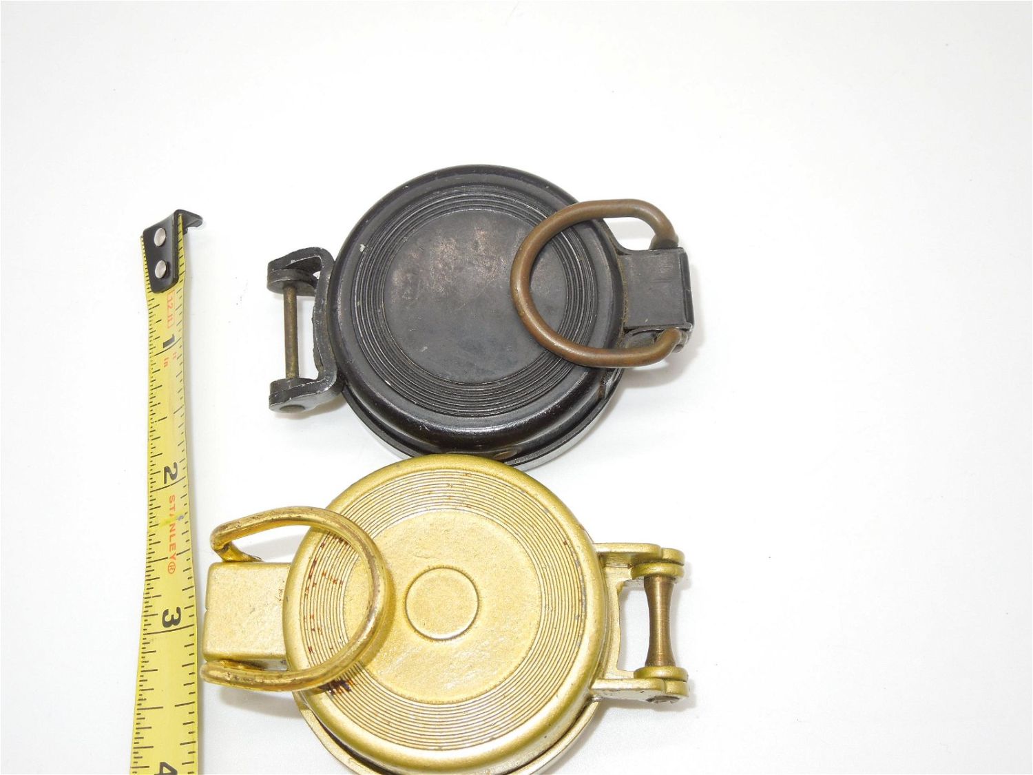 WWII 1945 Army Corp of Engineers Directional Compass lot of (2). One piece is newer while the other one is dated 1945. The WWII era compass was manufactured by the Superior Magneto Corp. Approximate size is 2 inches. We are not sure if they work properly. They do have free moving needles. Condition is good for their ages.