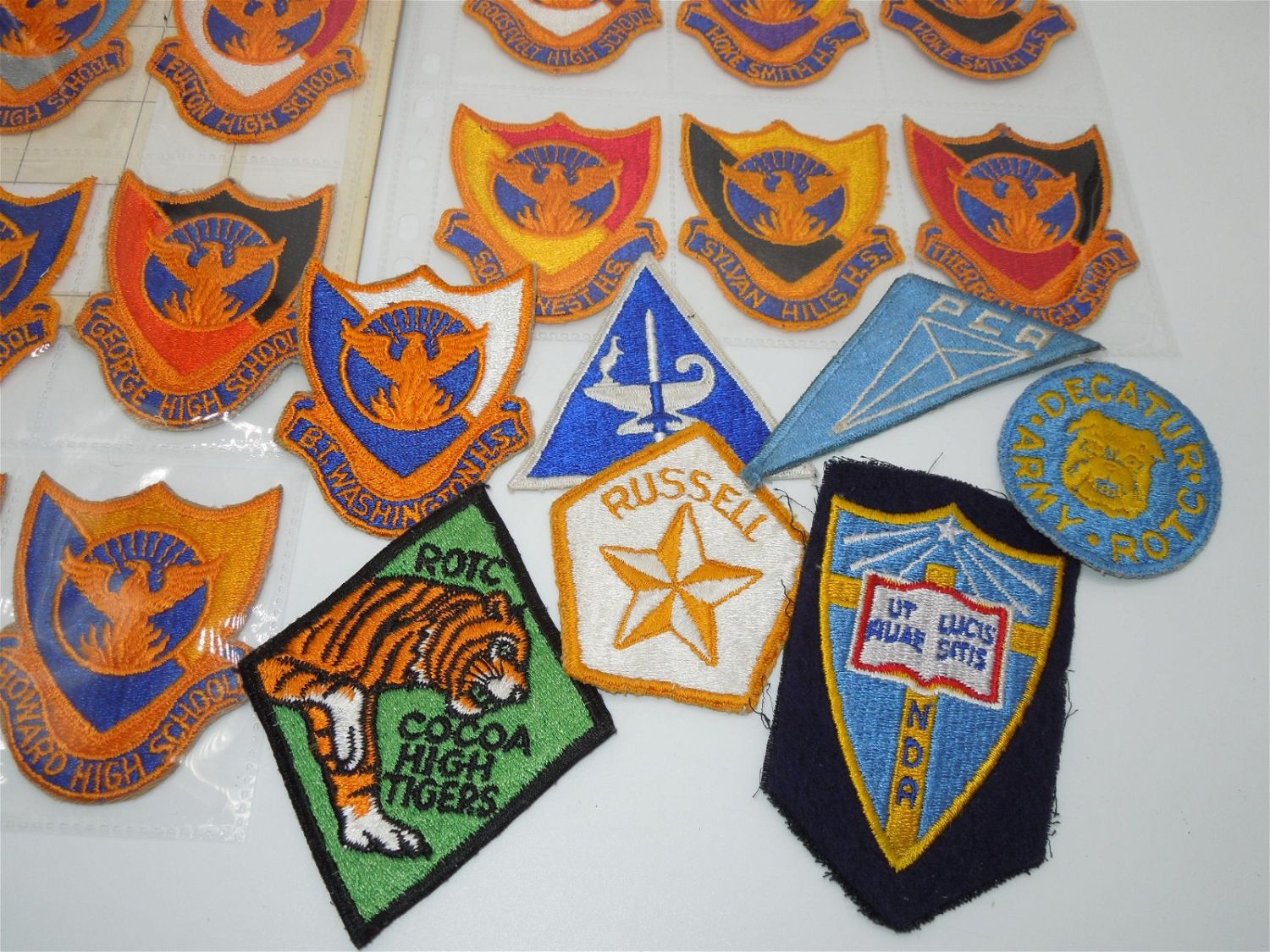 1950s – 1960s JROTC Patches, & Distinctive Unit Insignia DUIs Atlanta Area Group. You will receive (16) DUIs (pin and clutch back) from the Atlanta, Georgia area. Also included are 25 plus patches. Nice condition for their age.