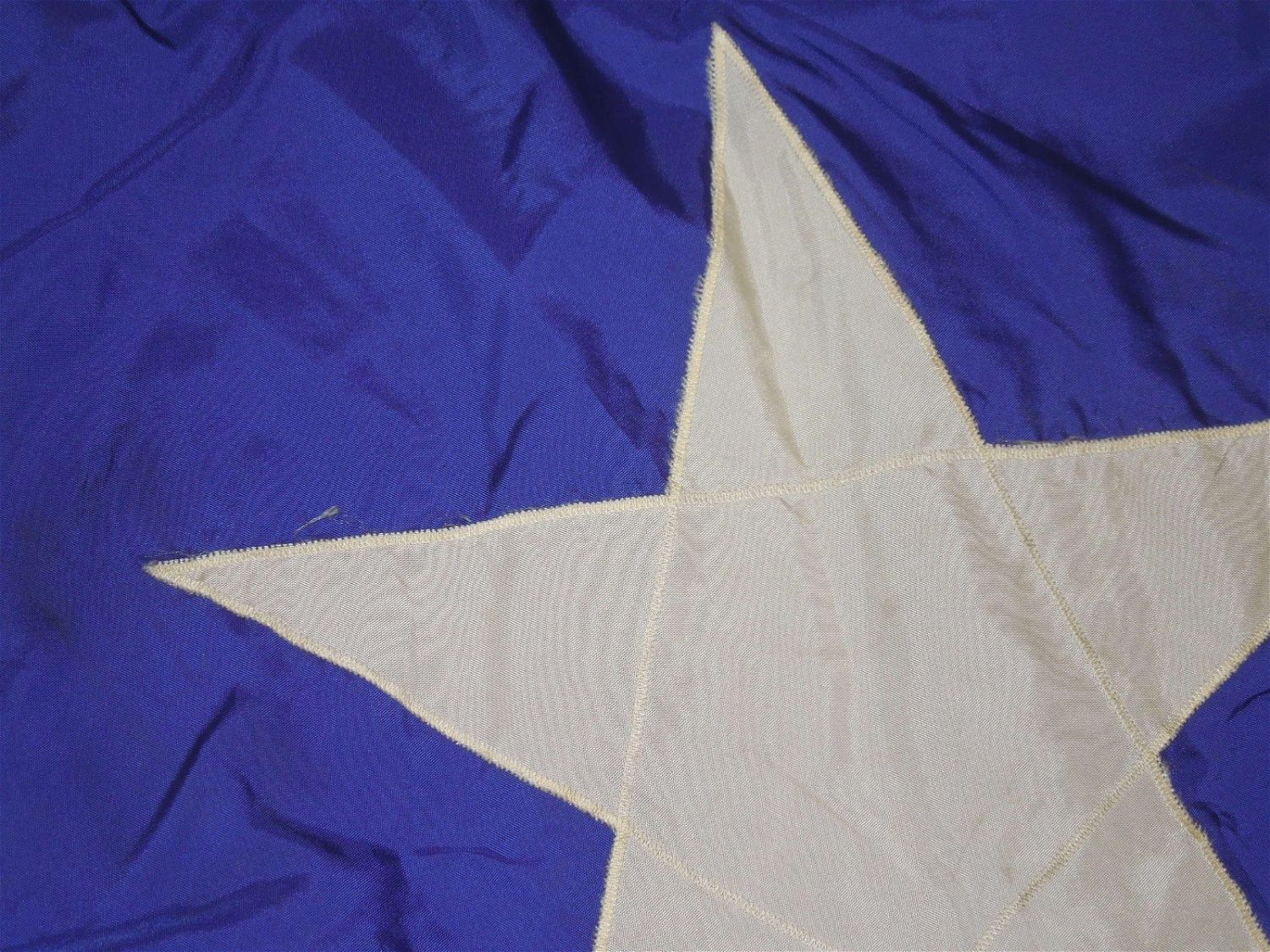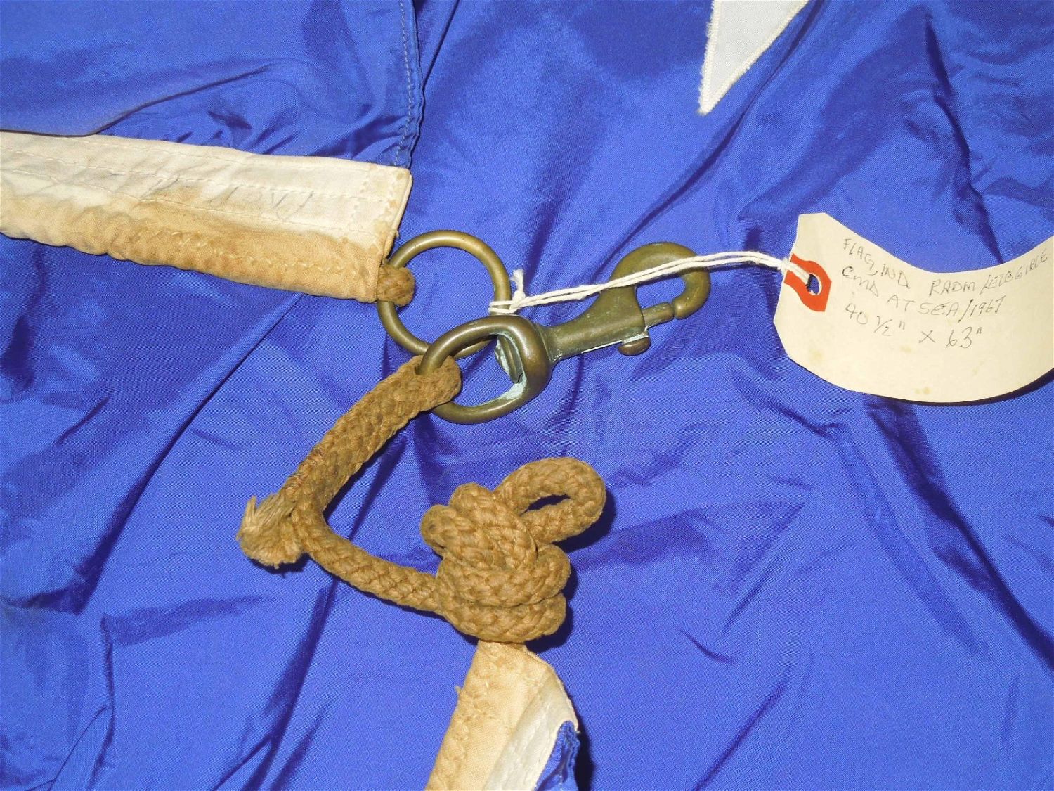 USN Navy Rear Admiral Officers Command At Sea Flag. You will receive a Rear Admirals Officers stitched stars onto the nylon fabric flag. The approximate size is 40.5 x 63 inches. Size 6. The header and the rope on the flag are in good used condition. The flag itself is in good condition.