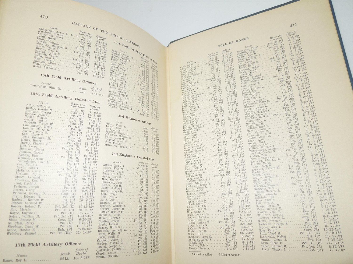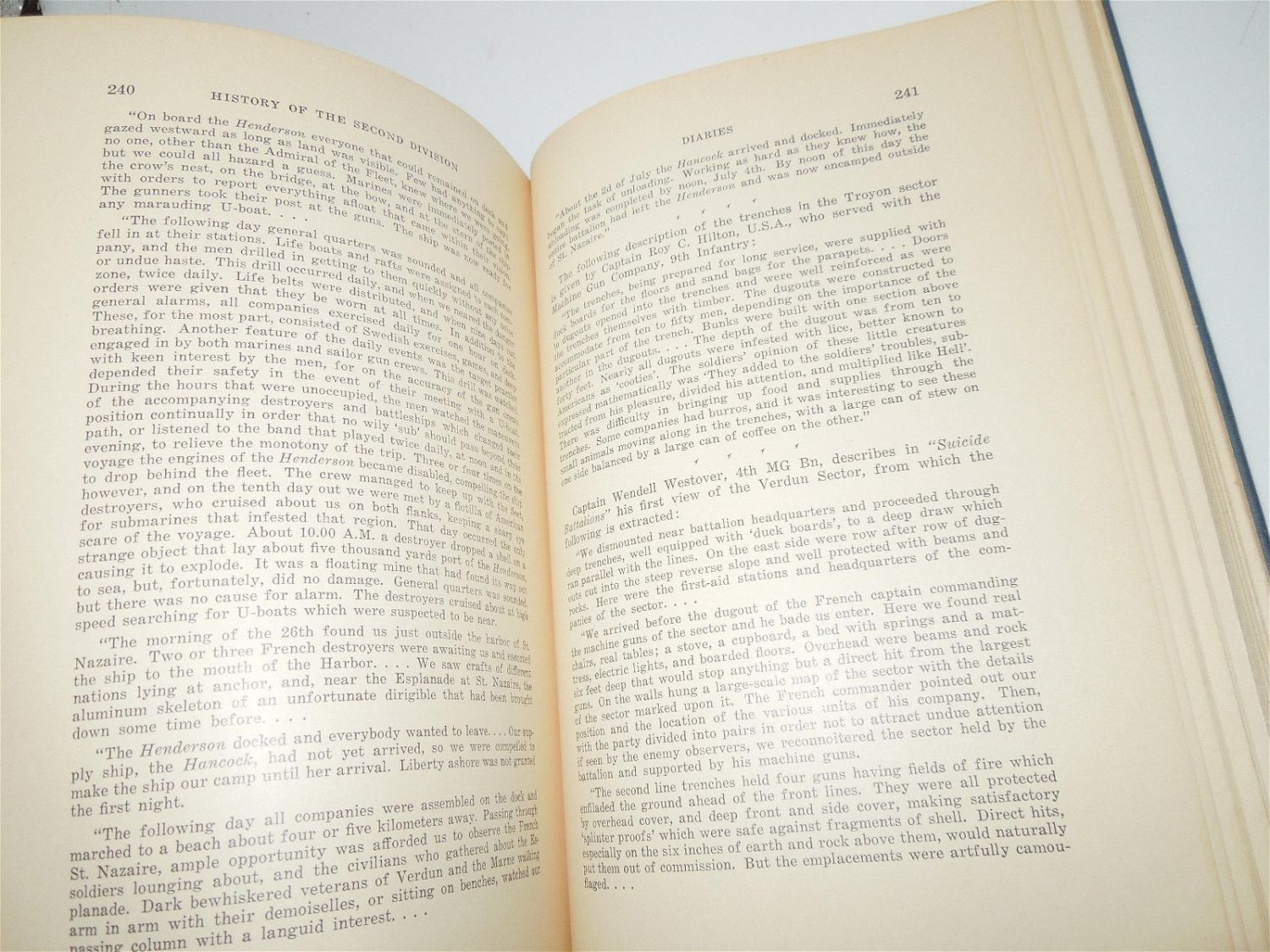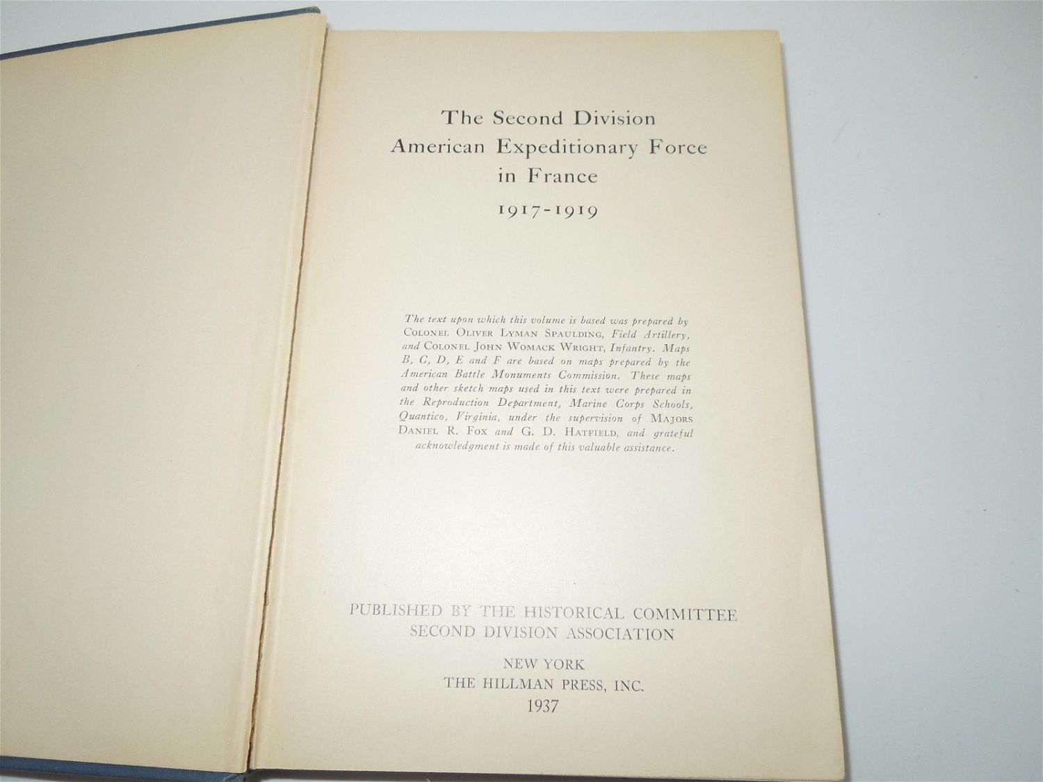 WWI Army 2nd Second Marine Division American Expeditionary Force AEF in France Book. Published by the Historical Committee Second Division Association. Copyright: 1937 by the Hillman Press, Inc. 412 pages that includes a roster of citations and Roll of Honor of KIA & WIA. Wear to the covers from use and the front cover has what appears to be water spots. Nice readable condition.