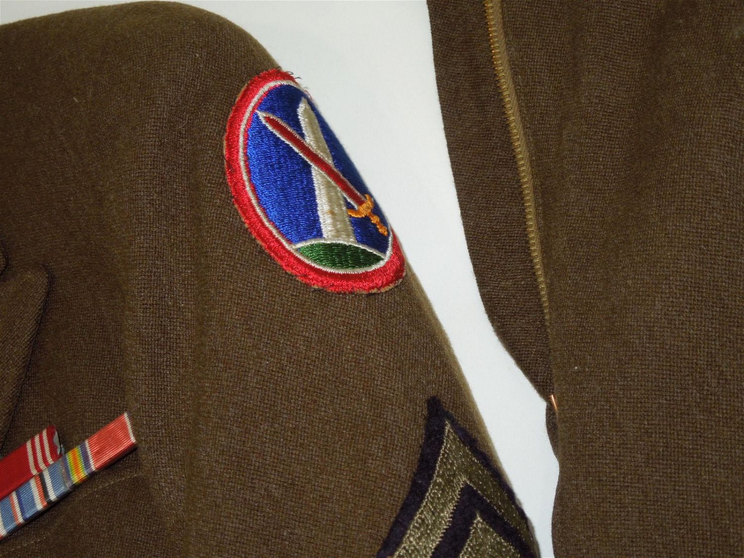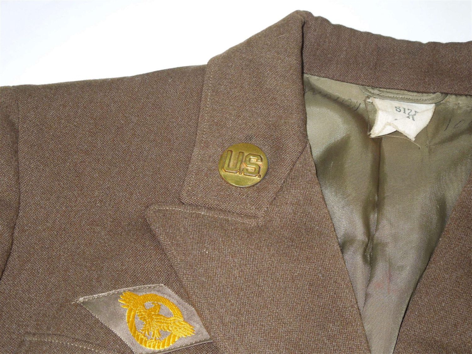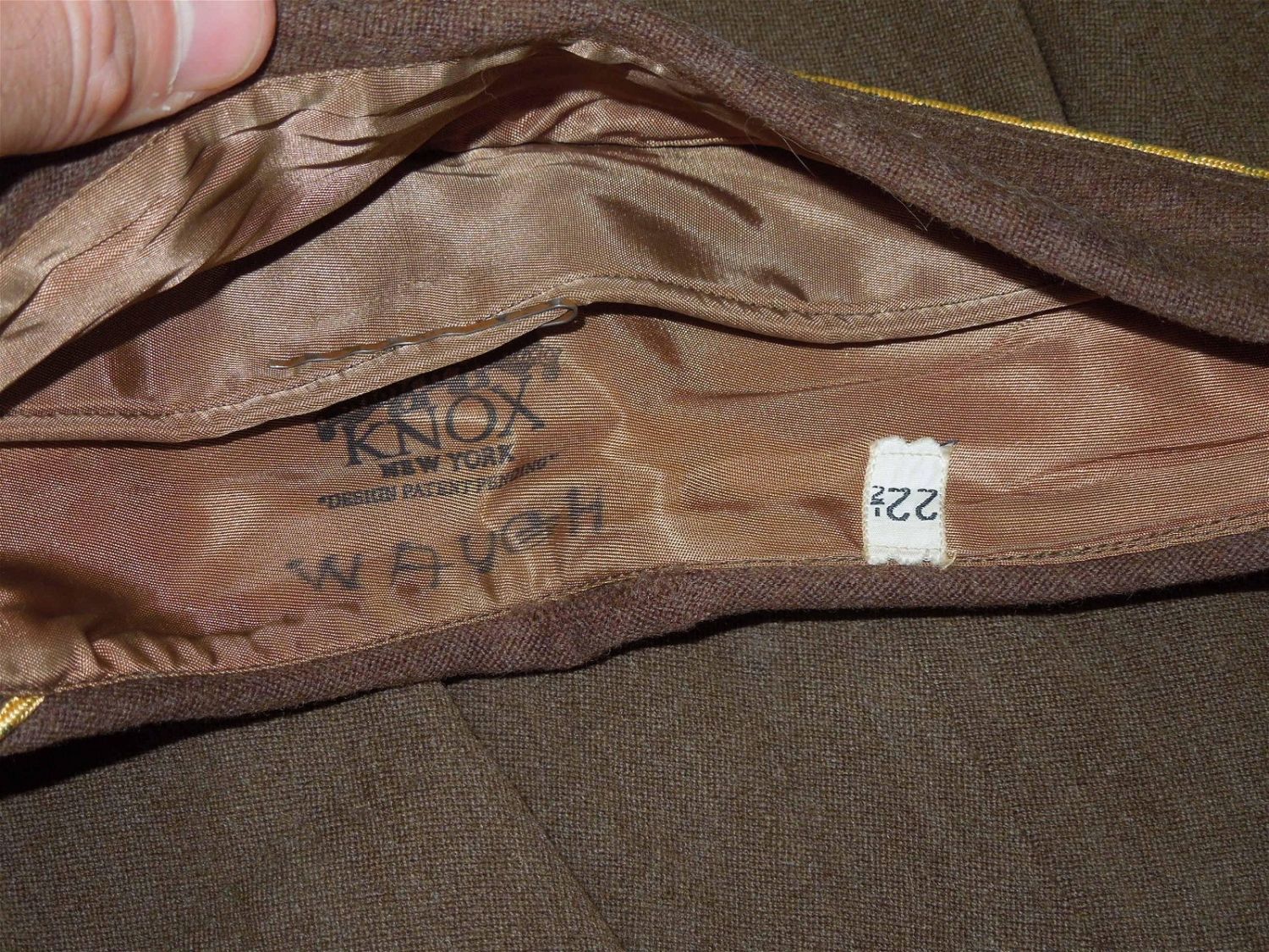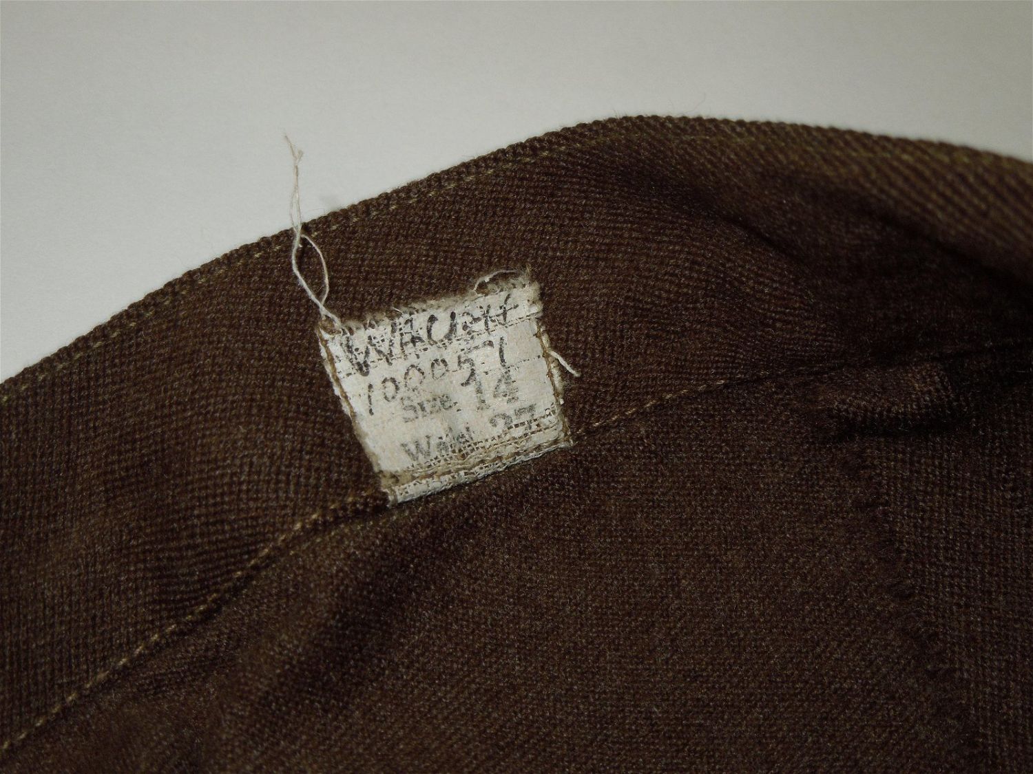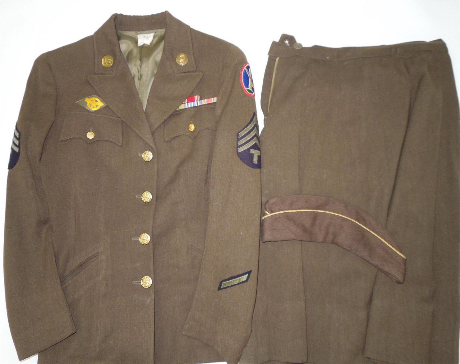 WWII named Womens Army Corps uniform jacket- Military District of Washington with period ribbons, patches, skirt, and garrison cap. Named to Waugh. All pieces are in good condition.