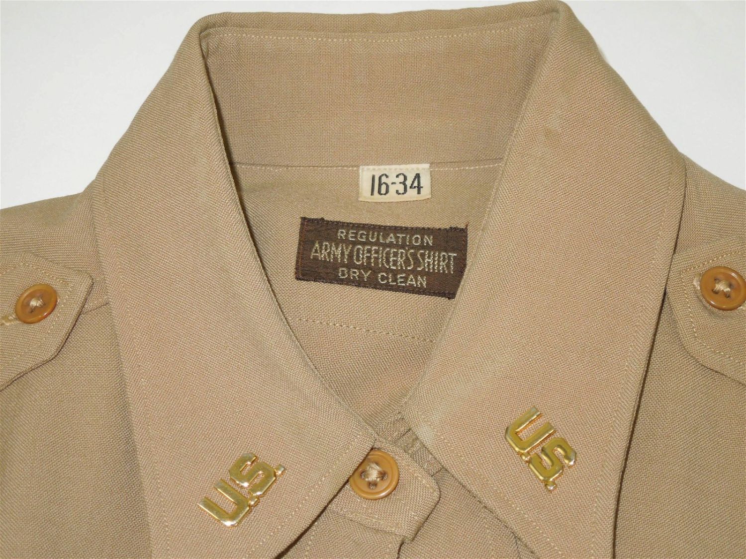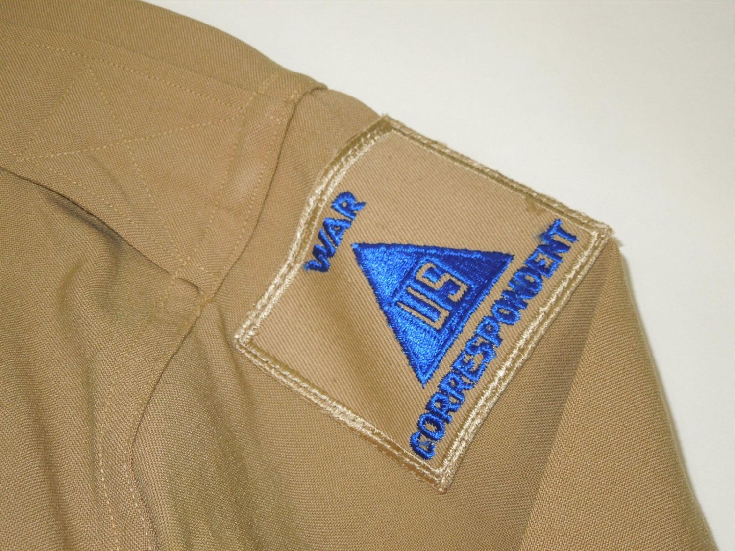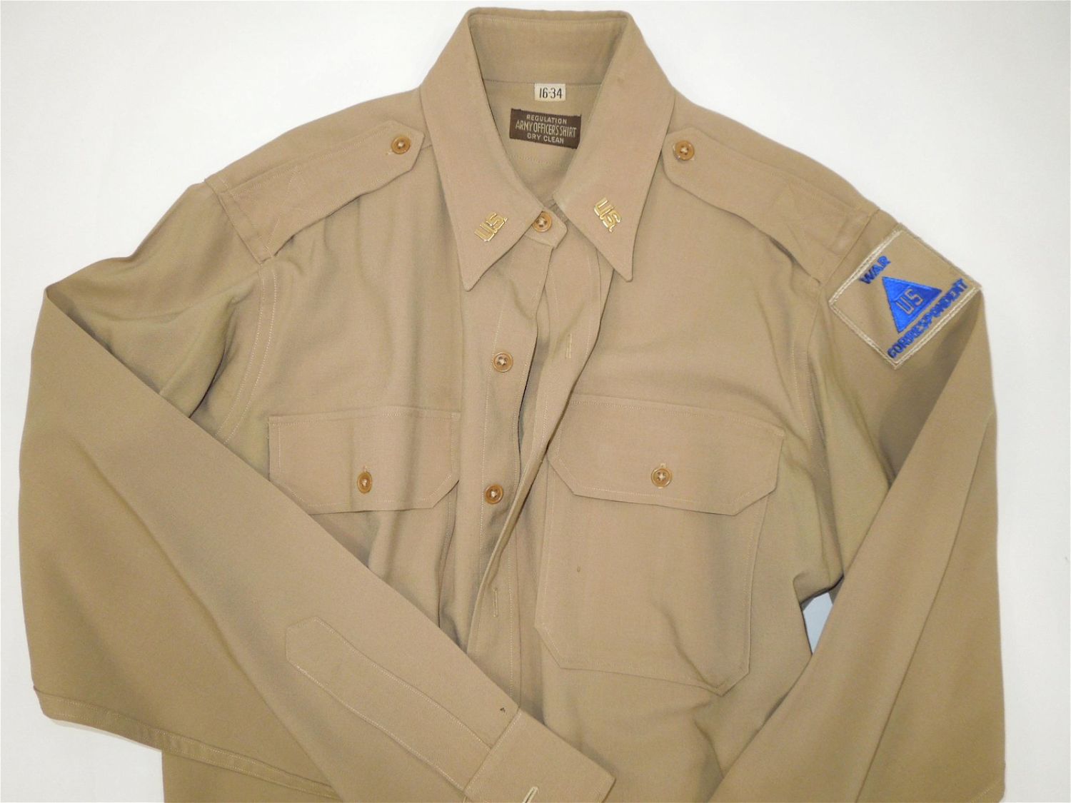 WWII US War Correspondent Civilian patched offcier style shirt with post war US insignia on the collar. Not named but is a large size. Good condition.