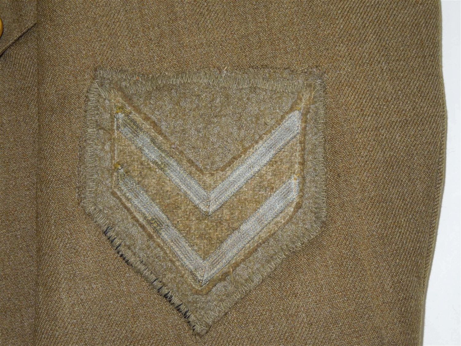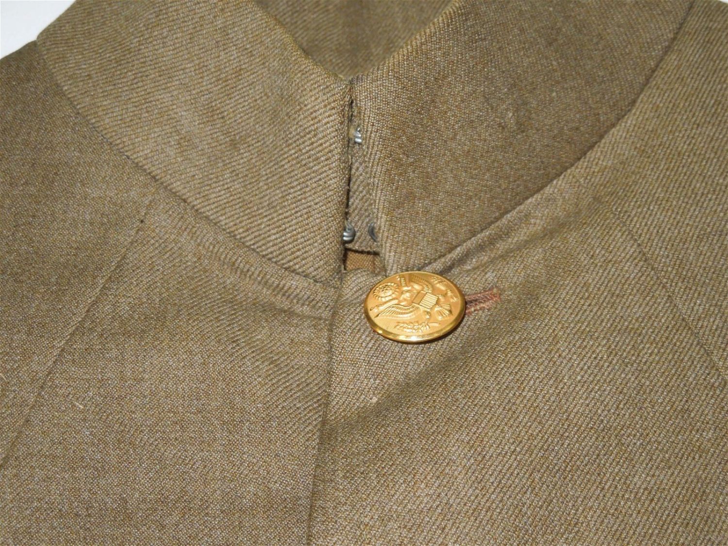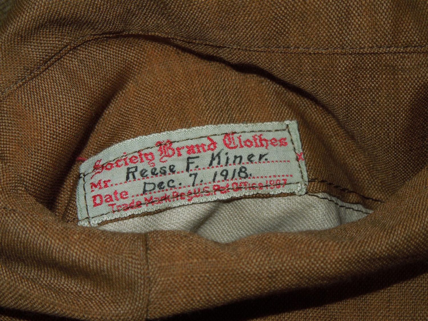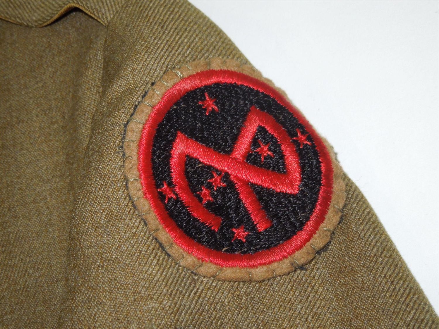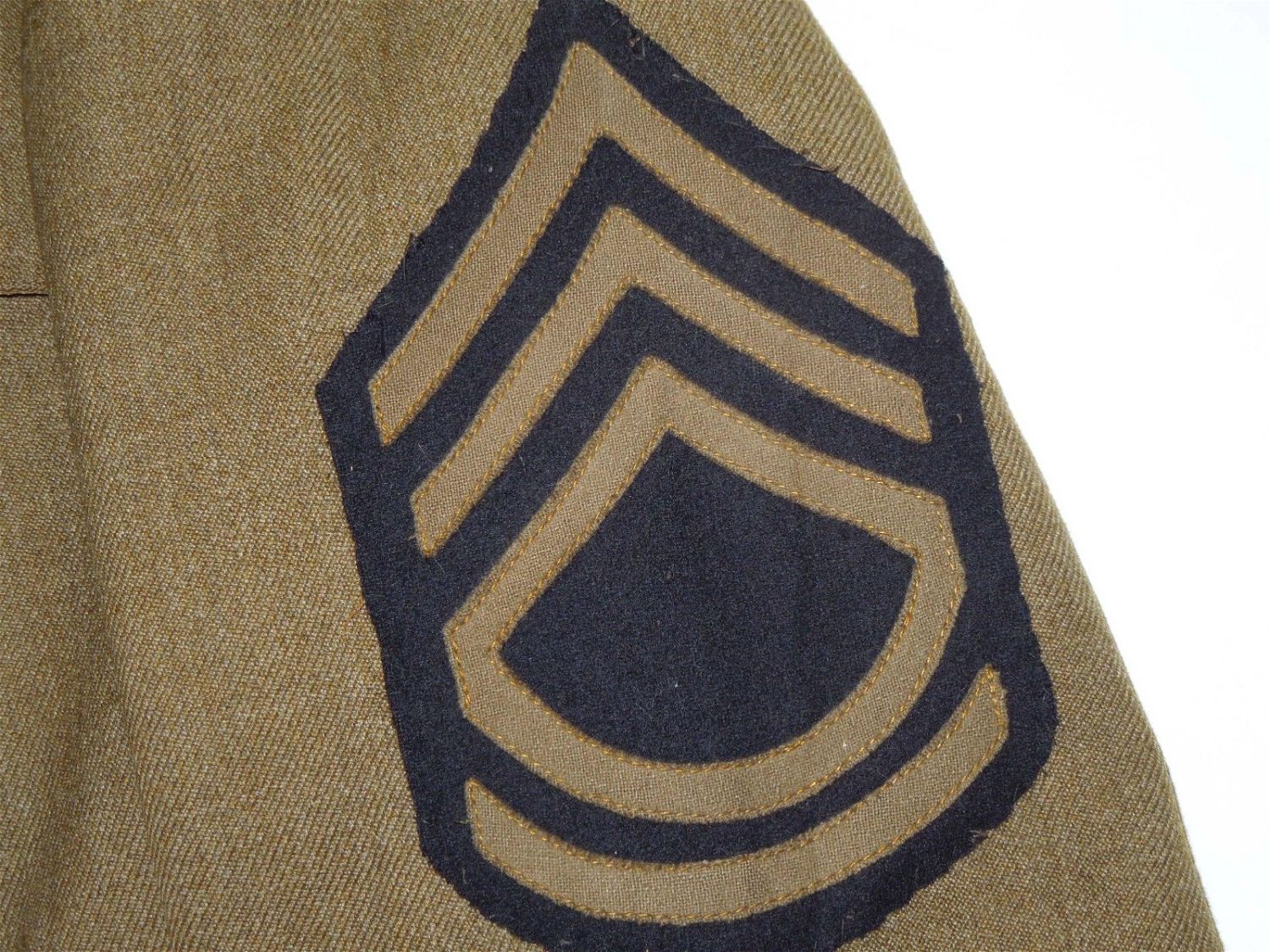 1920s Named uniform jacket to a Technical Sergeant in the 27th Infantry Division who had a year overseas in WWI. Named to Reese F. Kiner. Nice wool patch, bullion overseas chevrons, and wool stripes. Good condition.
