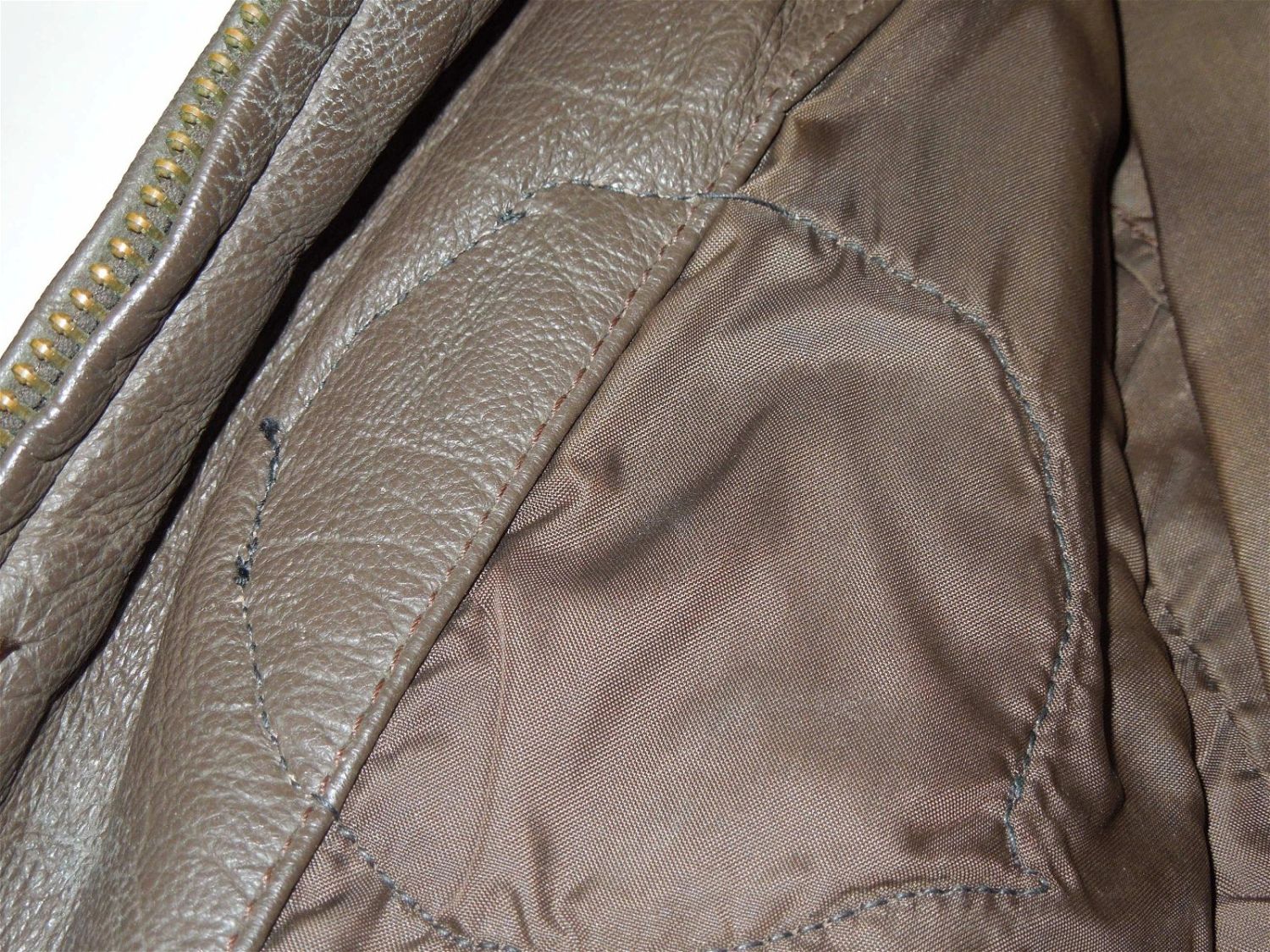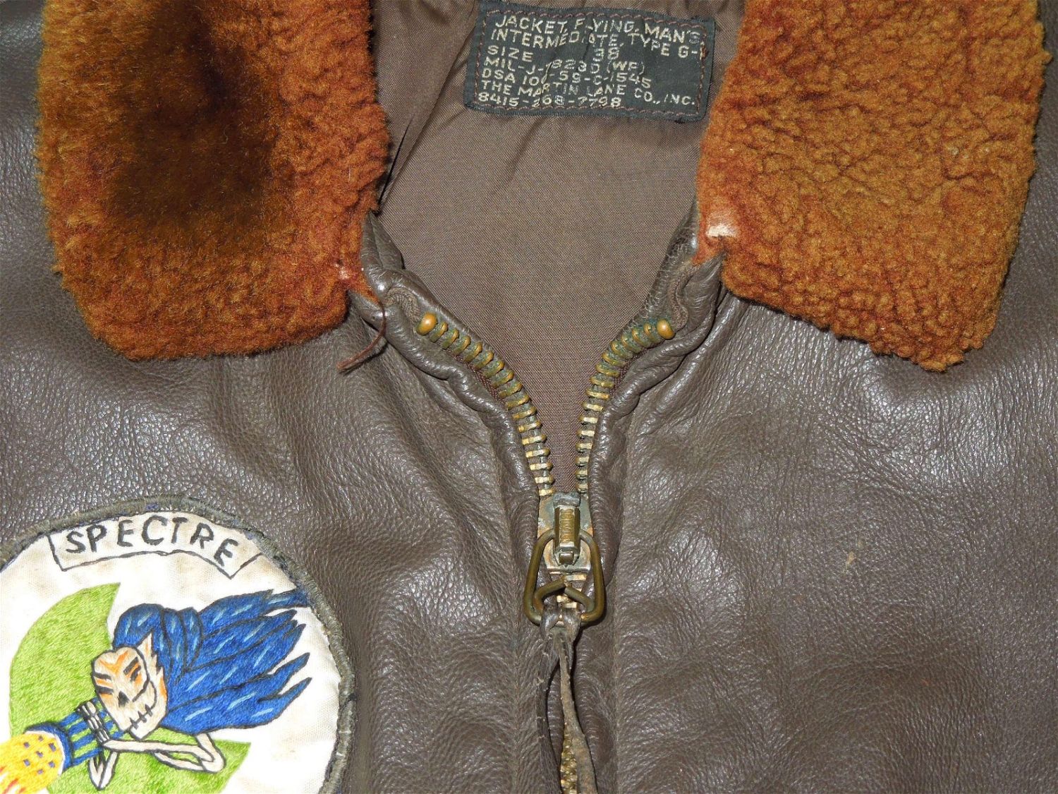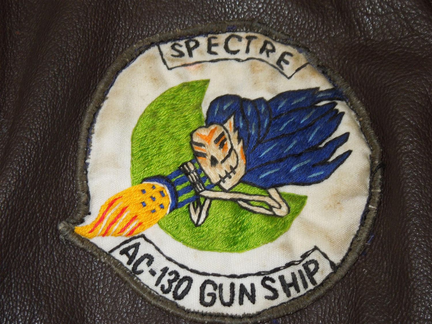1950s dated leather US Navy G-1 flight jacket with a custom made AC-130 gunship patch machine sewn to it. The backstory is unknown on this piece as it is not named. Zipper works and jacket is in good condition.