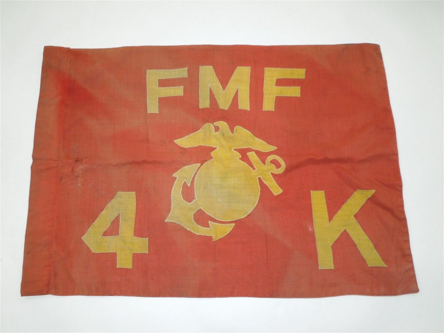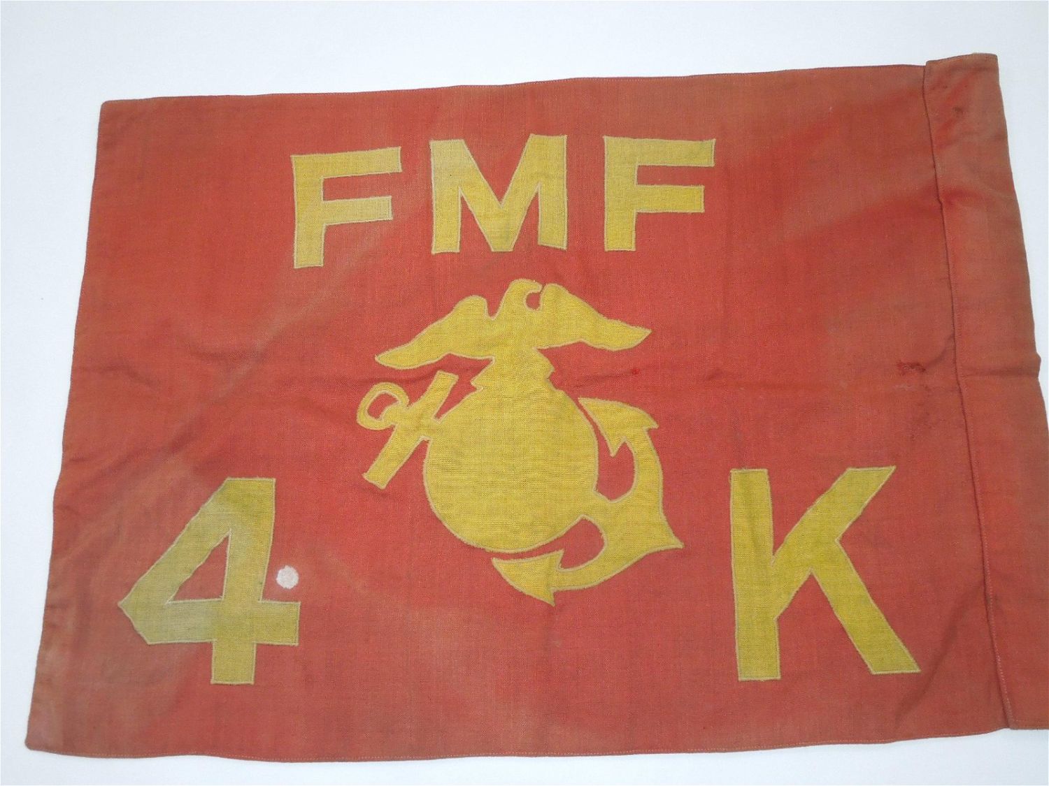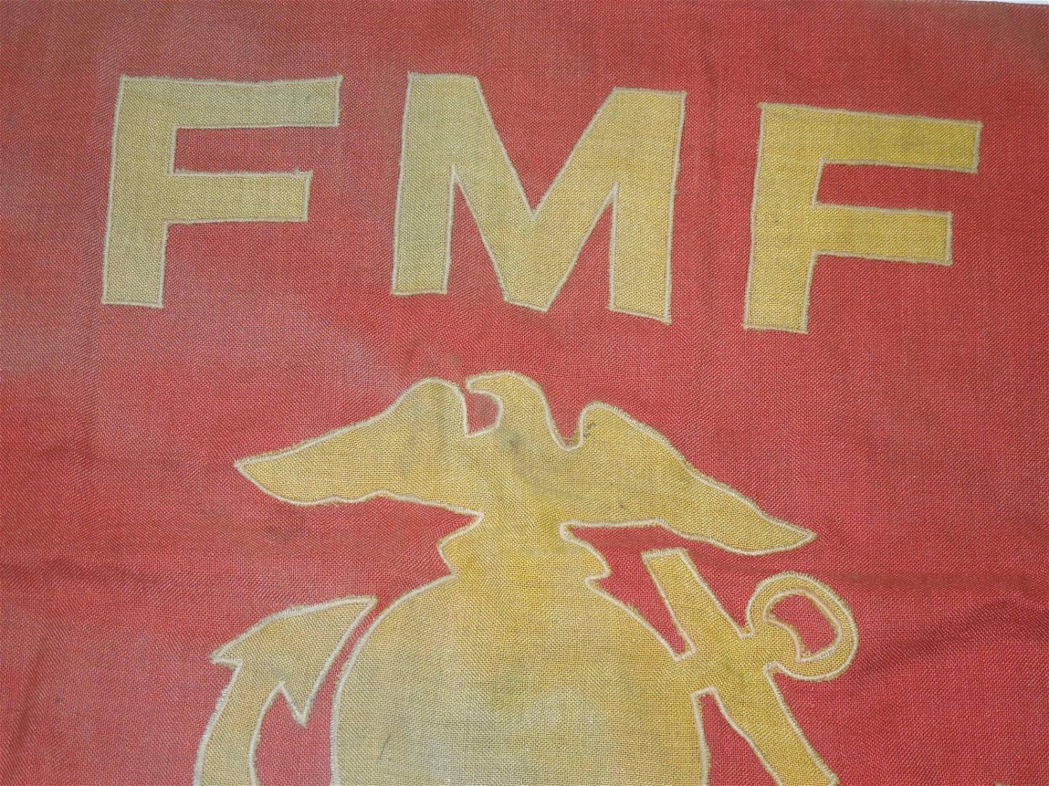 WWII USMC Marine Corps FMF 4th Marine Division Flag. 21 inches x 30 inches. Faded look from age, but still displayable.