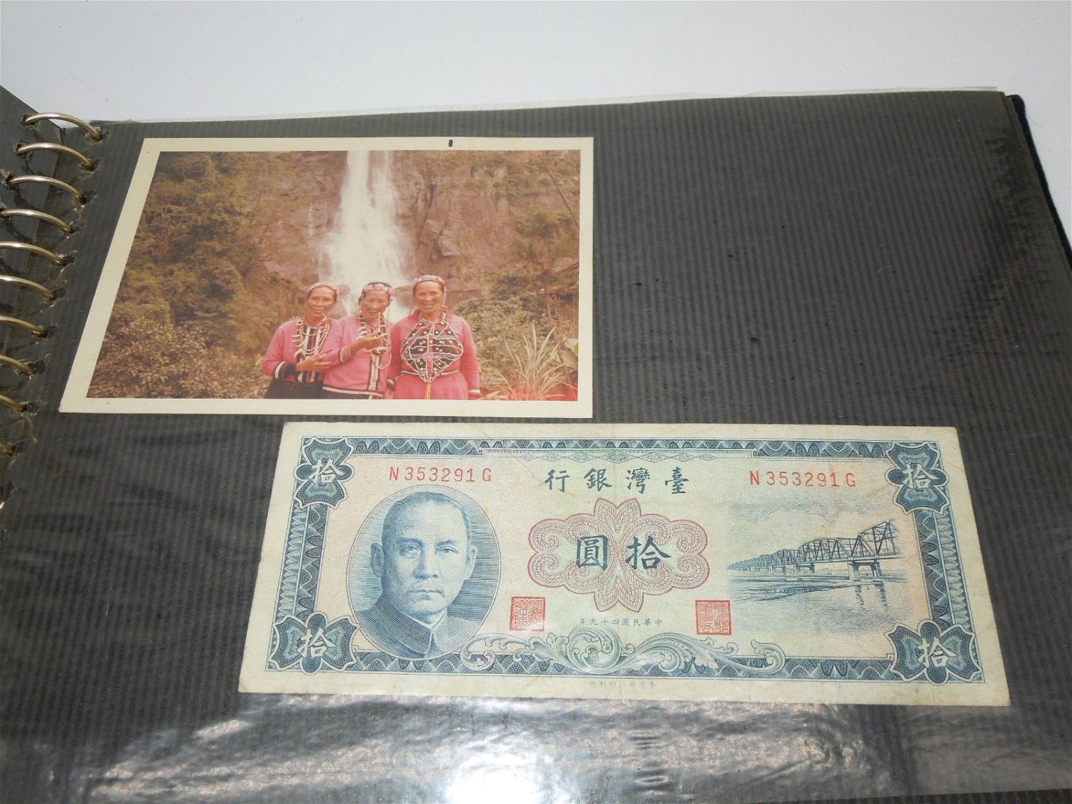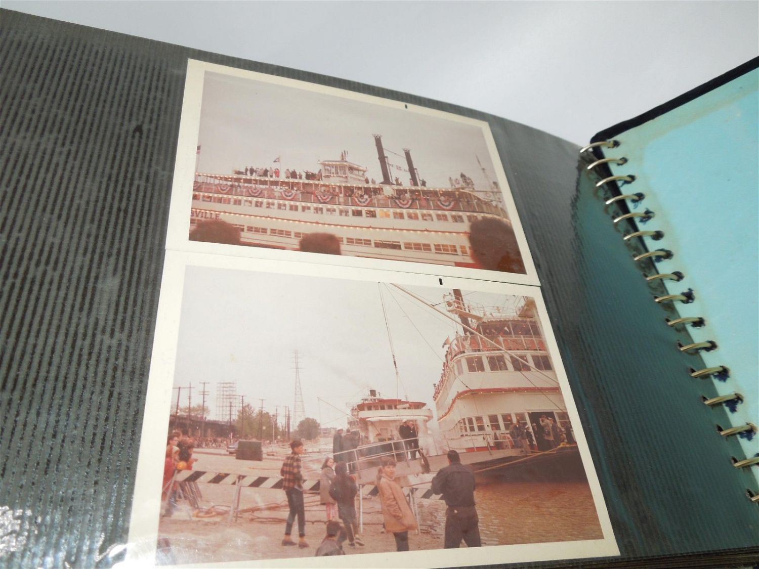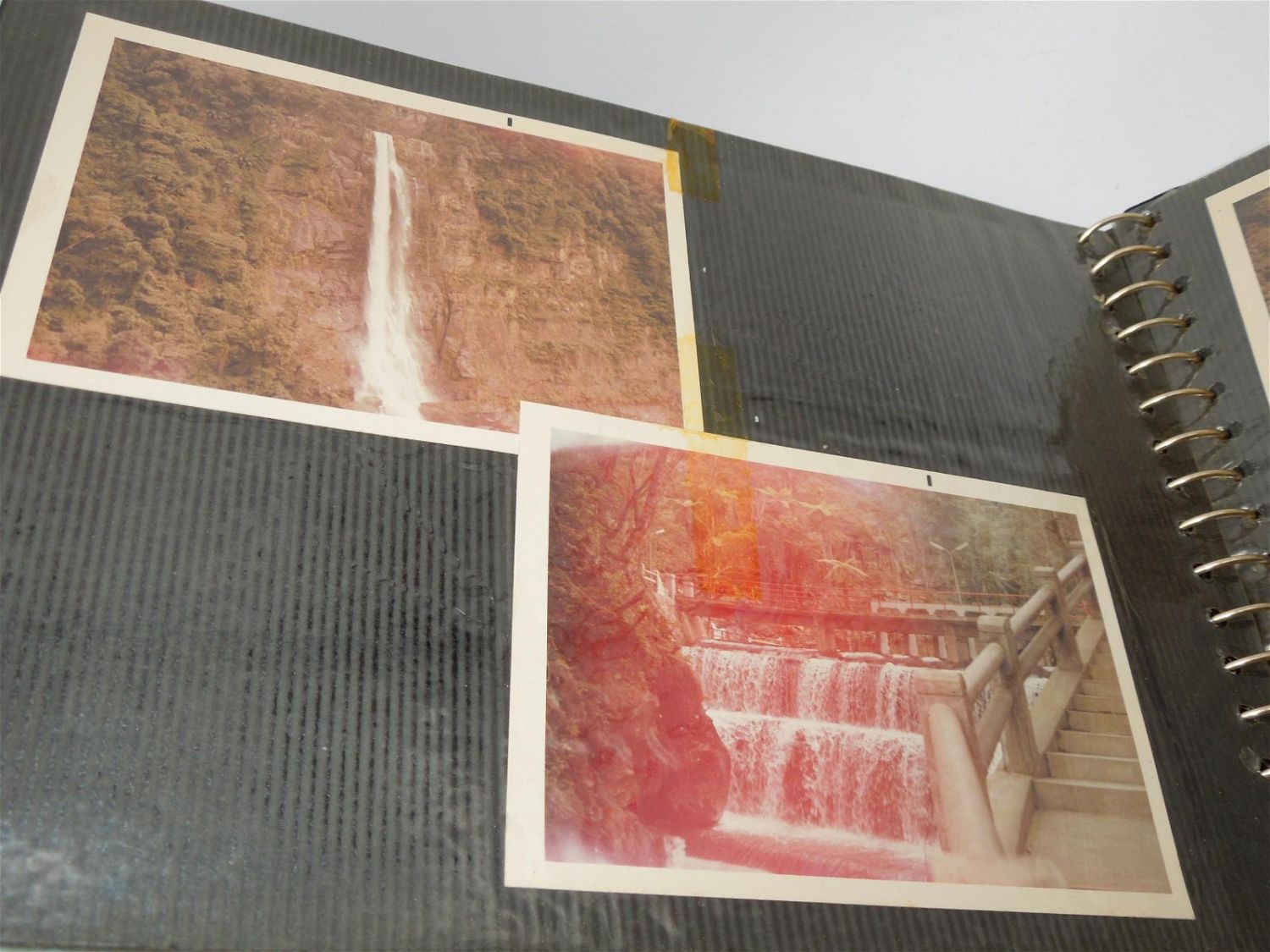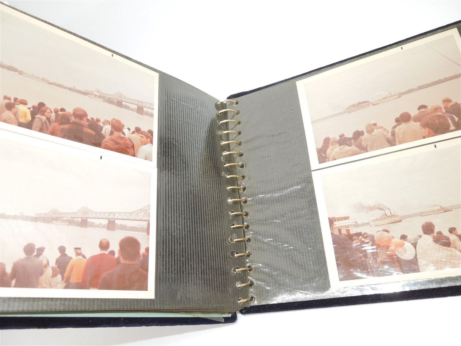 Vintage themed photo album with a decorative velvet like cover, with many photos and items from a 1965 trip to the far east aboard a US Ship.