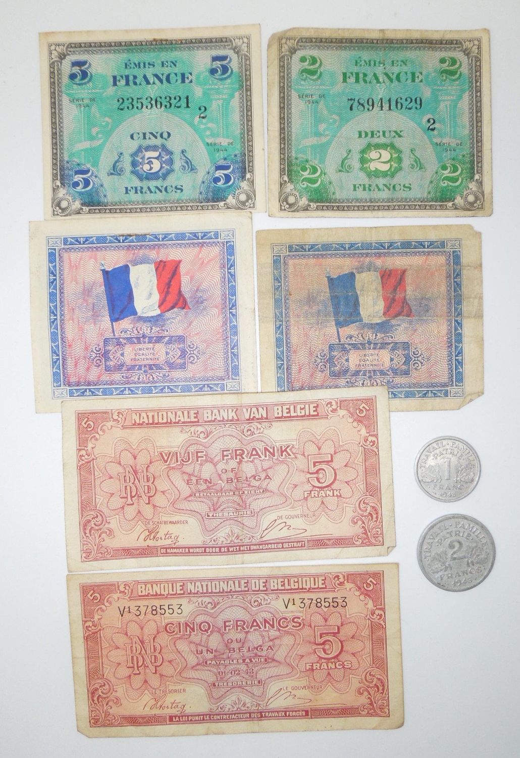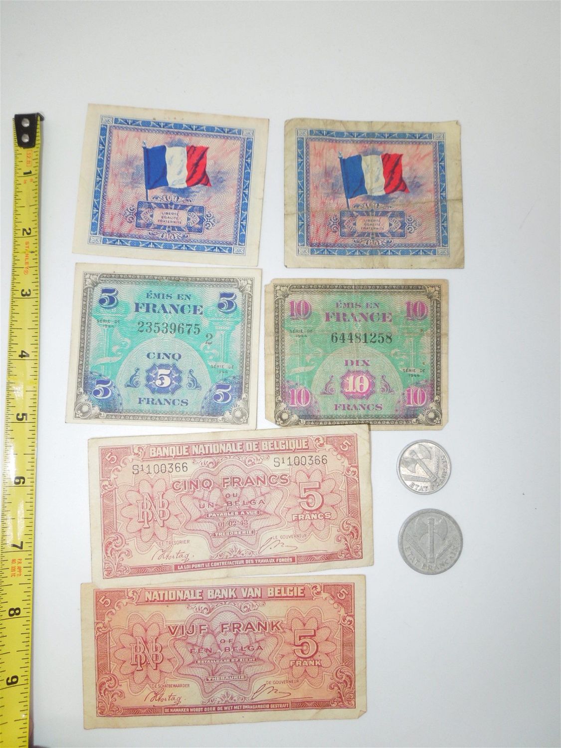 Lot of original period WWII era money as shown. All pieces show use and age consistent with old money. Condition: See description for condition report.
