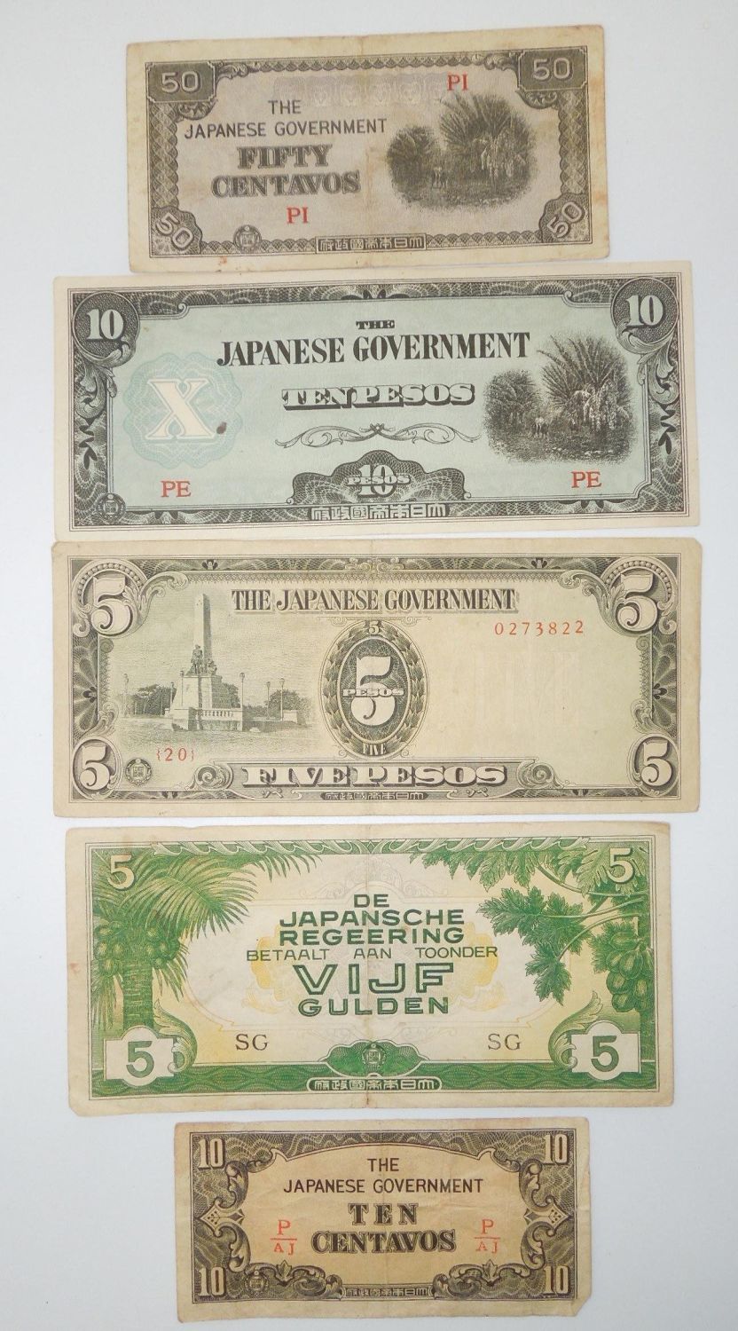 Lot of original period WWII era money as shown. All pieces show use and age consistent with old money.