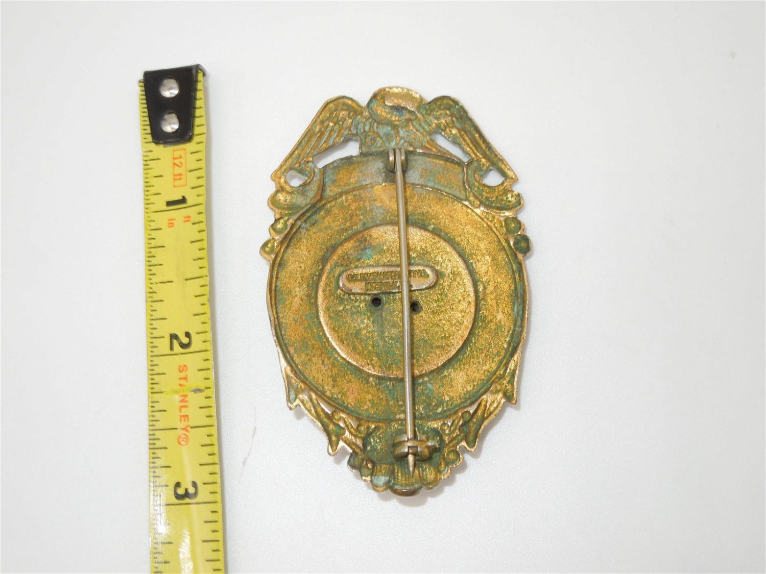 Nice original badge as shown, maker marked Goldmark Specialty, Norfolk, on the back. Condition: See description for condition report.