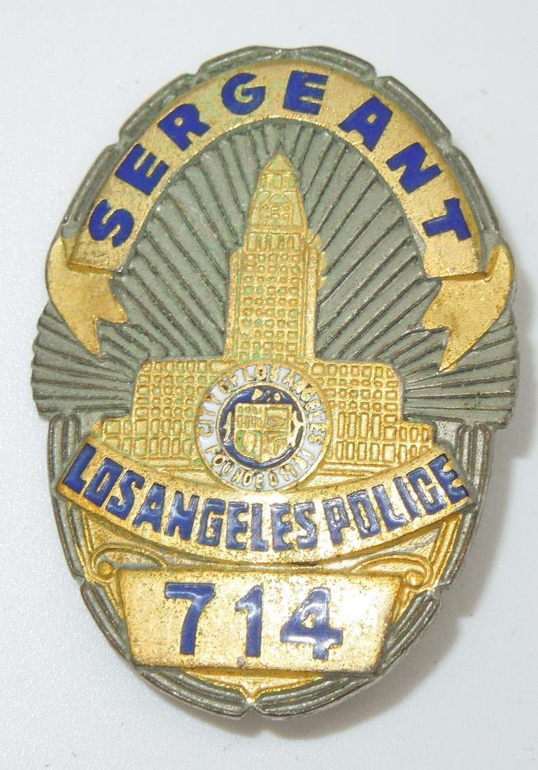 Vintage Los Angeles Police Department Officer badge, numbered. The reverse has a stamp noting that it is intended for movie use only, and was made in China. Good condition.