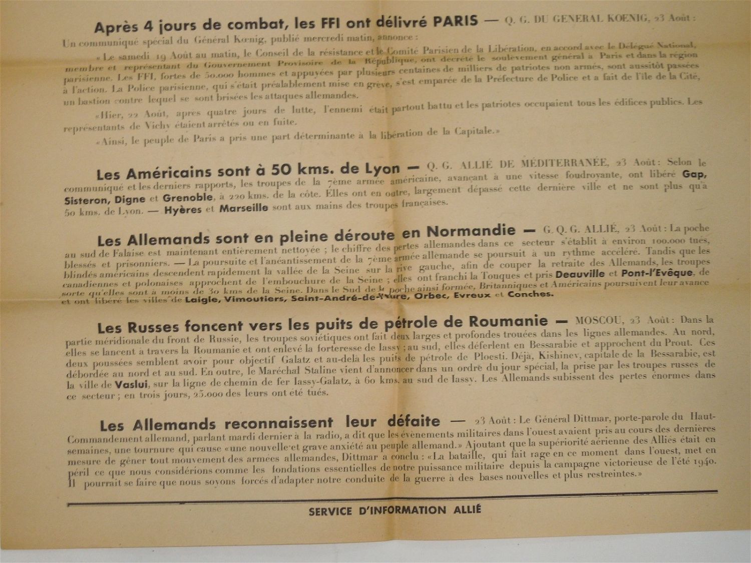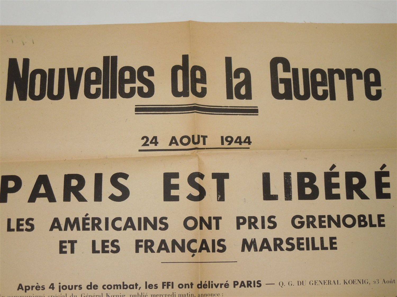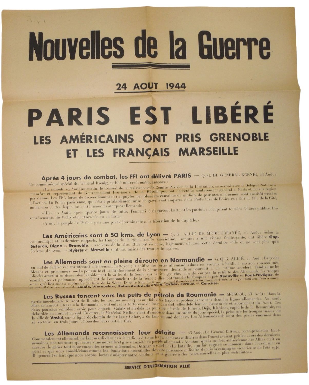 WWII Paris is Liberated 1944 War Poster Brought Back By US Captain