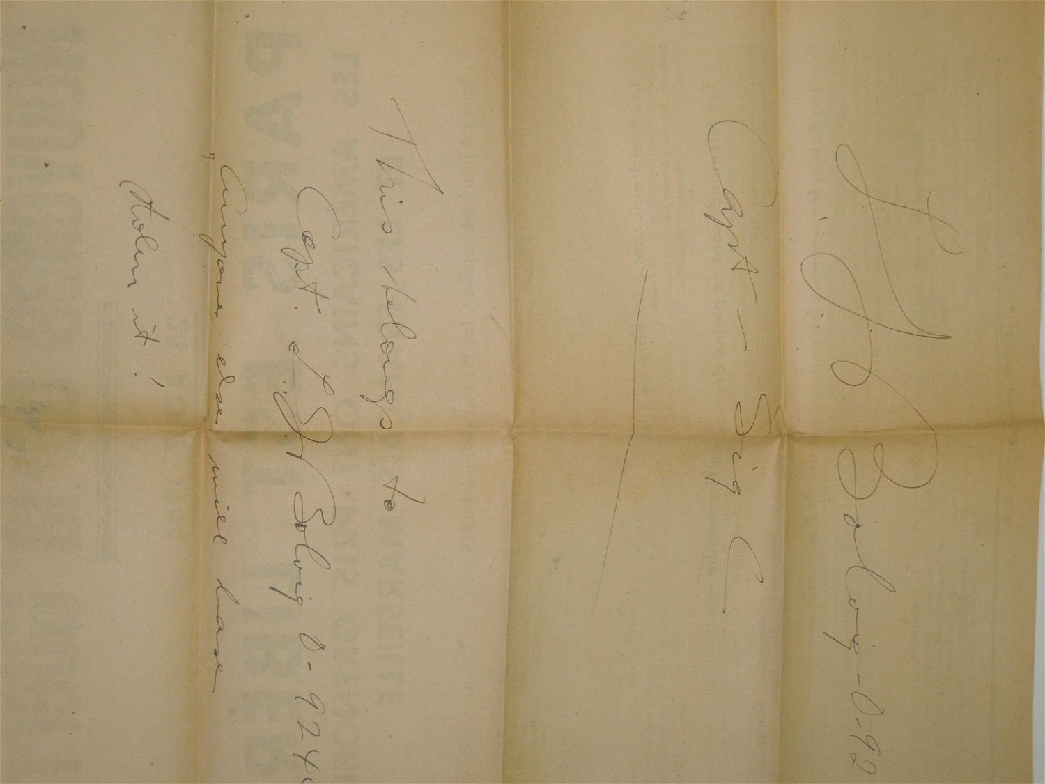 Original folded Paris is Liberated, 1944, poster measuring 21.75 inches by 17.25 inches. Good condition with folds, and the Officers name who brought it back.