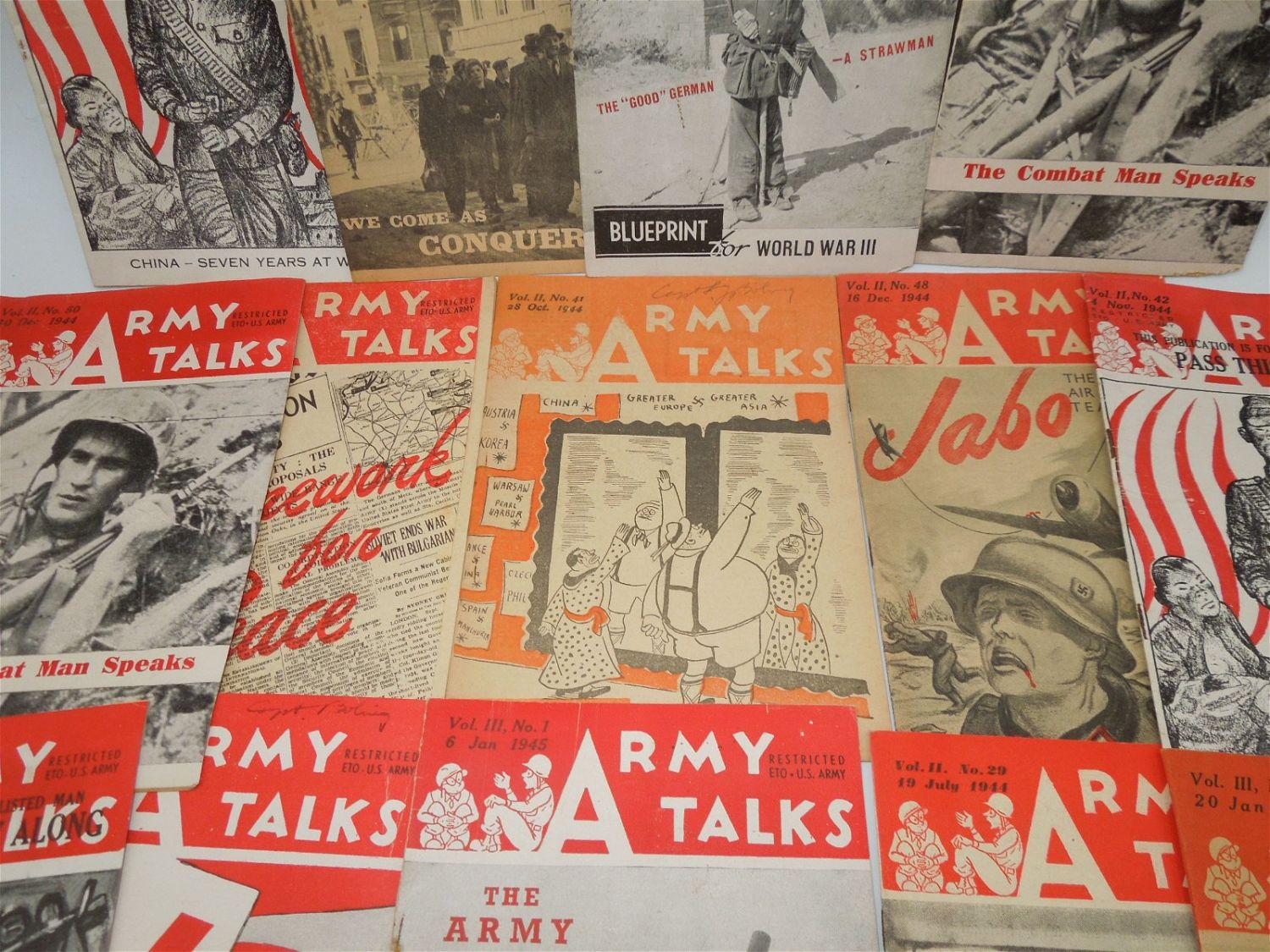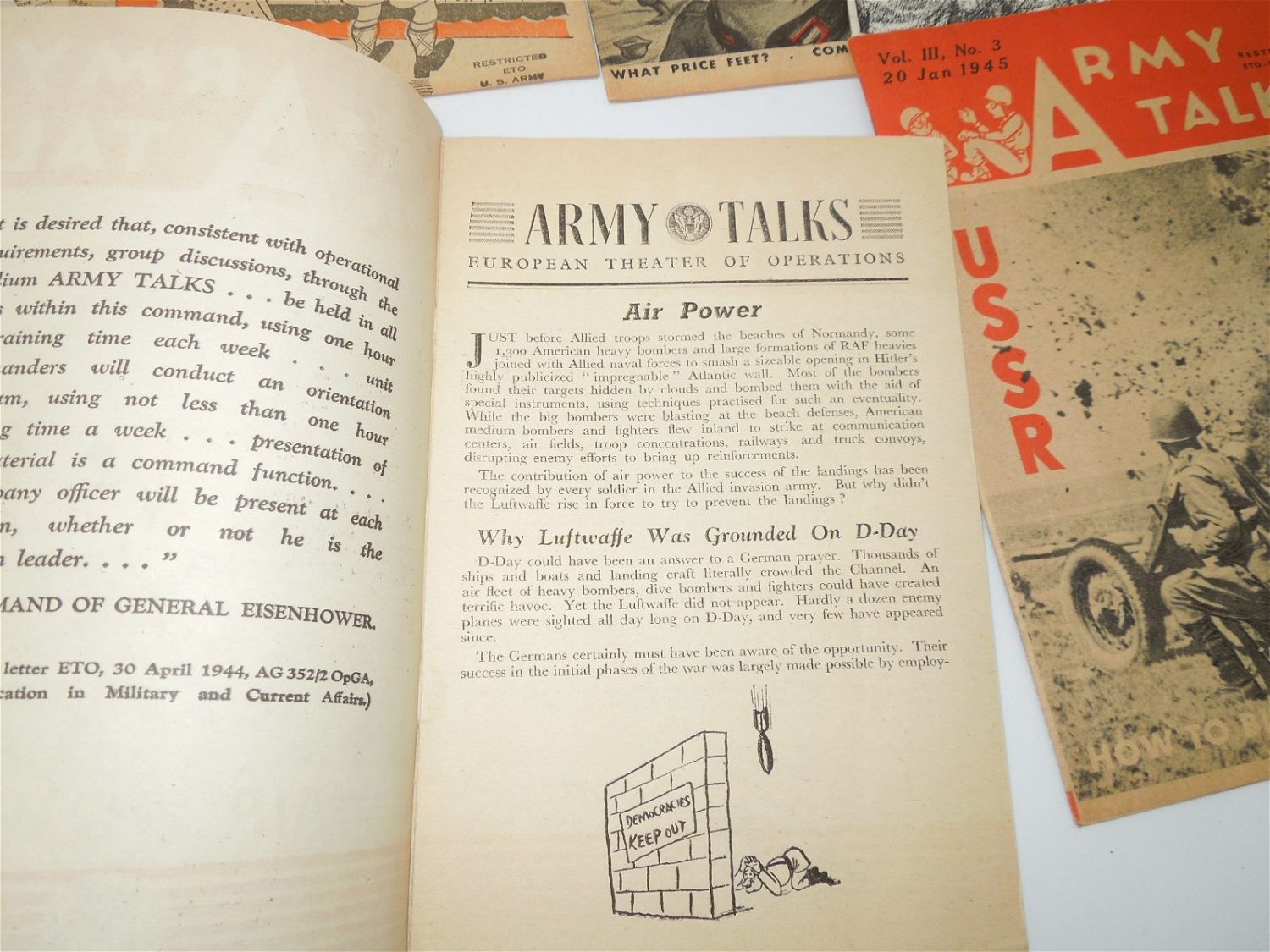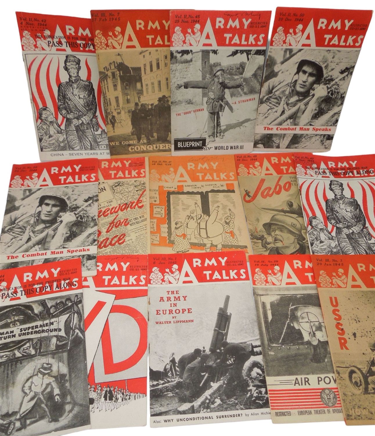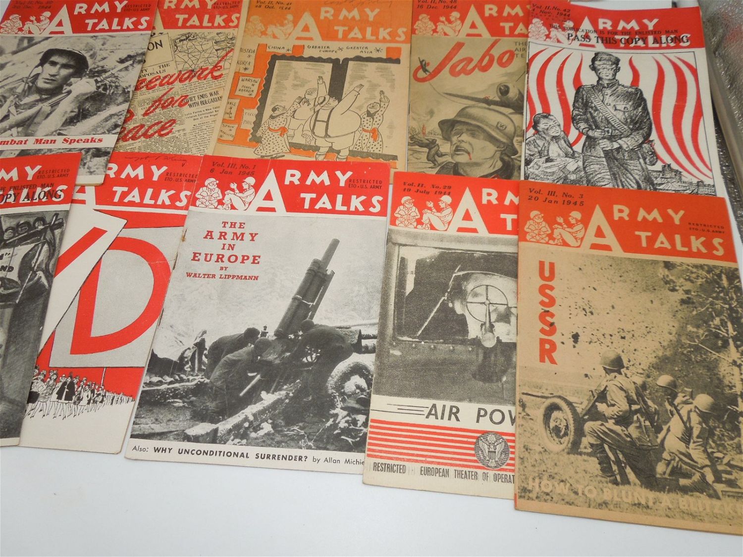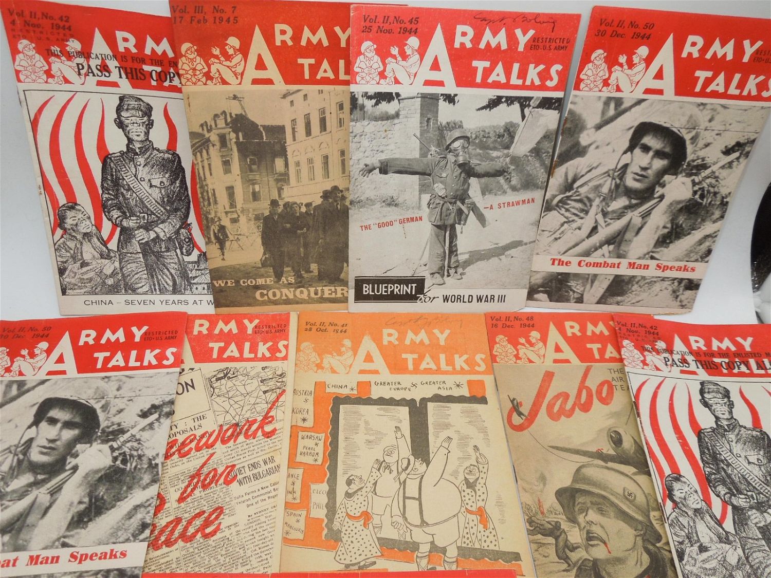 Original lot of paper softcover ARMY TALKS magazines for overseas troops. Filled with photos, articles, and more. Good condition.