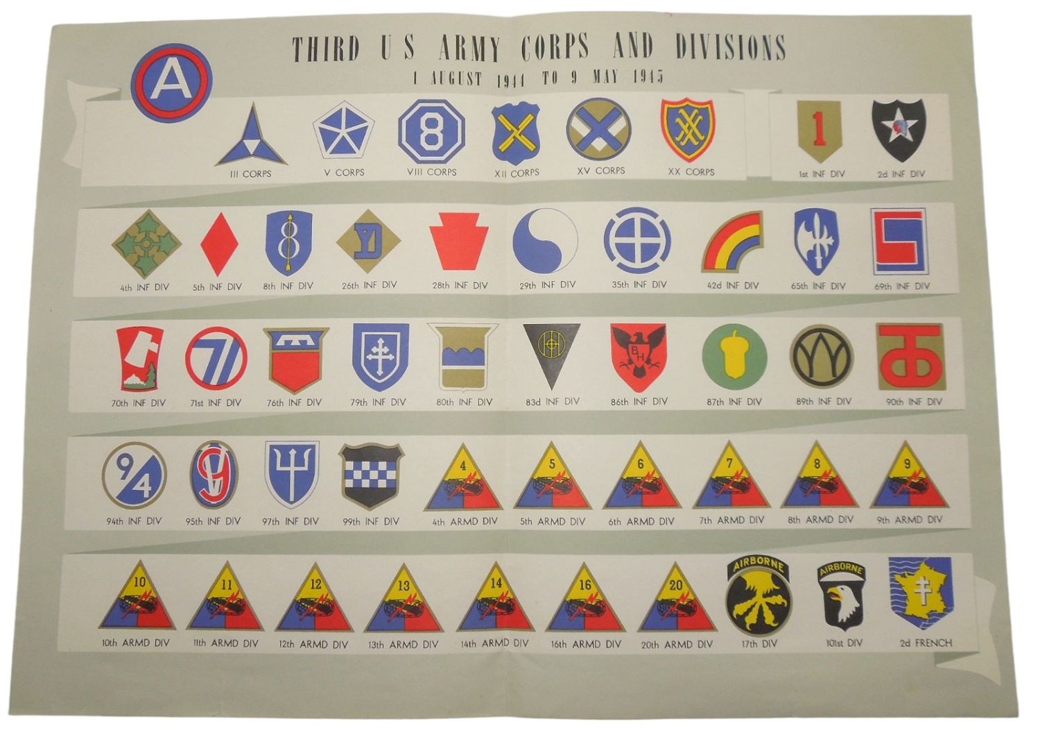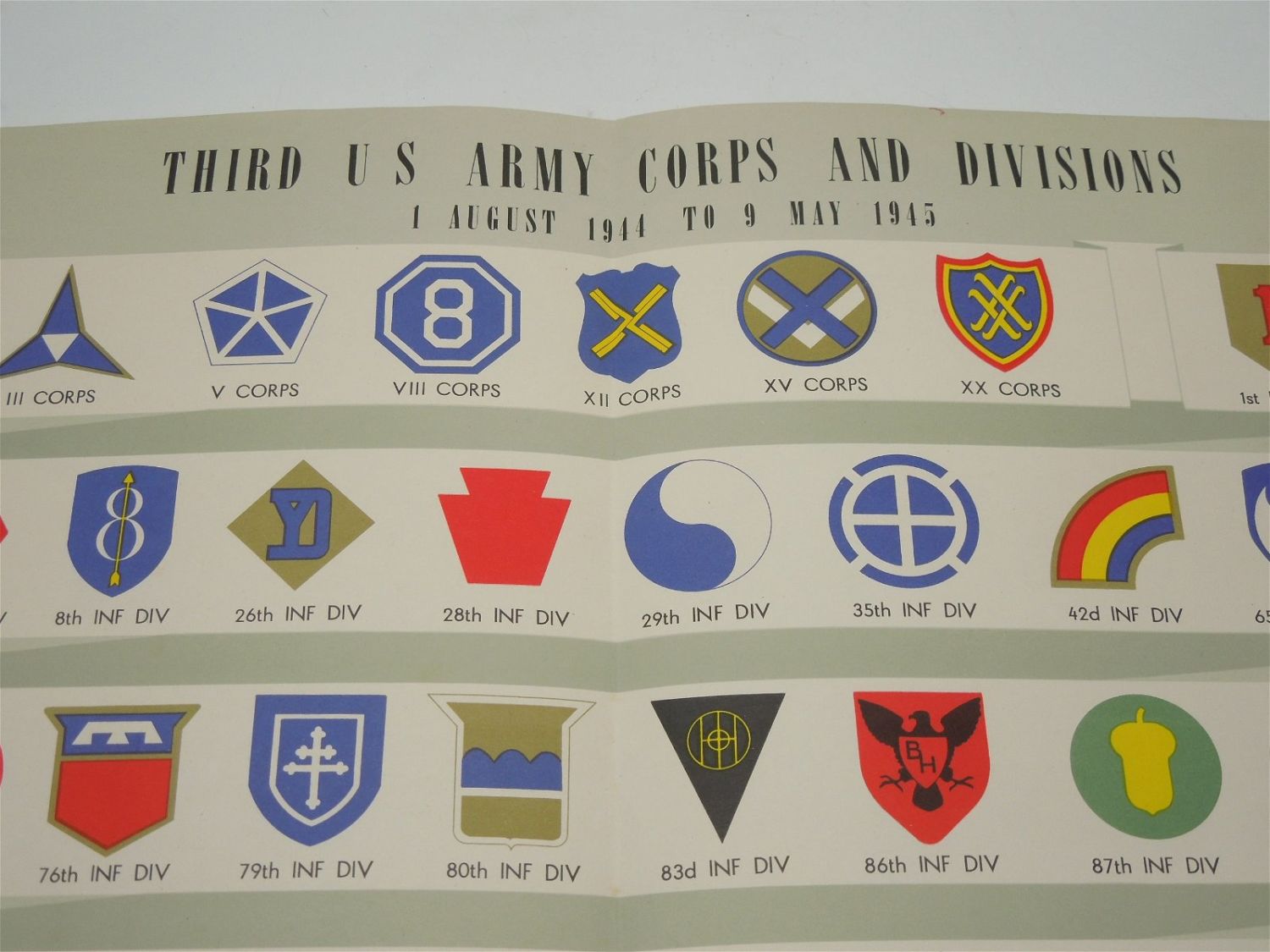1944-1945 Third US Army Corps & Division Poster. Approximate size is 13 x 18 inches. Nice condition. Condition: See Description for Condition Report.