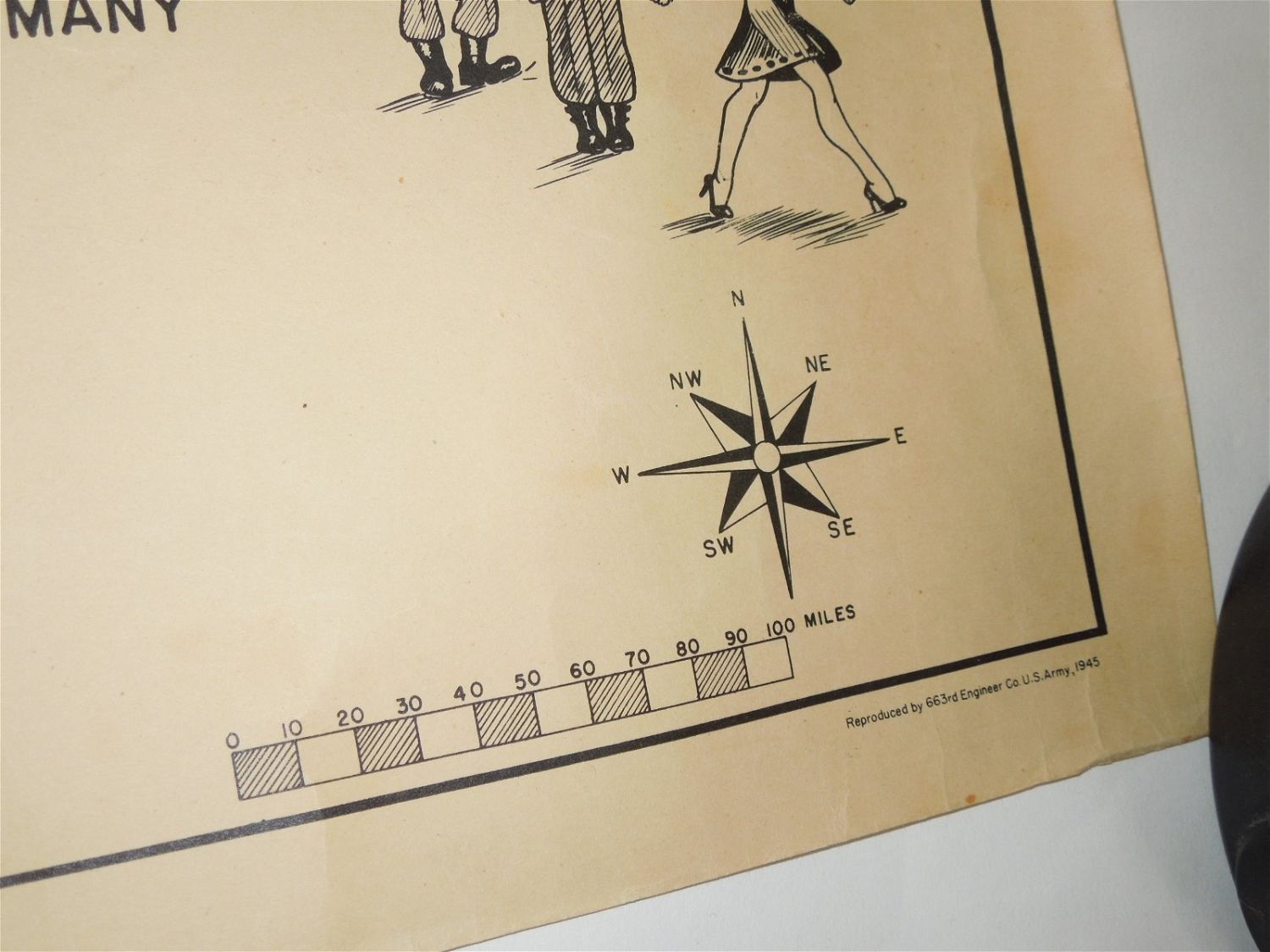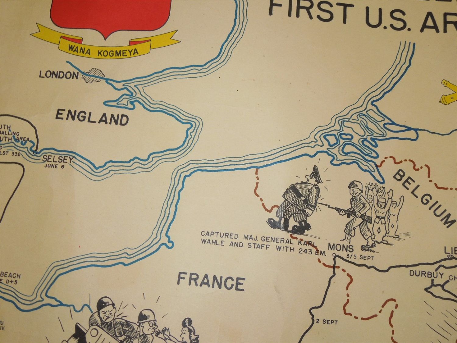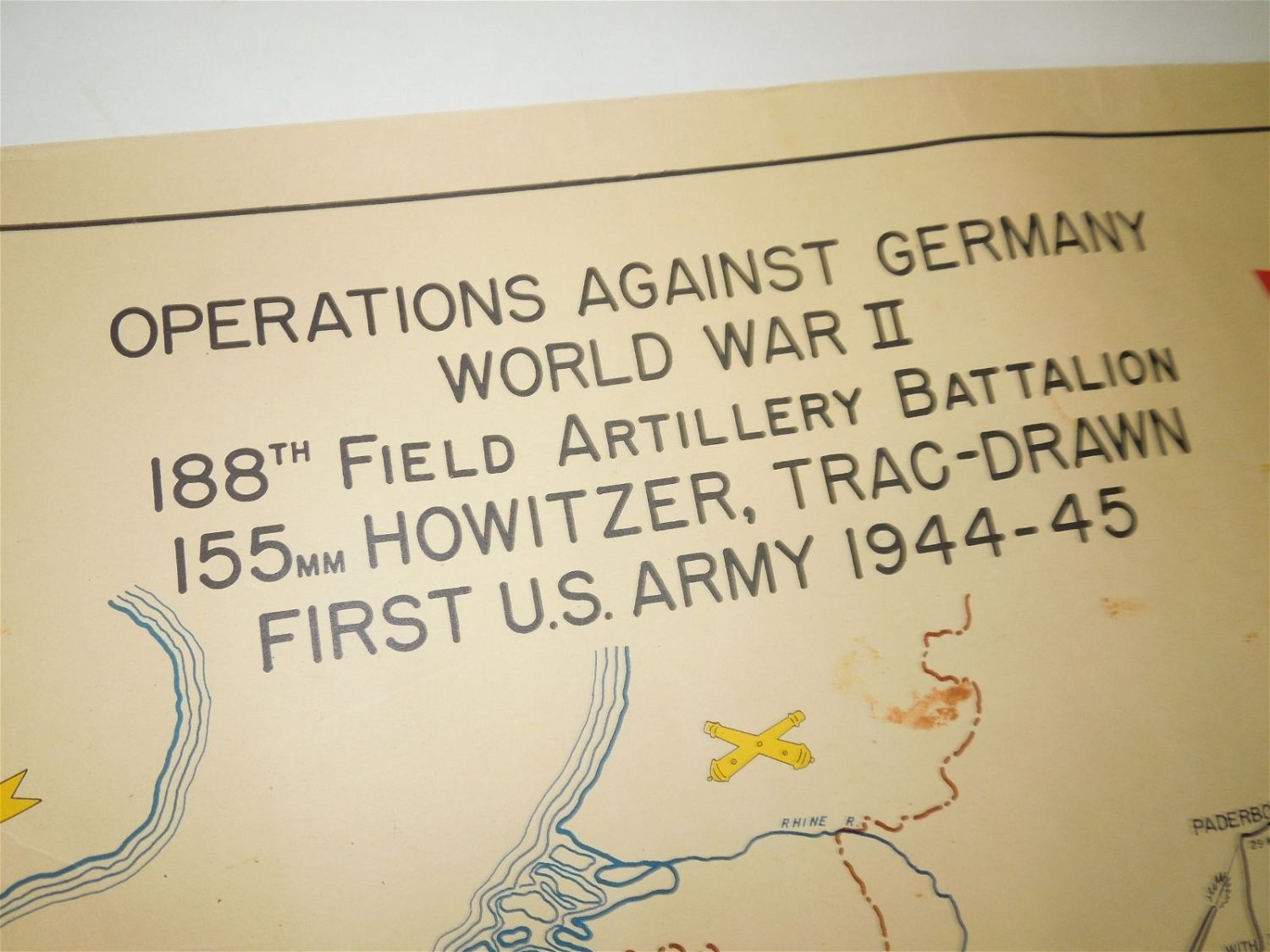 Original 1945 rolled field map detailing the 188th FA path through Europe. There is some soiling from age, and some small creases. Approximate Size is 23 x 16 inches.
