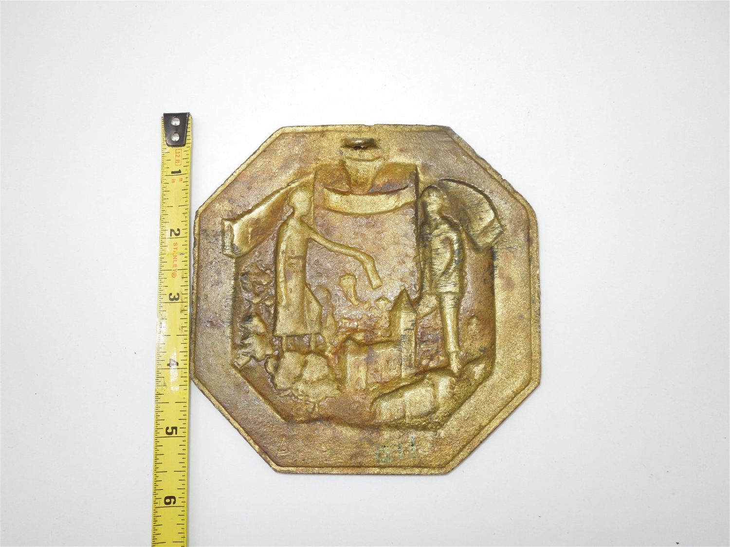 Original WWII plaque depicting the famous scene of General Anthony McAuliffes response of NUTS to the German request for US forces to surrender Bastogne. Good condition for its age.