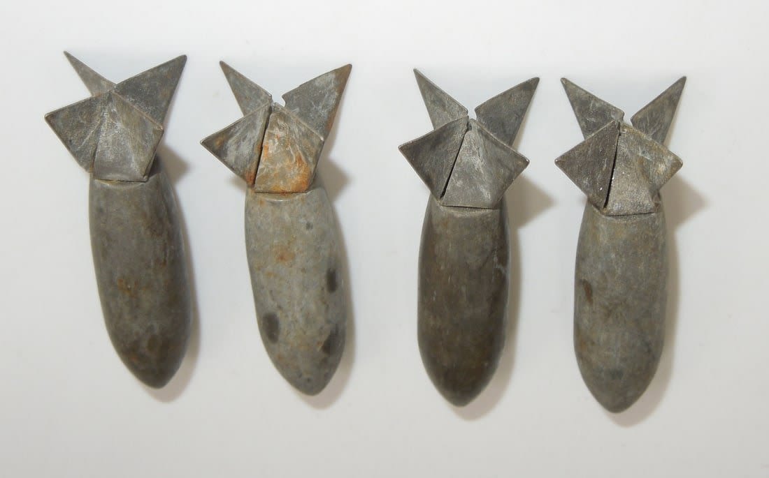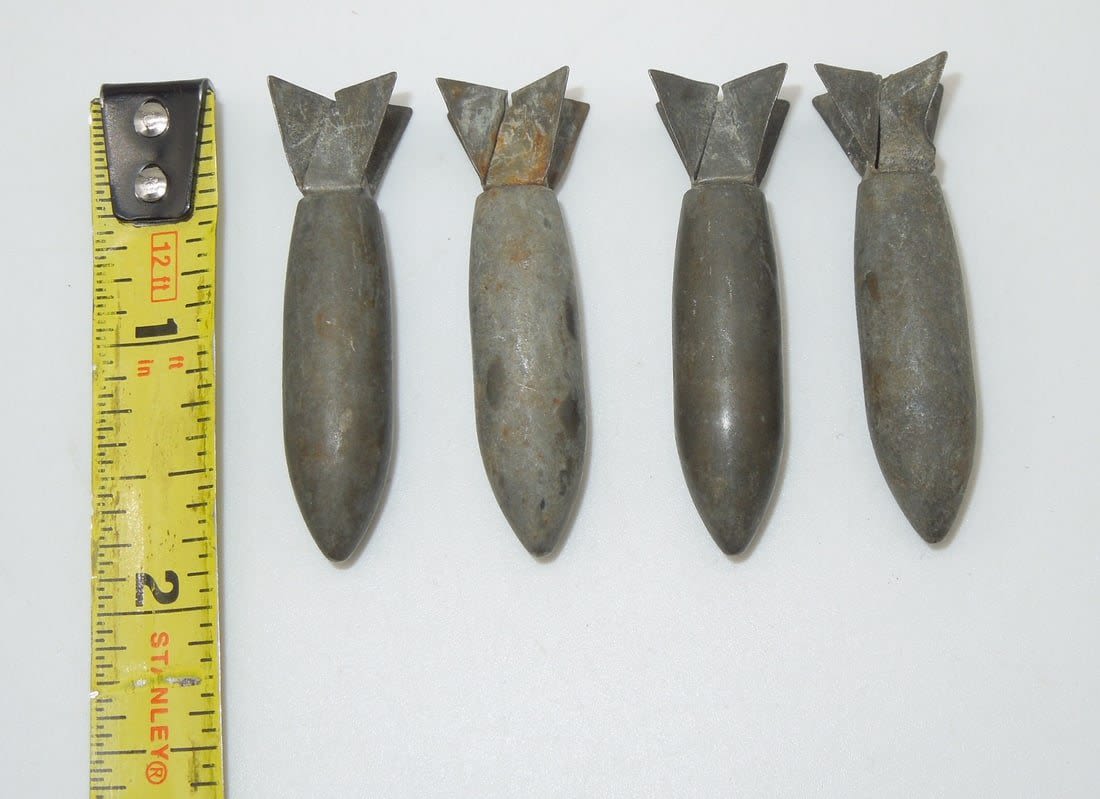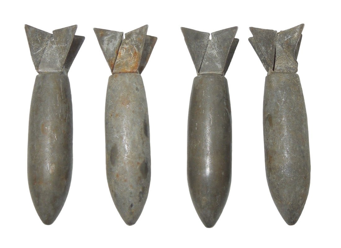 Lot of four WWII bomblets, as dropped from aircaft over enemy positions. Condition: See Description for Condition Report.