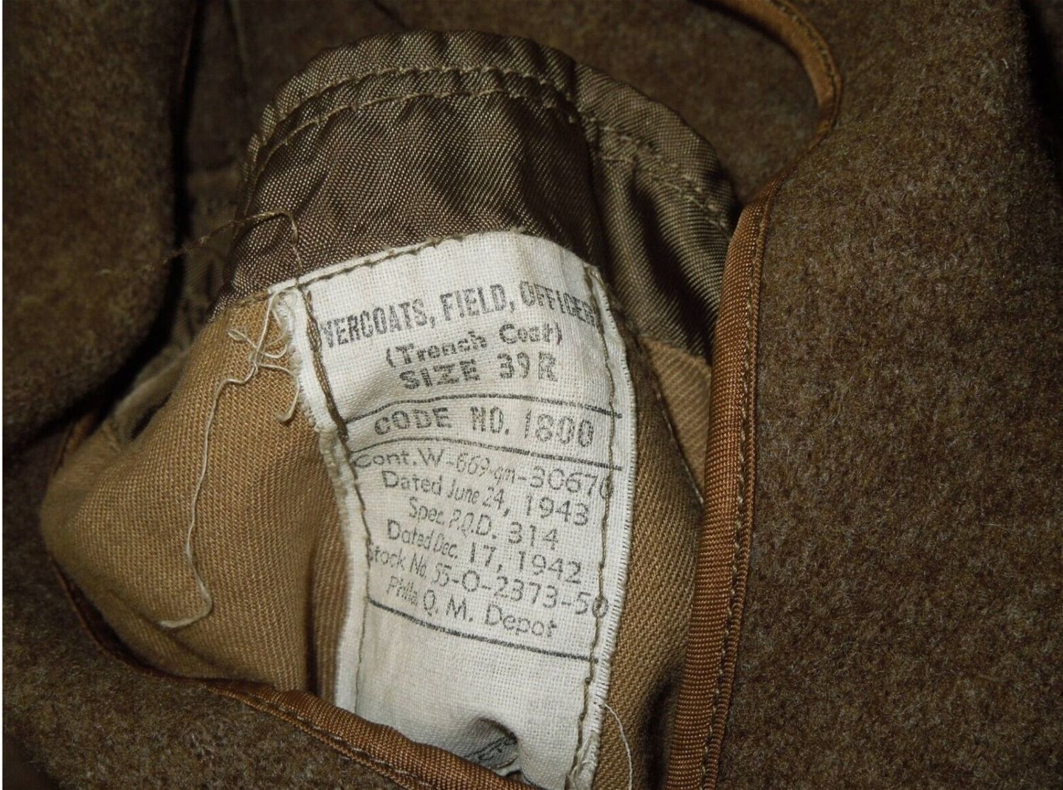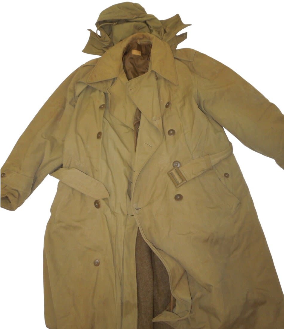 WWII 1943 Dated US Army Officer Uniform Overcoat, Hood, Belt & Liner Size 39R