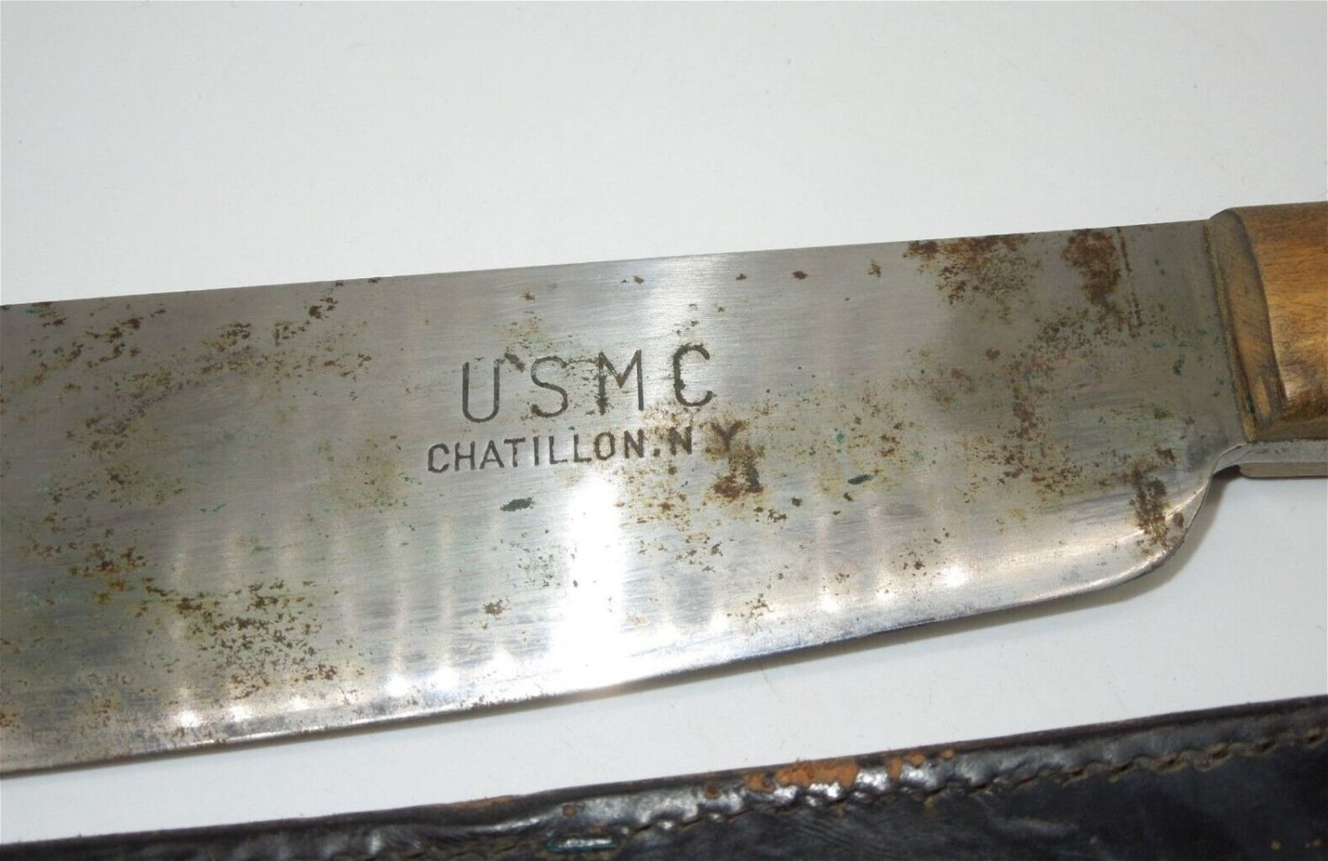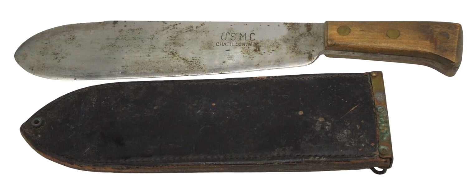 WWII USMC Chatillon, NY Bolo in 1944 Boyt Scabbard. Well used condition as shown. Condition: See Description for Condition Report.