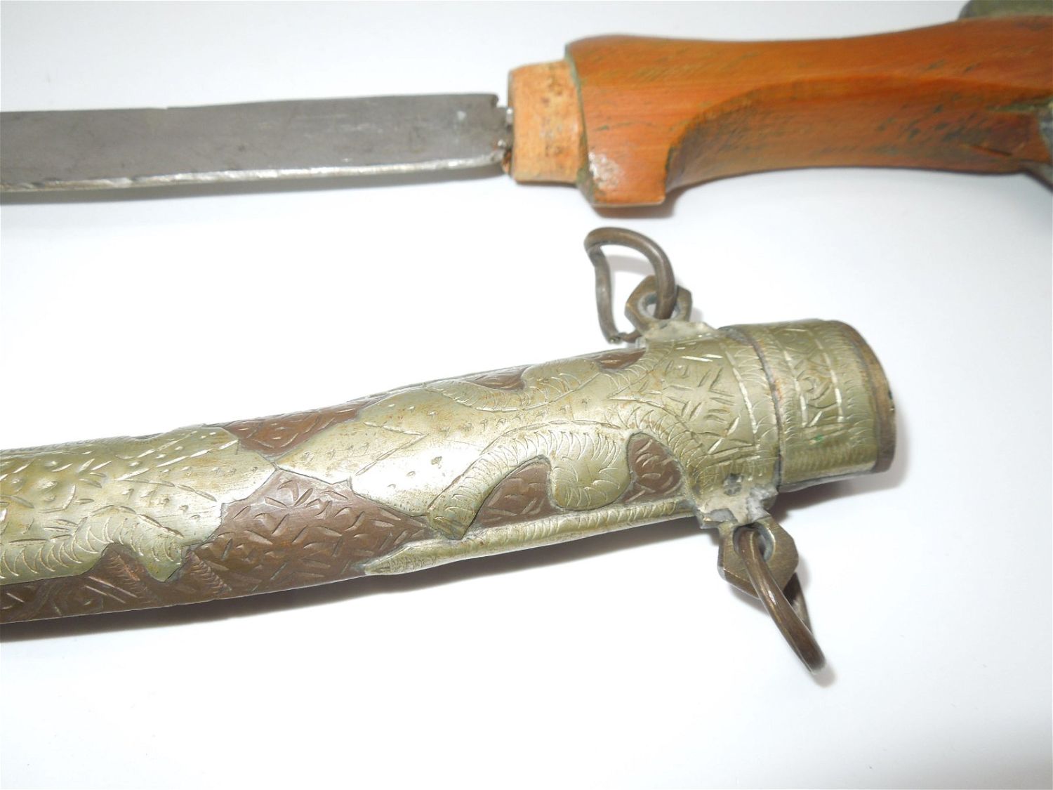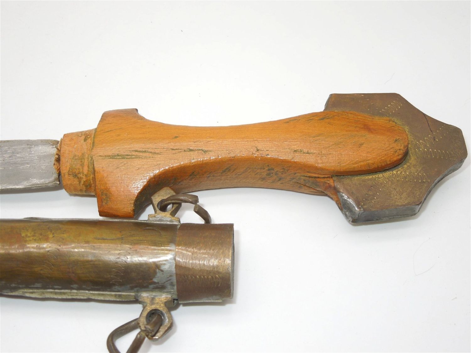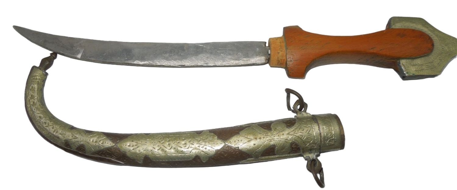 Unique, Crudely made early 1900s knife and scabbard. Hand made. The blade loosely fits into the scabbard. Good, used condition.