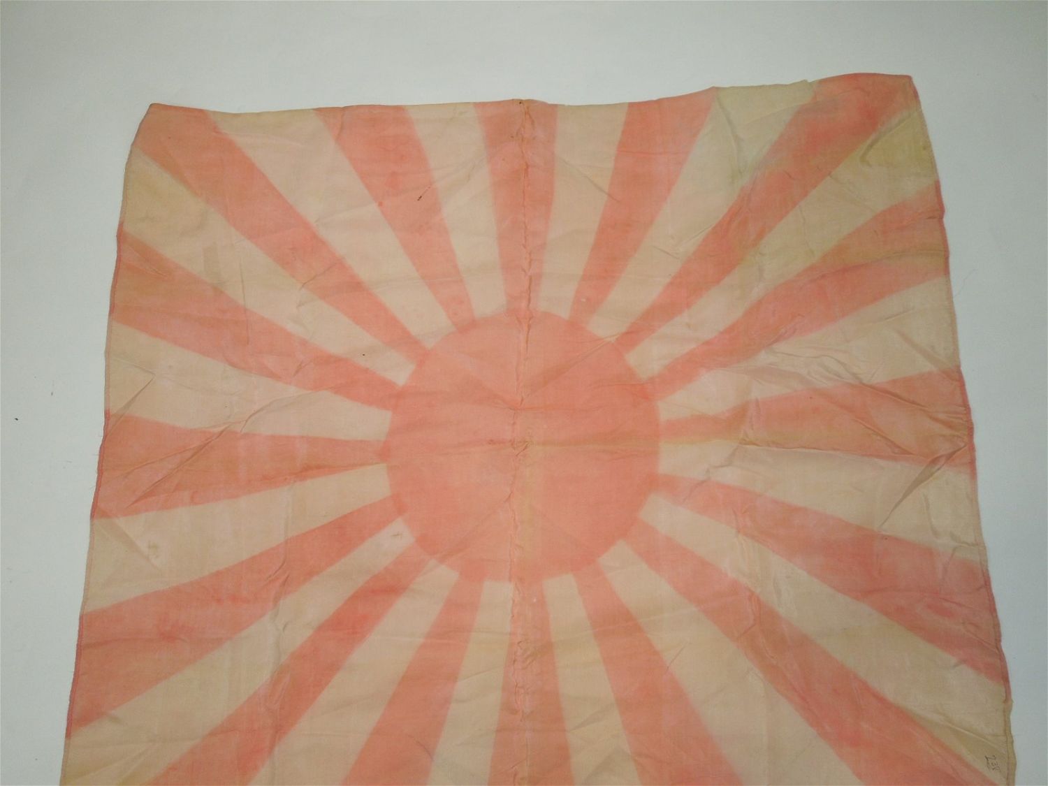 Original WWII sun faded silk Japanese rising sun flag measuring 31 x 27 inches in size. Condition: See Description for Condition Report.