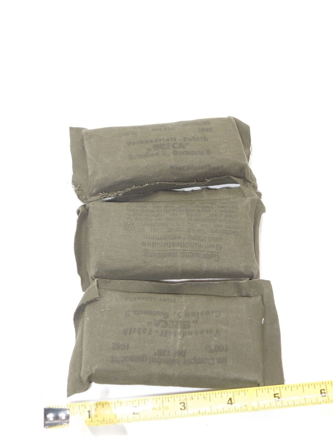 WWII German Army 1942 Wehrmacht Bandage Field Dressings (3) Lot